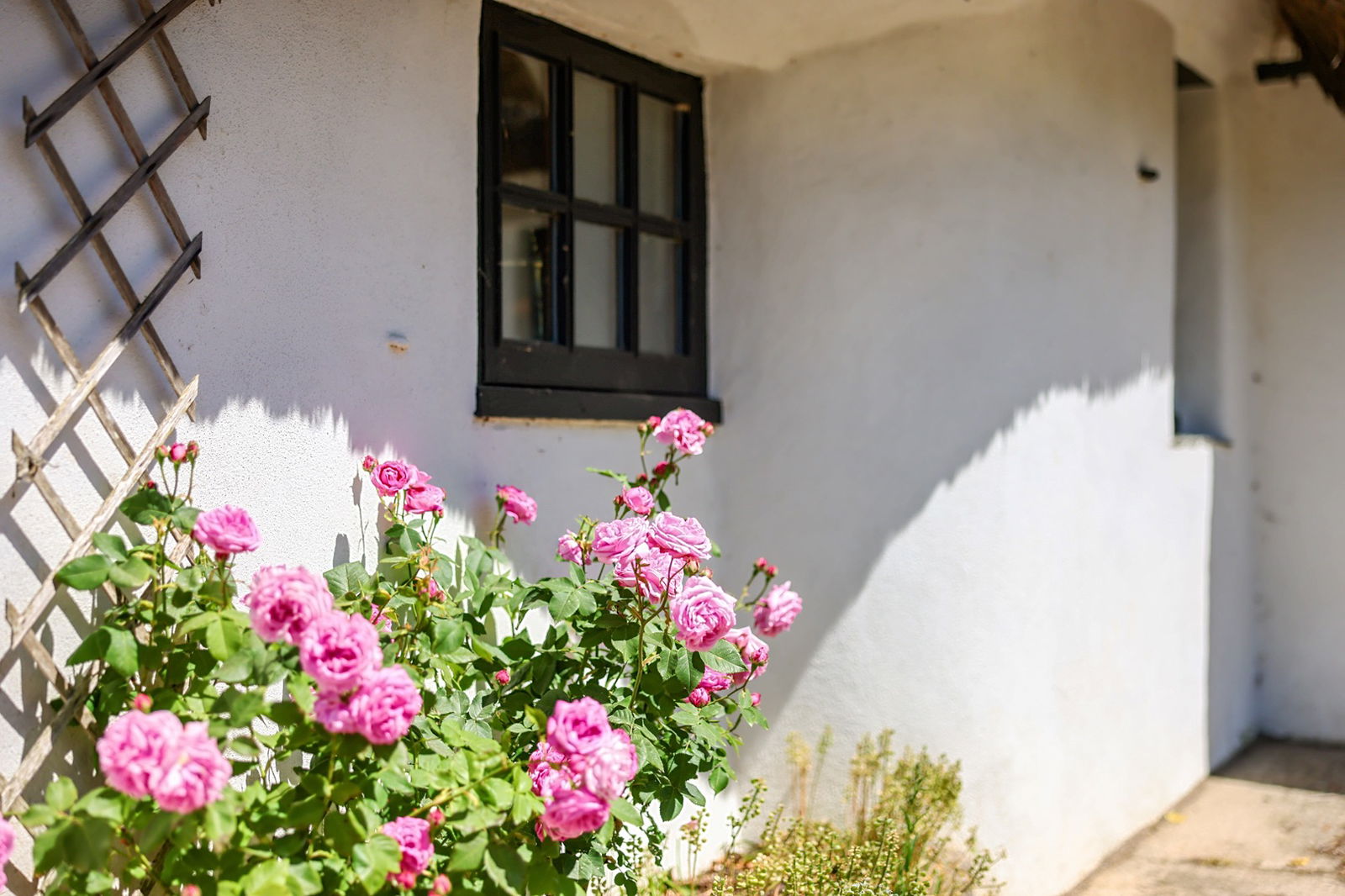 To the front of the house is the country lane, the entrance to the garage, the front door and a little flower beds with a floral scented climbing rose. There are a few opportunities for summer hanging baskets beneath the thatch over hang too adding to the delightful style of this pretty cottage.
