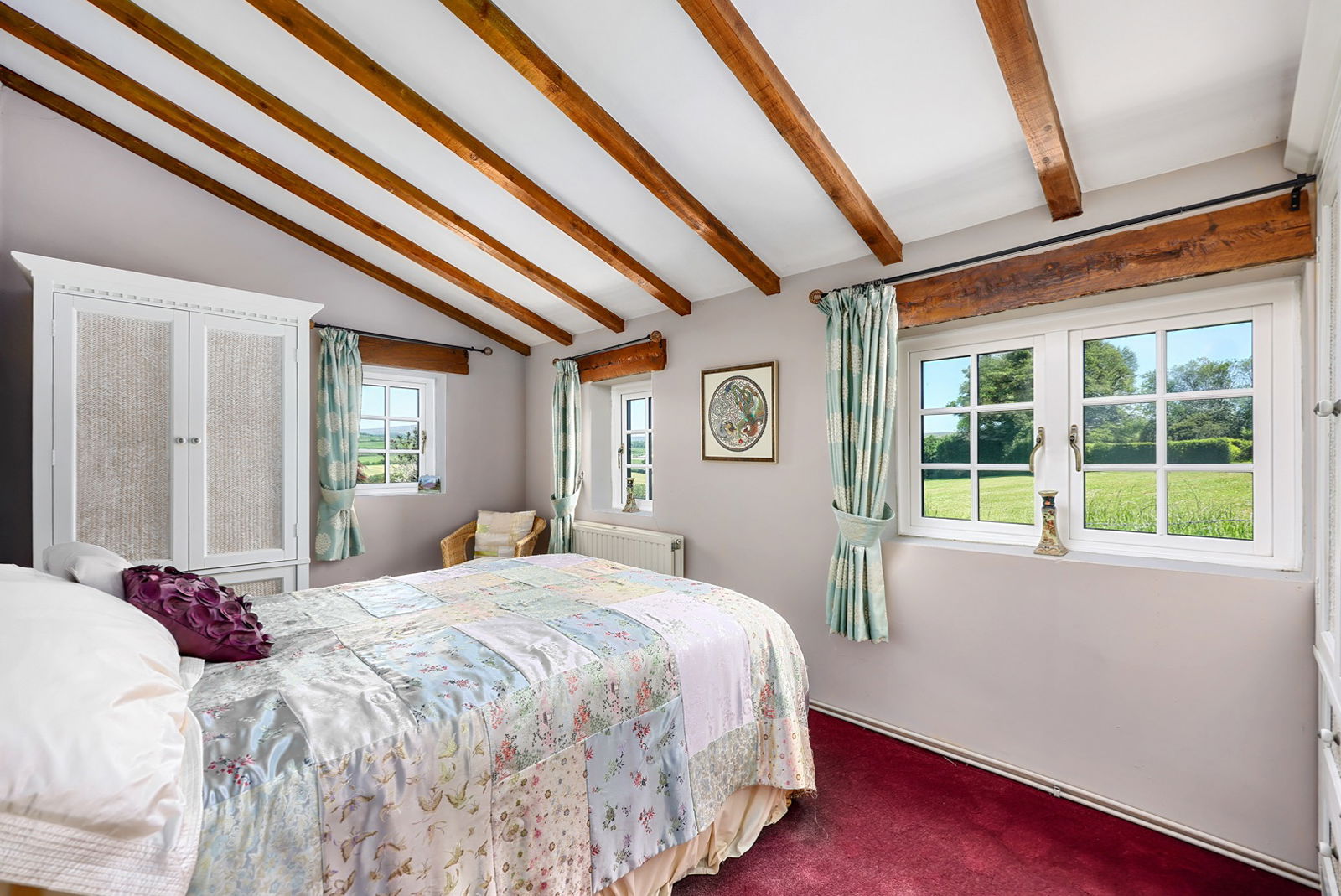 The second bedroom serves as a delightful double bedroom, boasting breathtaking double aspect views that stretch across the fields. It comfortably accommodates a wardrobe alongside a spacious double bed.