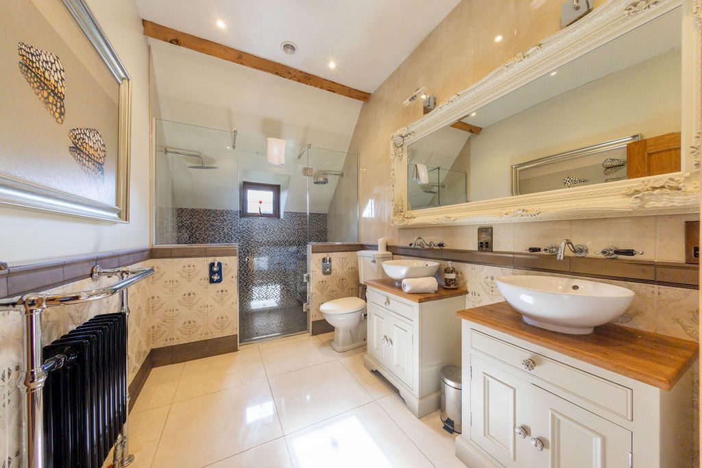 An additional 5.5 acres of land, available separately, includes paddocks, a small area of woodland, an open-fronted barn, and a tractor shed. If not sold with Thimble Hall, it will be marketed independently.