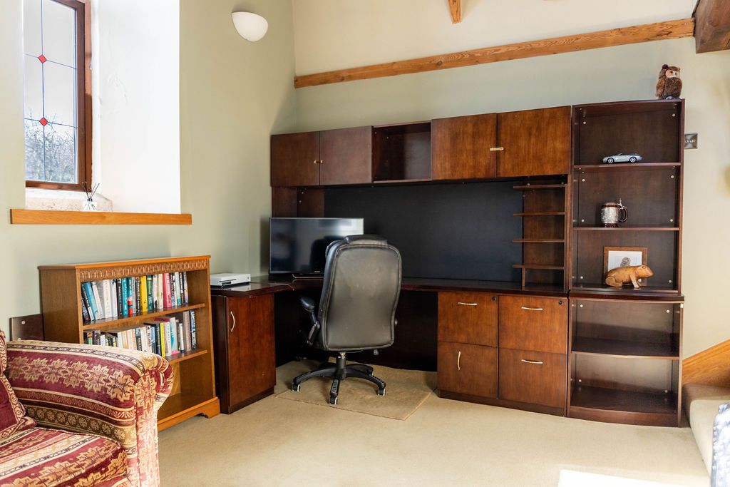 Nestled within the grounds, The Lodge is a cosy wooden cabin with stunning views over the surrounding countryside. It includes a bedroom with a wood burner, a kitchen, and a shower room. With its own private entrance and parking, it is currently used as a successful holiday let.