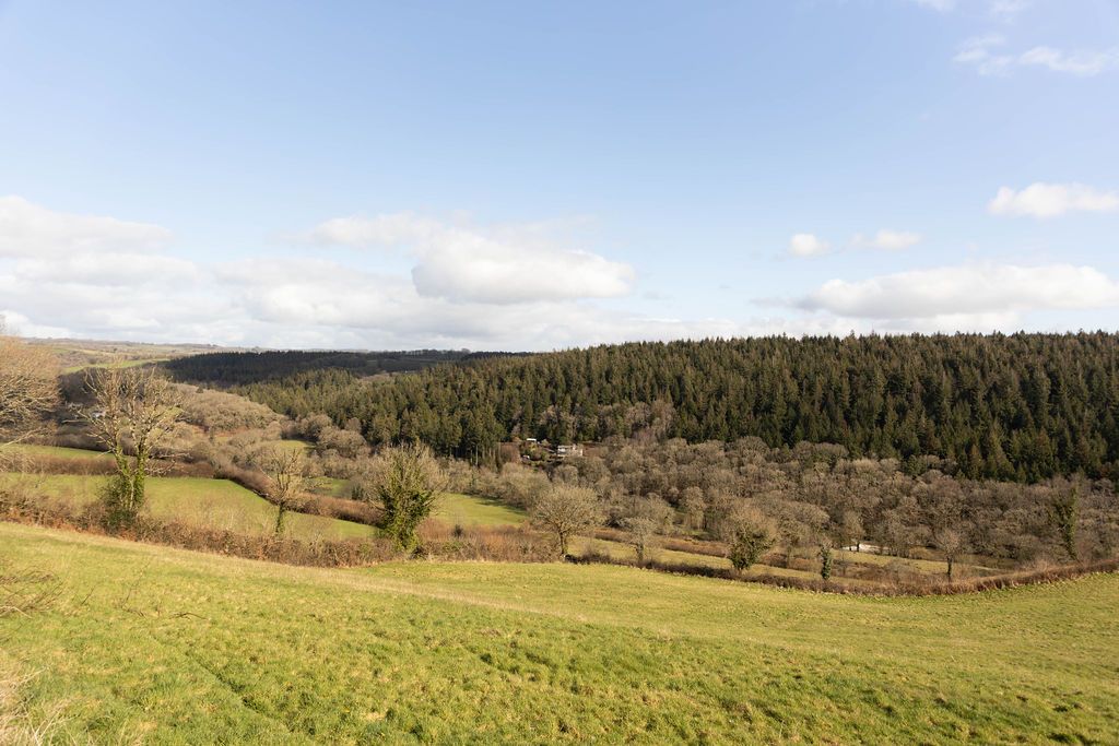The first floor includes a bedroom and a stylish bathroom featuring a clawfoot bath, while the master suite offers an en-suite bathroom and his-and-hers built-in wardrobes. A large picture window overlooks the sitting room, framing breathtaking valley views that stretch as far as the River Tamar.