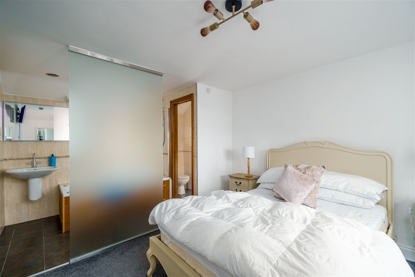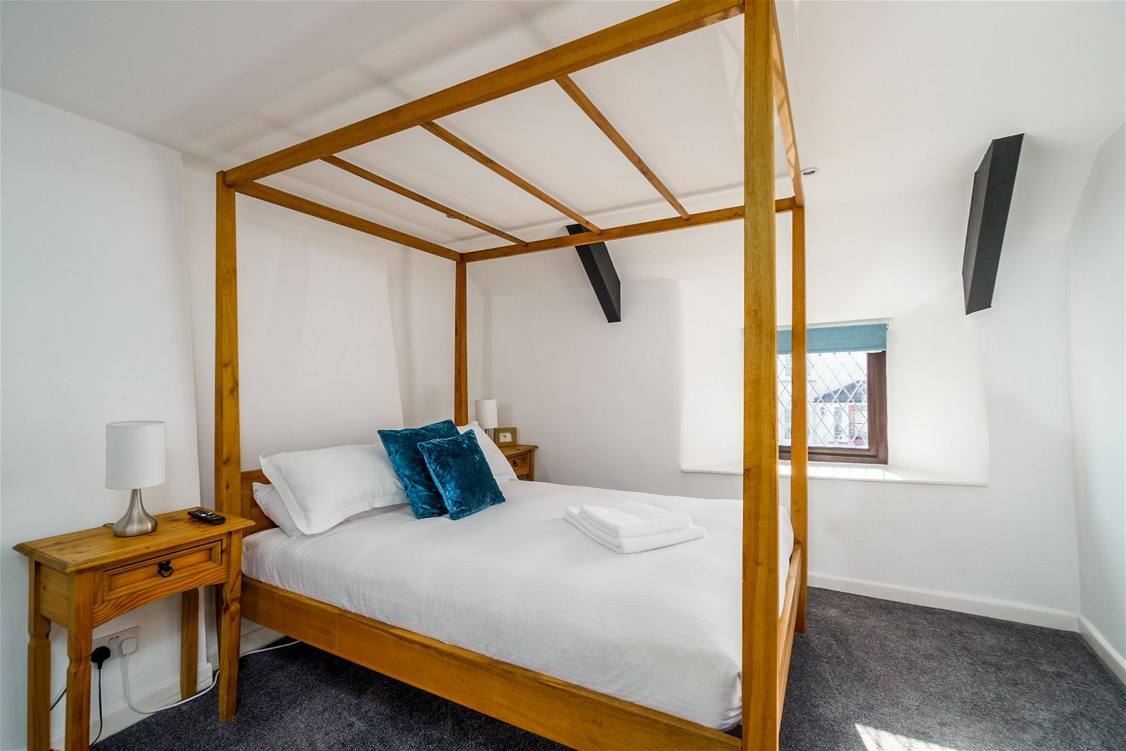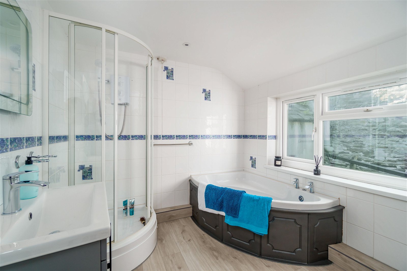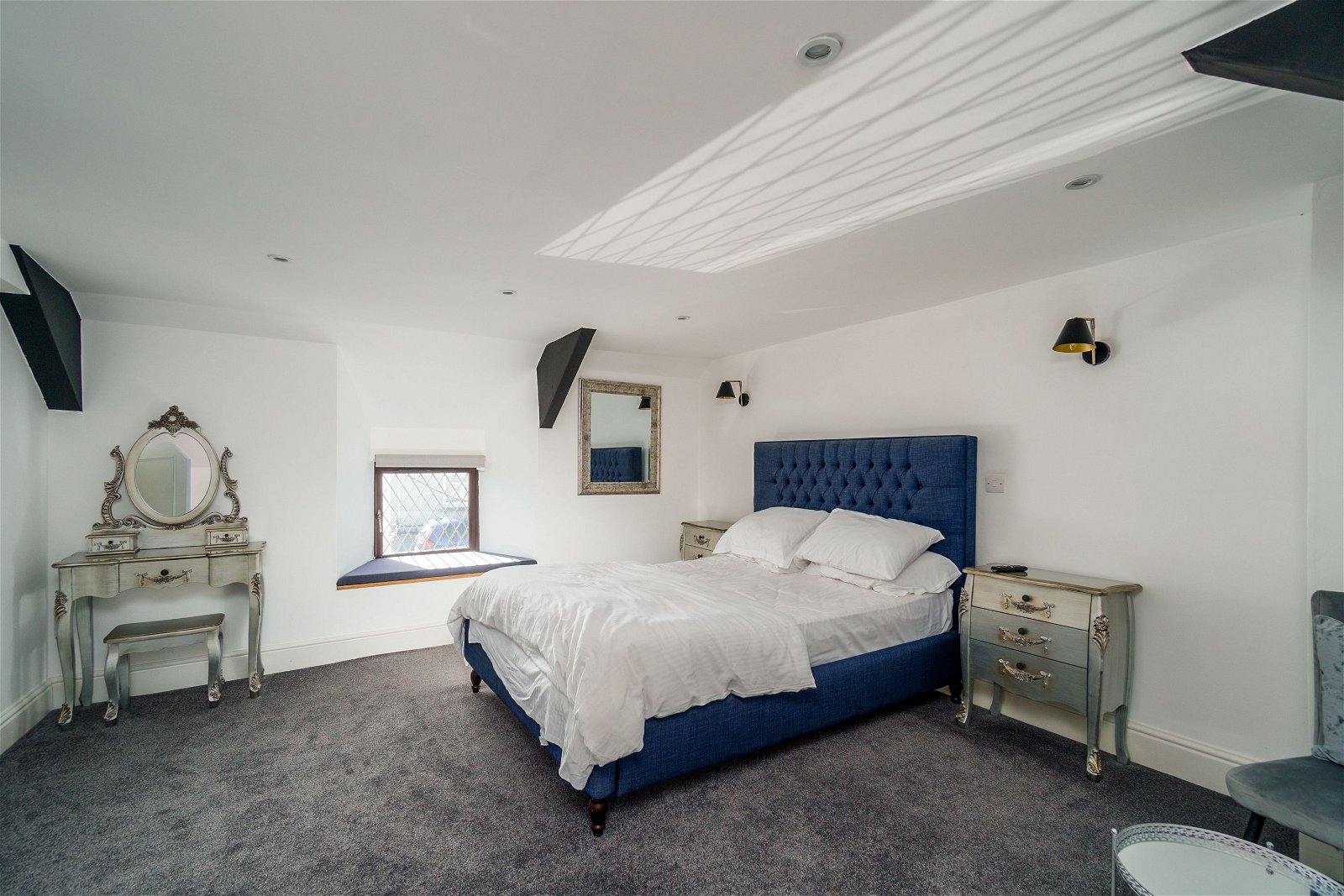 The living space is set above the former inn on the first floor. The apartment can comfortably accommodate a large family, with four bedrooms in total. Three of the bedrooms are king-sized, with ample space for beds, wardrobes and additional furniture, if required. The fourth bedroom is a spacious double with stunning river views, and a fully-tiled ensuite bathroom incorporating a bathtub, shower, wash basin and separate WC. The apartment itself has been previously used as four separate holiday apartments with two shared bathrooms, so the level of space available as an entire accommodation is truly spectacular.