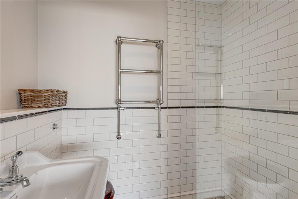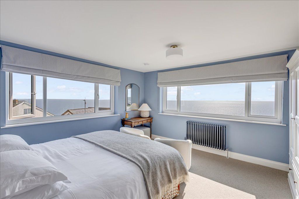 4 large double bedrooms, each double aspect and with expansive sea views. Two of the bedrooms are ensuites, with Burlington and Heritage bathroom furniture, and marble tiling.
