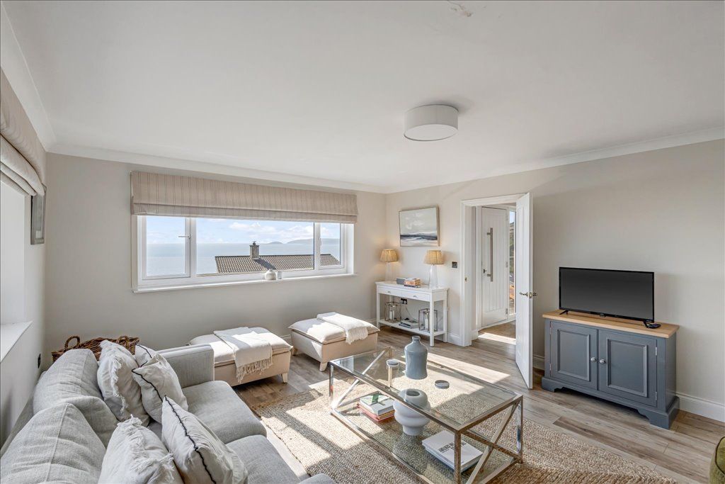 LIVING ROOM: with double aspect sea views and plenty of room for comfortable seating and media setups. This room could also be comfortably converted to a 6th bedroom.