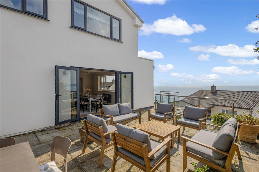 A SUBSTANTIAL, luxury, seaside home with stunning sea views FROM EVERY ROOM. Approximately 3,000 sq. ft., the property comprises a host of interior designed spaces including 3 reception rooms (living room, library/sitting room and games/cinema room); a beautiful kitchen-dining room with bespoke cabinetry; laundry; WC; 4 large bedrooms, two of which are ensuites, with option to set up as 5 or 6 bedrooms; a family bathroom; extensive, sea-facing outside space with outdoor kitchen; hot tub & sun terrace; large garage. The property boasts a high level of interior design and quality fixtures & fittings – the owners will consider selling furnished and equipped subject to negotiation.