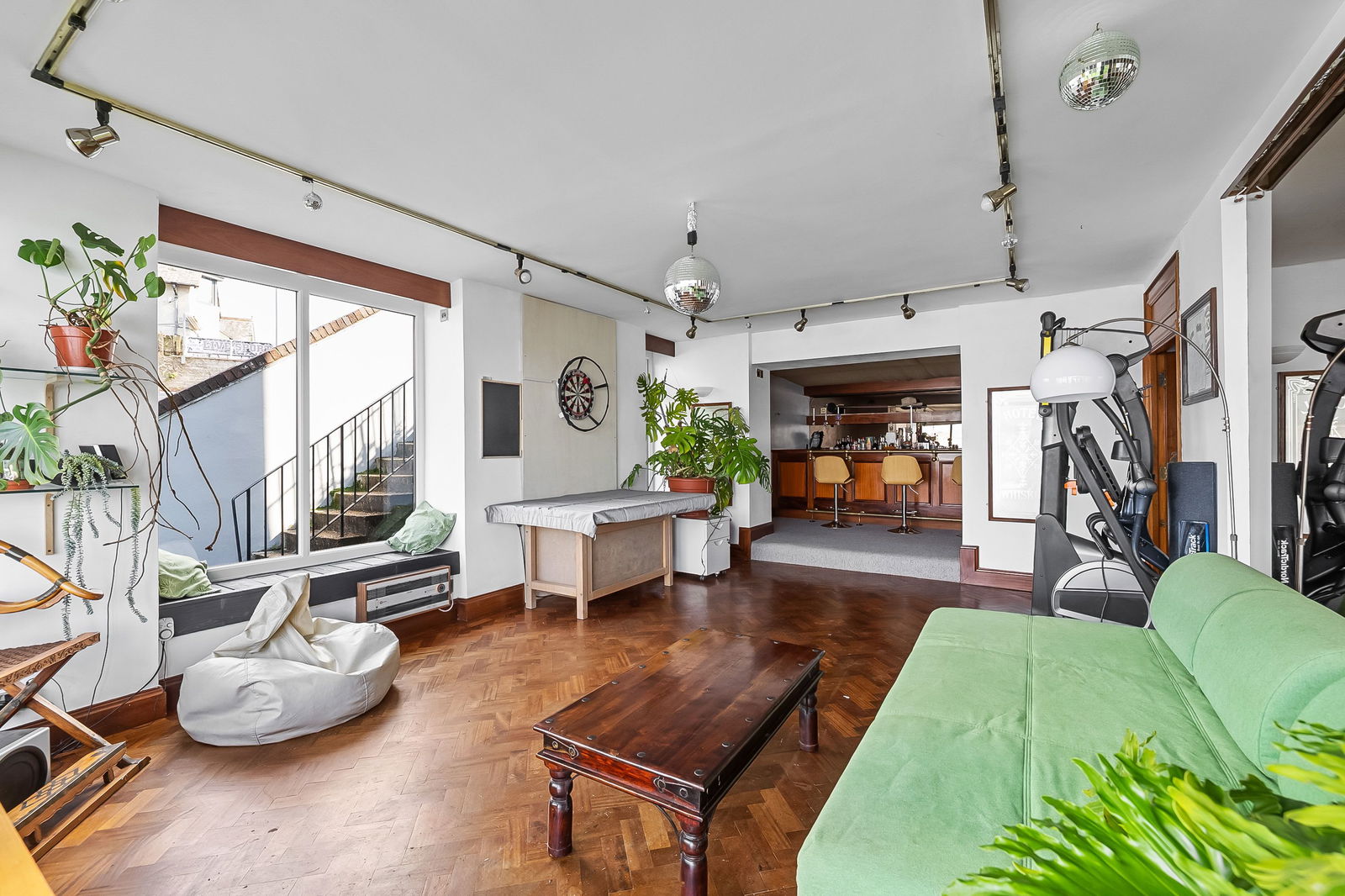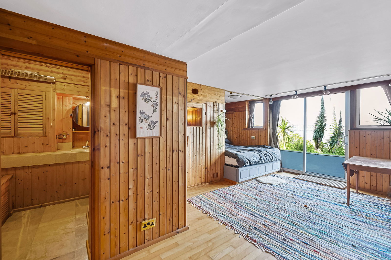 The lower garden level is a private sanctuary in its own right. Here lies an exceptional primary bedroom suite, generously proportioned and beautifully finished. This serene space boasts a luxurious en-suite bathroom, a private sauna, and tranquil views over the garden. This level could serve as an indulgent principal suite or as a secluded guest retreat.