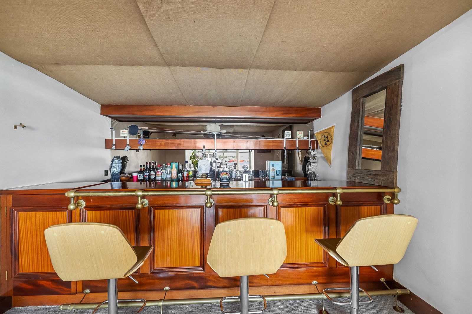At the far end of the hall lies a stunning games room with parquet hardwood flooring, perfect for entertaining, featuring French doors that connect to the outdoor spaces. Adjoining is a dedicated bar area, ideal for evening gatherings, celebrations, or converting into a cinema or studio if desired.