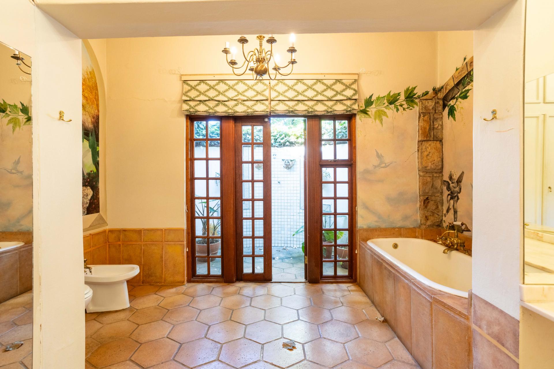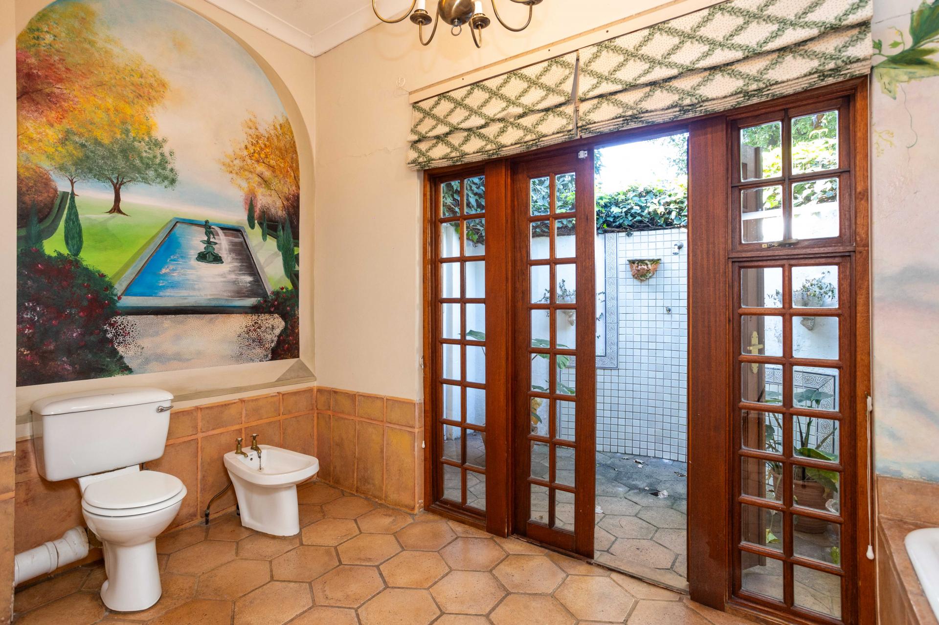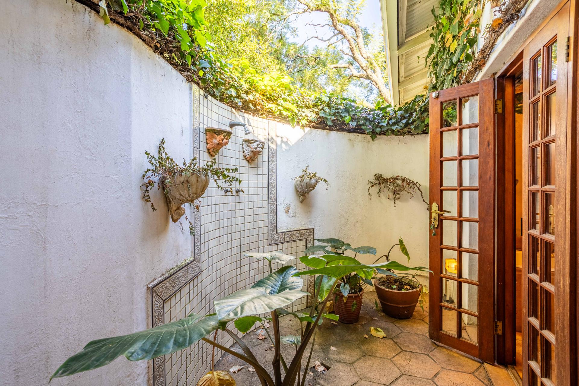 The property has two generously sized bedrooms that are both en-suite. Each bedroom is designed with ample cupboard space, providing plenty of storage. One of the en-suite bathrooms features a unique outdoor shower.