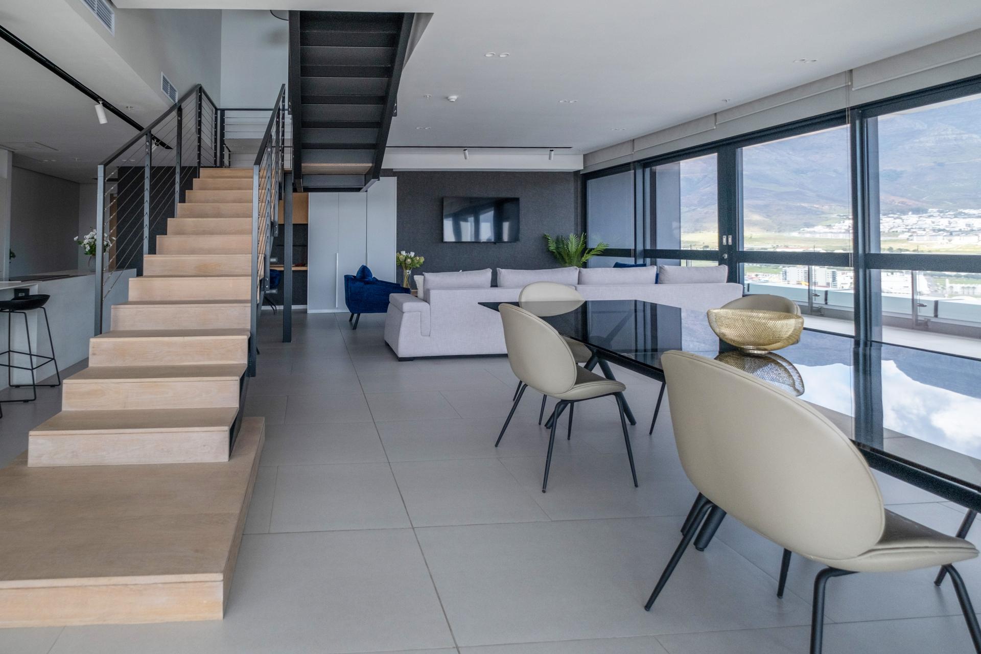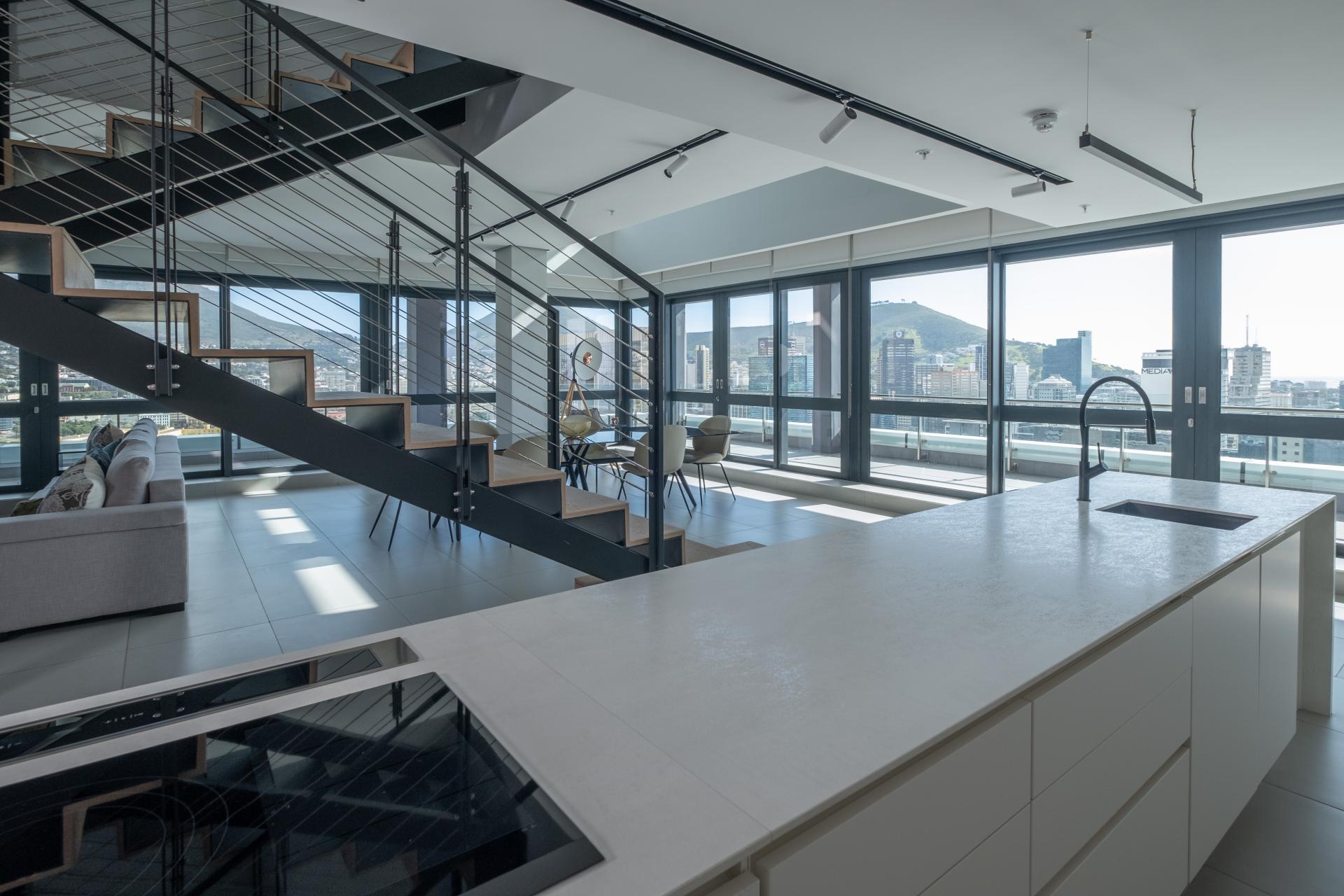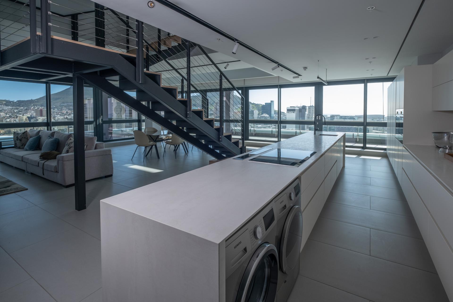 Fully furnished. The Halyard is an impressive mixed-use building at the pinnacle of the trending foreshore district in Cape Town and is easily accessible at the gateway to Cape Town’s Central Business District. The Halyard commands the sky with unobstructed 360° views of the city, harbour and Table Mountain. It’s crowning glory is three stories of residential accommodation which offers one the opportunity to occupy a piece of the city’s skyline.
