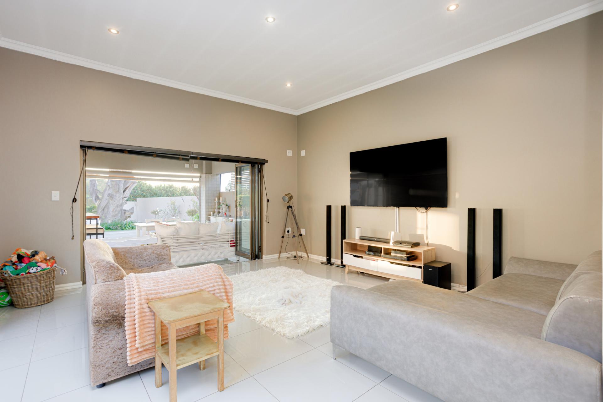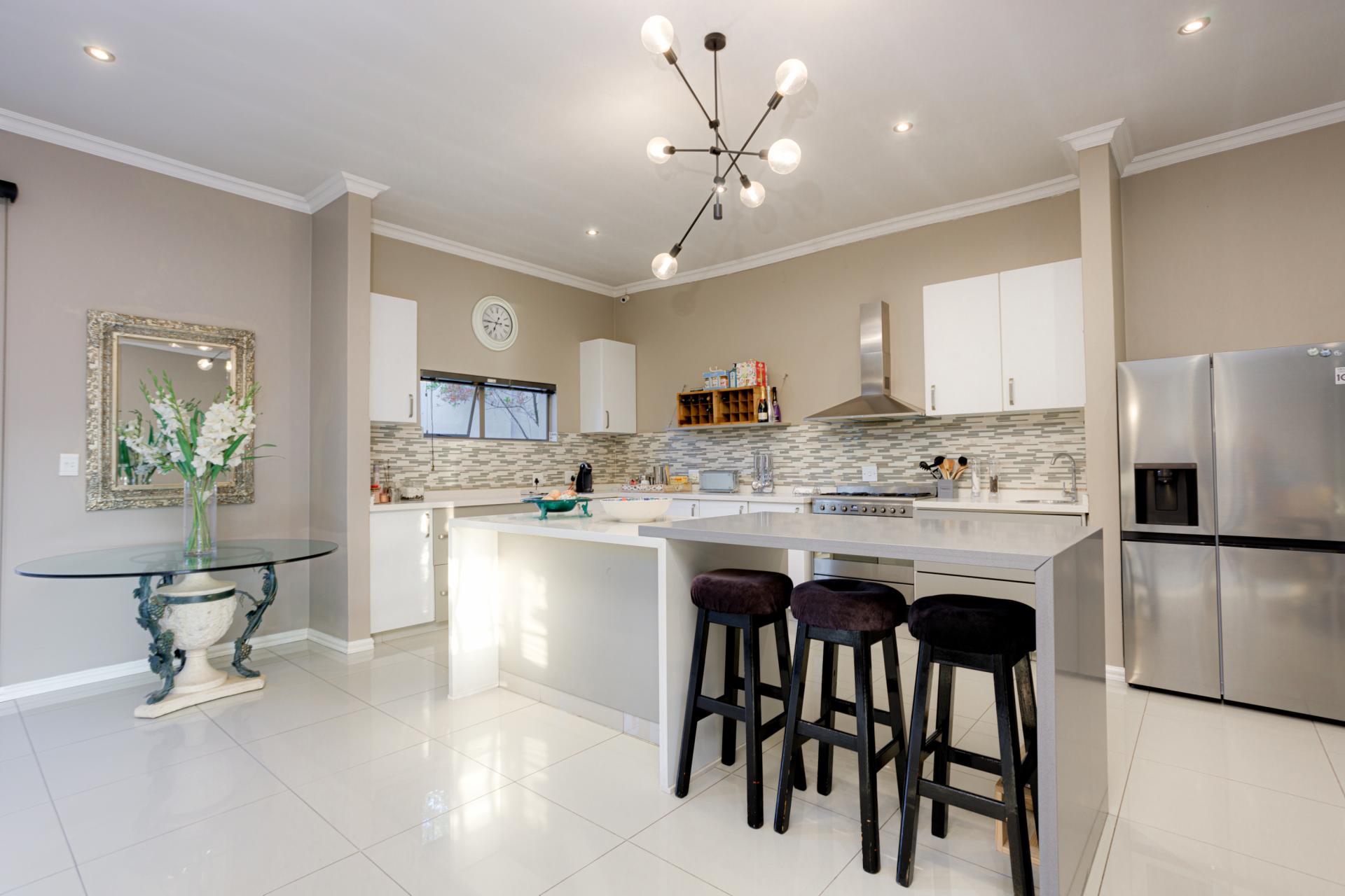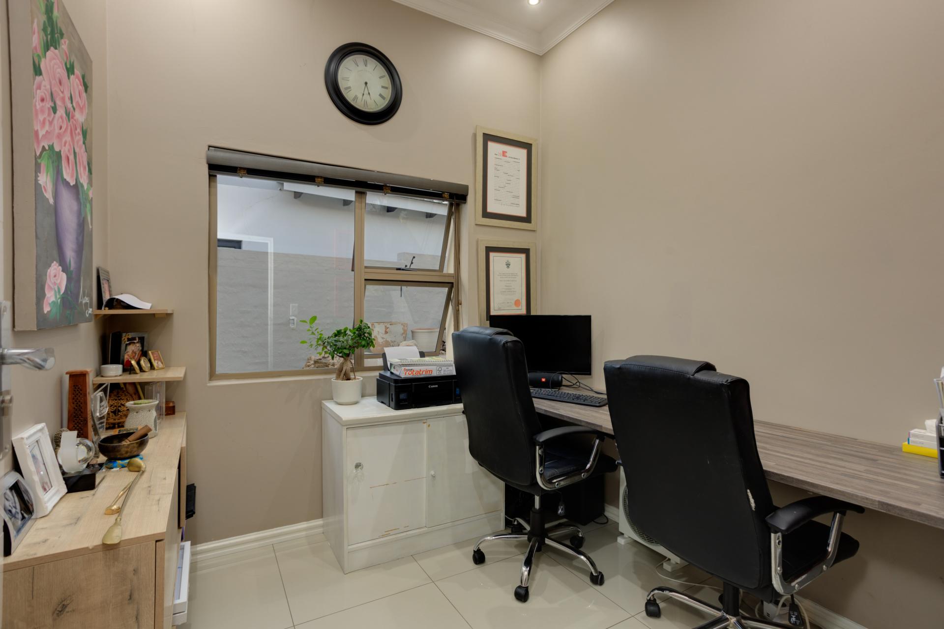 Seperate TV lounge, dedicated study, and a covered patio with drop-down blinds and a built-in entertainment area. The manicured garden boasts a swimming pool, while a solar geyser adds energy efficiency. Positioned on a large stand, this home is ideal for modern family living and effortless entertaining.