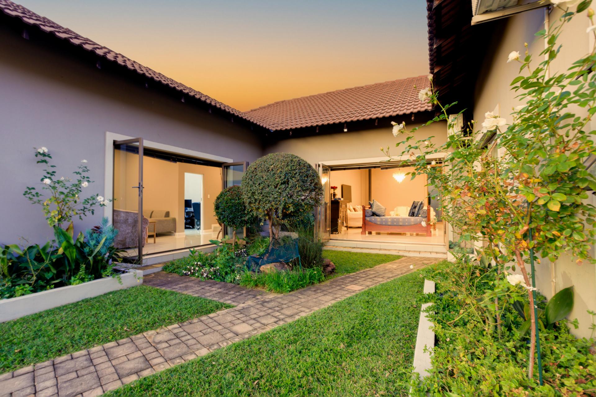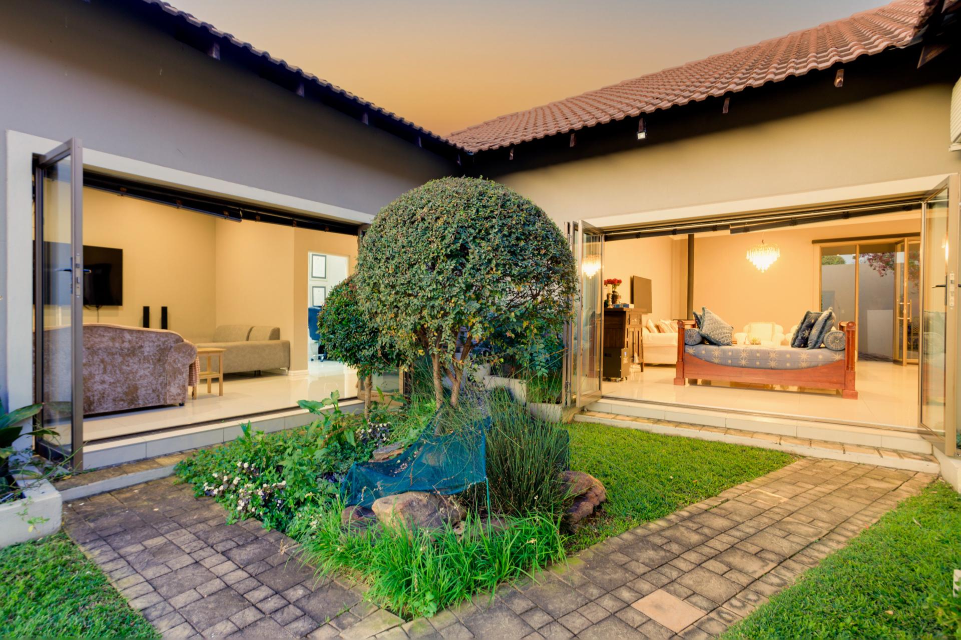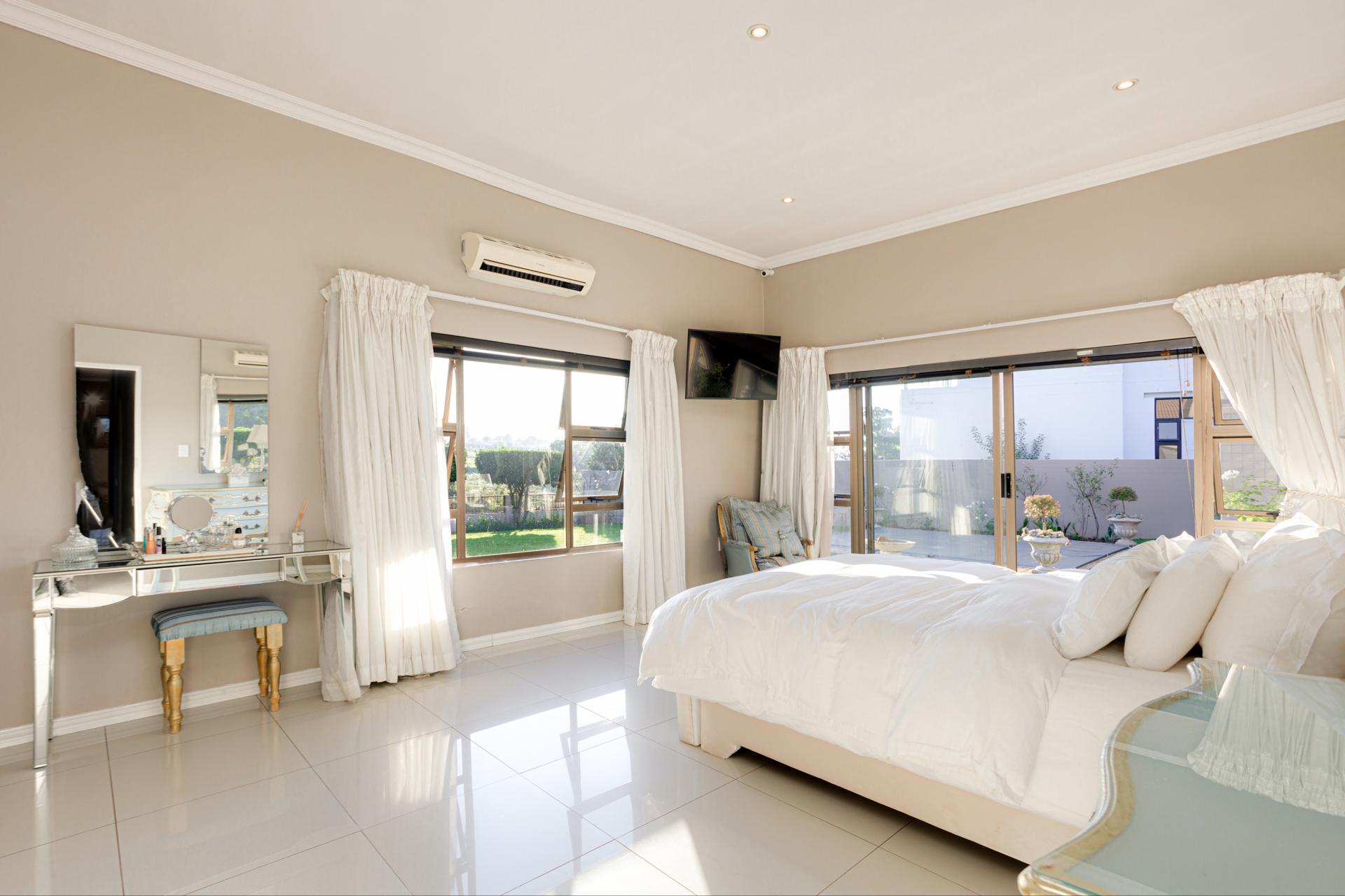 Seperate TV lounge, dedicated study, and a covered patio with drop-down blinds and a built-in entertainment area. The manicured garden boasts a swimming pool, while a solar geyser adds energy efficiency. Positioned on a large stand, this home is ideal for modern family living and effortless entertaining.