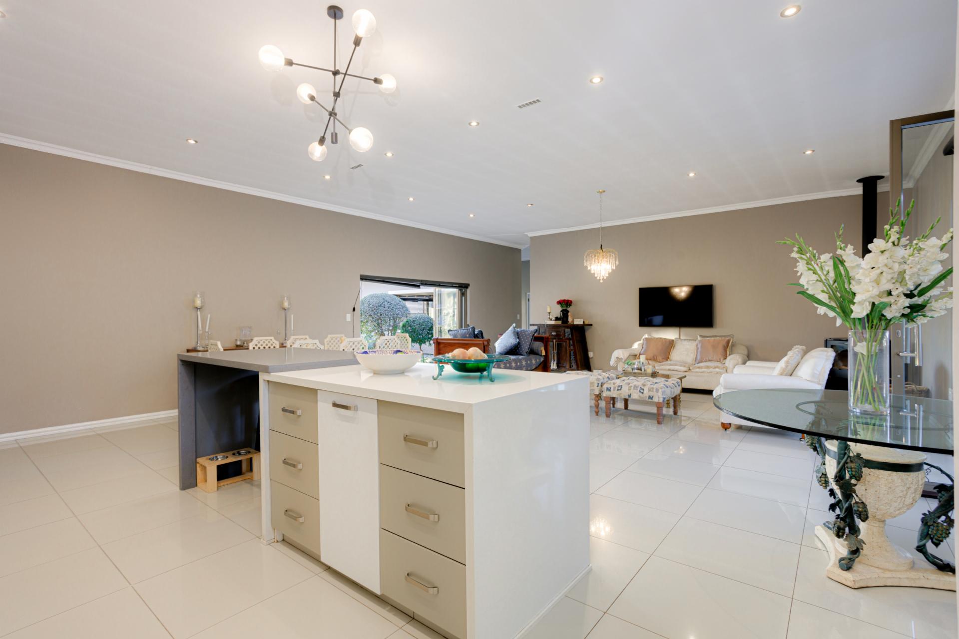 Step through sleek double glass doors into a spacious, open-plan living area anchored by a wood-burning closed-combustion fireplace—ideal for cozy evenings. The beautifully designed kitchen is a chef’s dream, featuring a central island, gas hob, and stacking doors that open effortlessly to the garden. A separate scullery provides space for three appliances and leads to convenient outdoor storage.
