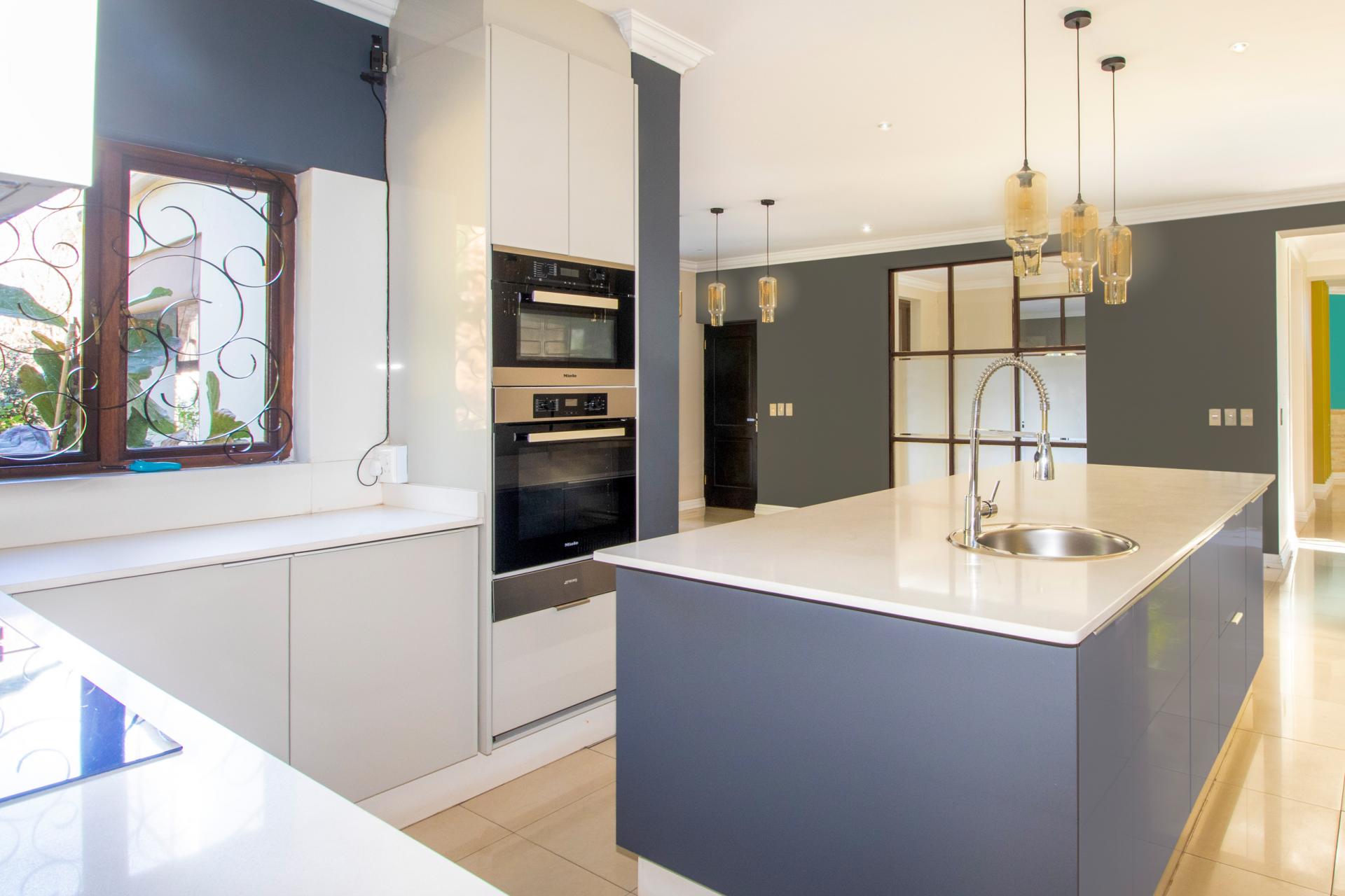 The kitchen offers refined kitchen appliances such as a built-in Smeg double door fridge, Mielle oven and microwave, large multiple plate stove, complemented by a practical scullery with space for two appliances that opens onto a well-sized private courtyard. A well-appointed Domestic accommodation with a kitchenette is conveniently located just off the kitchen.
