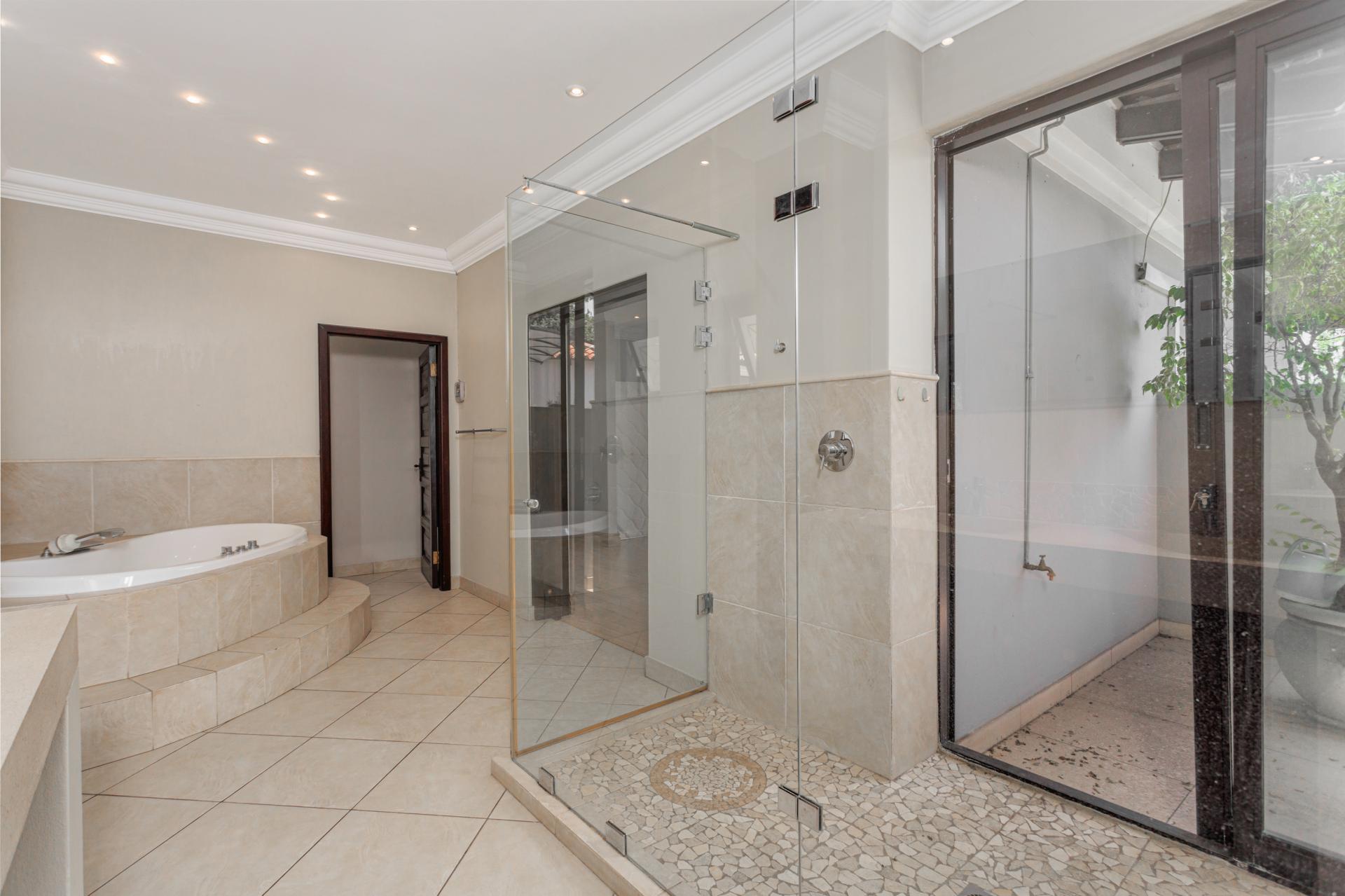 On the lower level, three sunlit north-facing bedrooms await, including the luxurious main suite with its ample dimensions and attached bathroom. For added convenience, the fourth bedroom finds its place on the ground level, completing this exceptional offering in Dainfern Valley Estate. Experience the pinnacle of luxury living in a location that truly sets the standard.