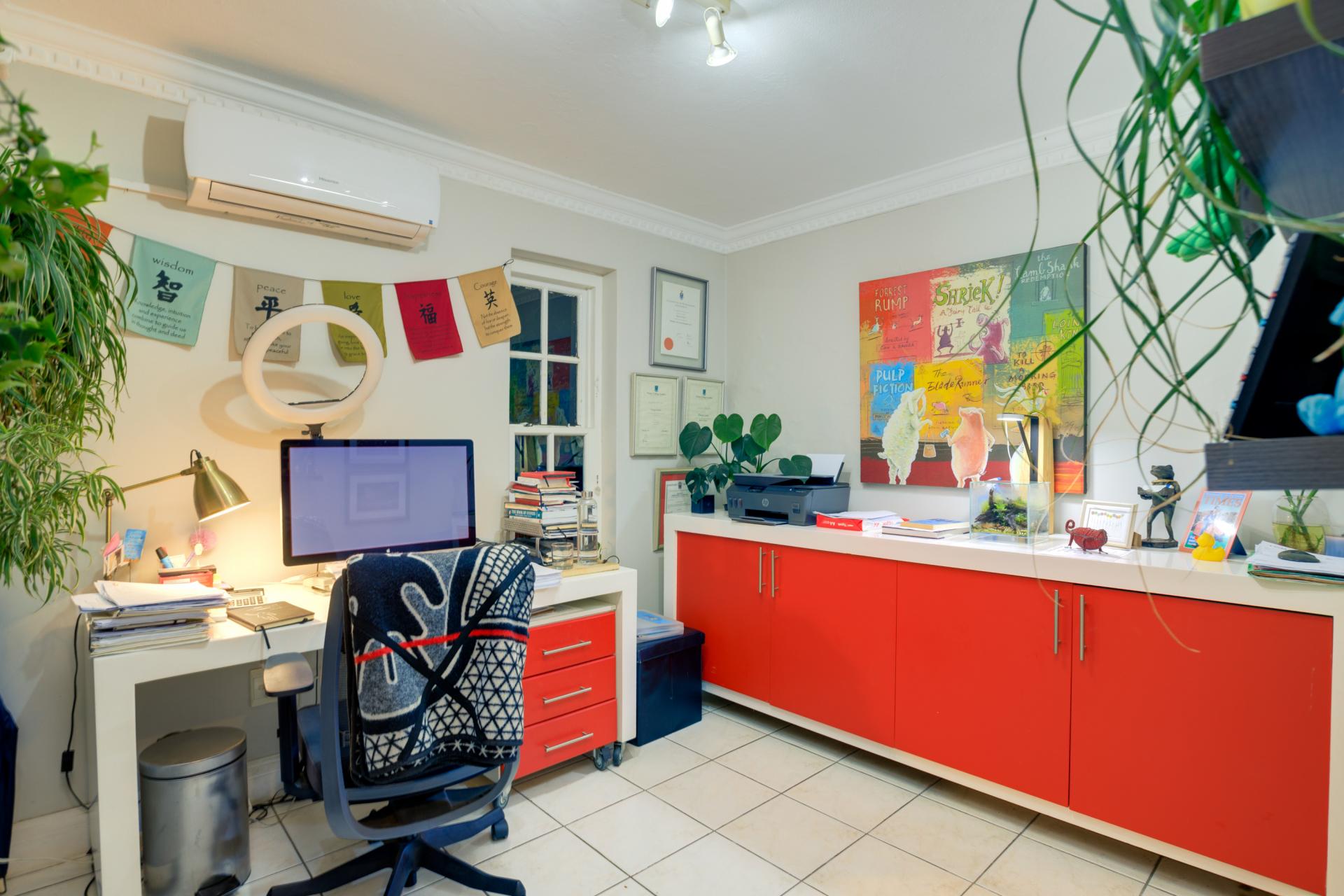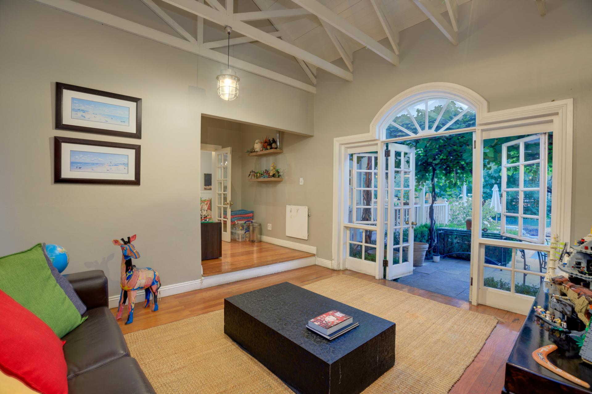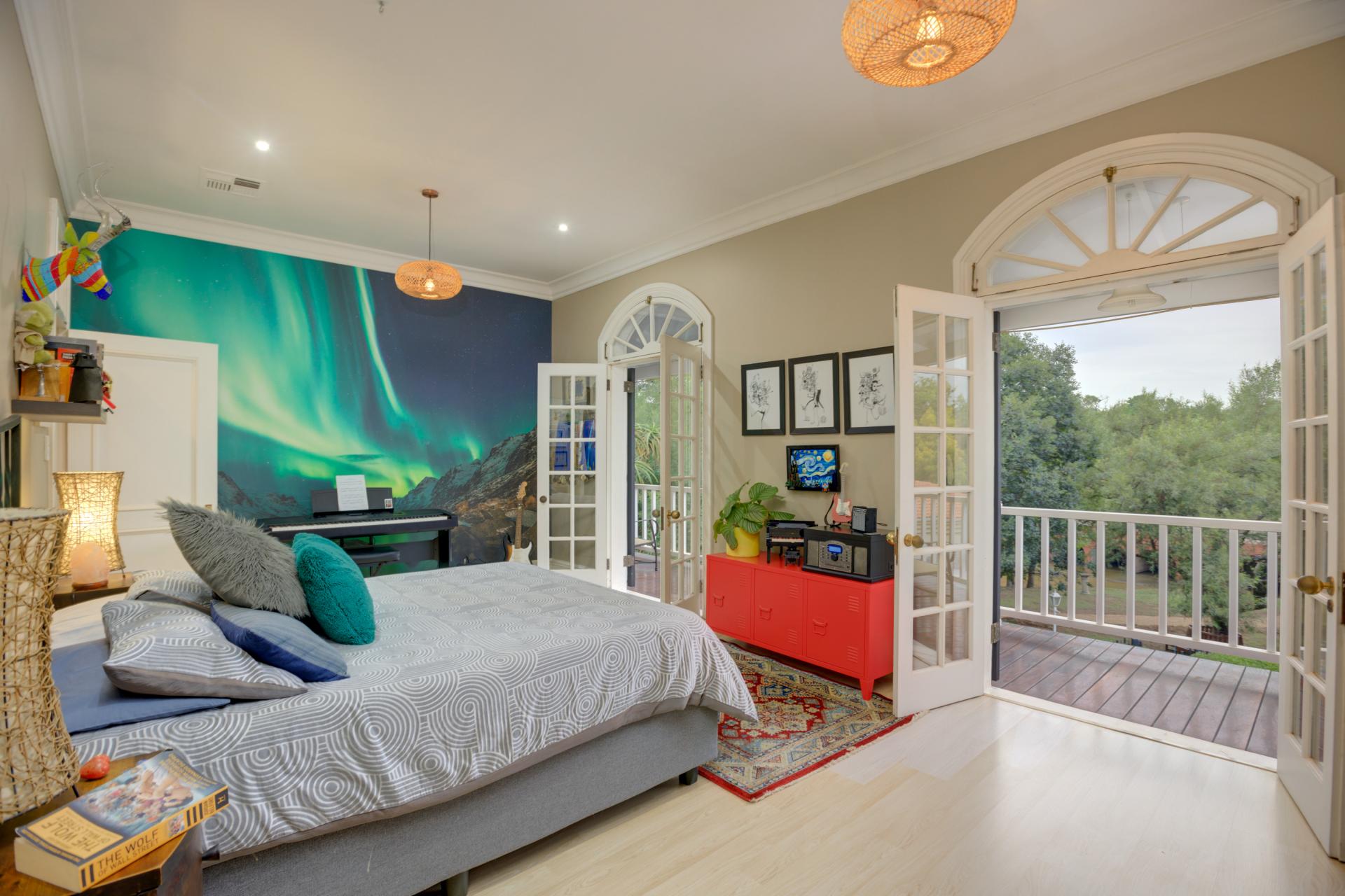 Accommodation includes four bedrooms: a downstairs guest suite/playroom, plus three upstairs bedrooms with garden and Greenbelt views. The main suite offers a private balcony, full en-suite, and luxury finishes. A study nook completes the upstairs. A separate two-bedroom cottage with kitchenette and bathroom offers versatility for guests, work-from-home, or extended family. Extras include a double automated garage, solar backup system, and beautifully landscaped garden with mature trees.