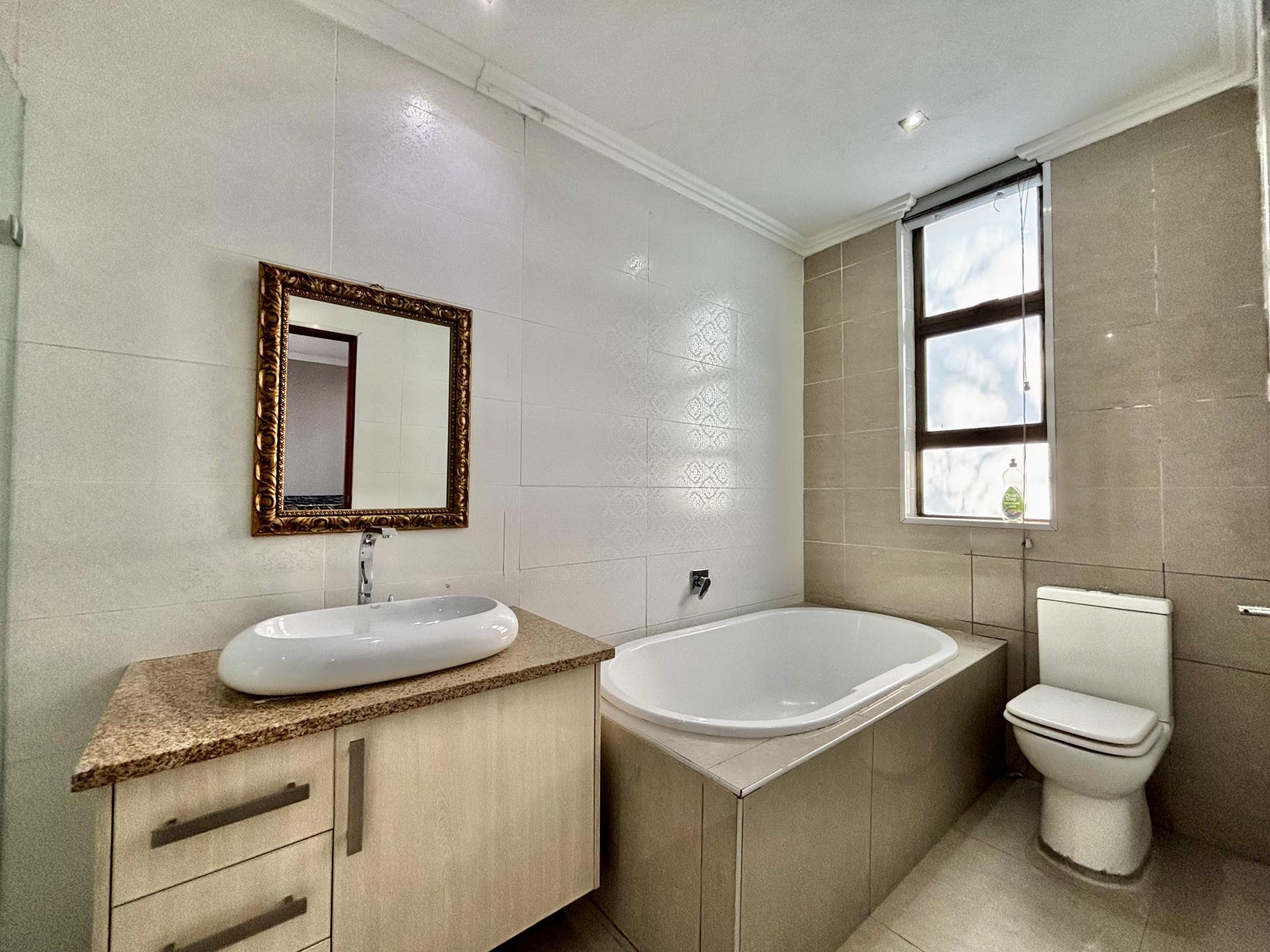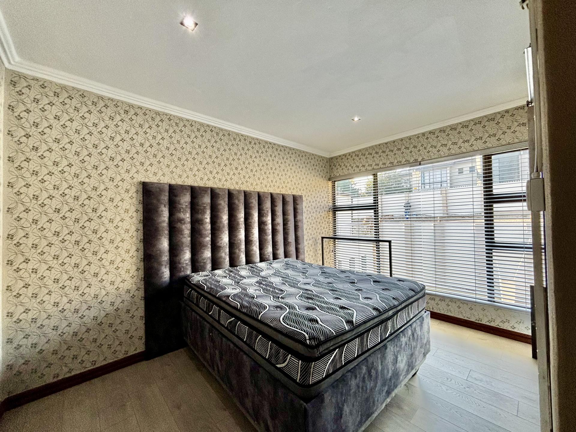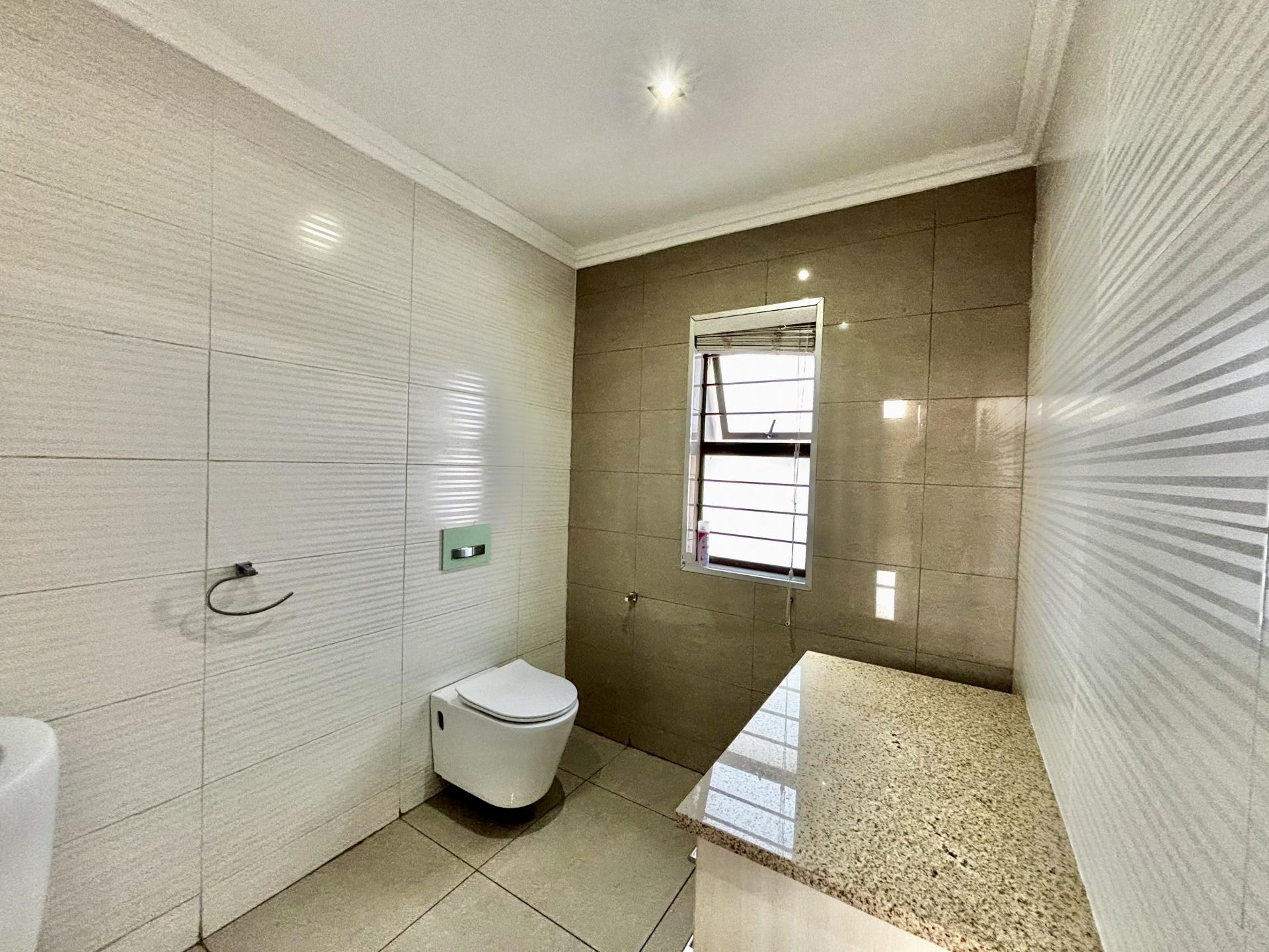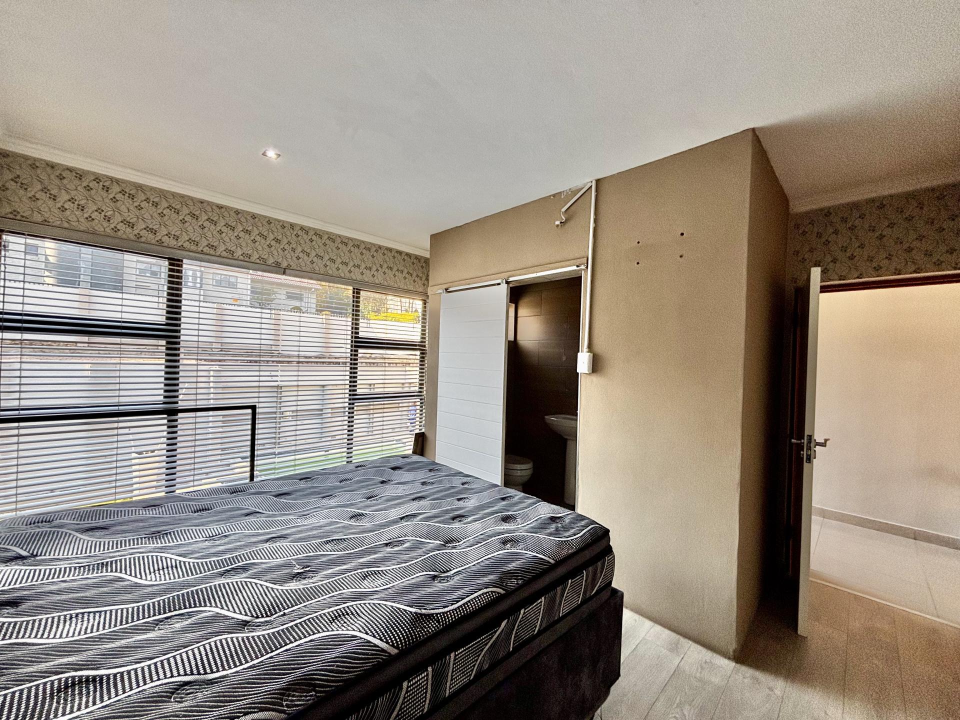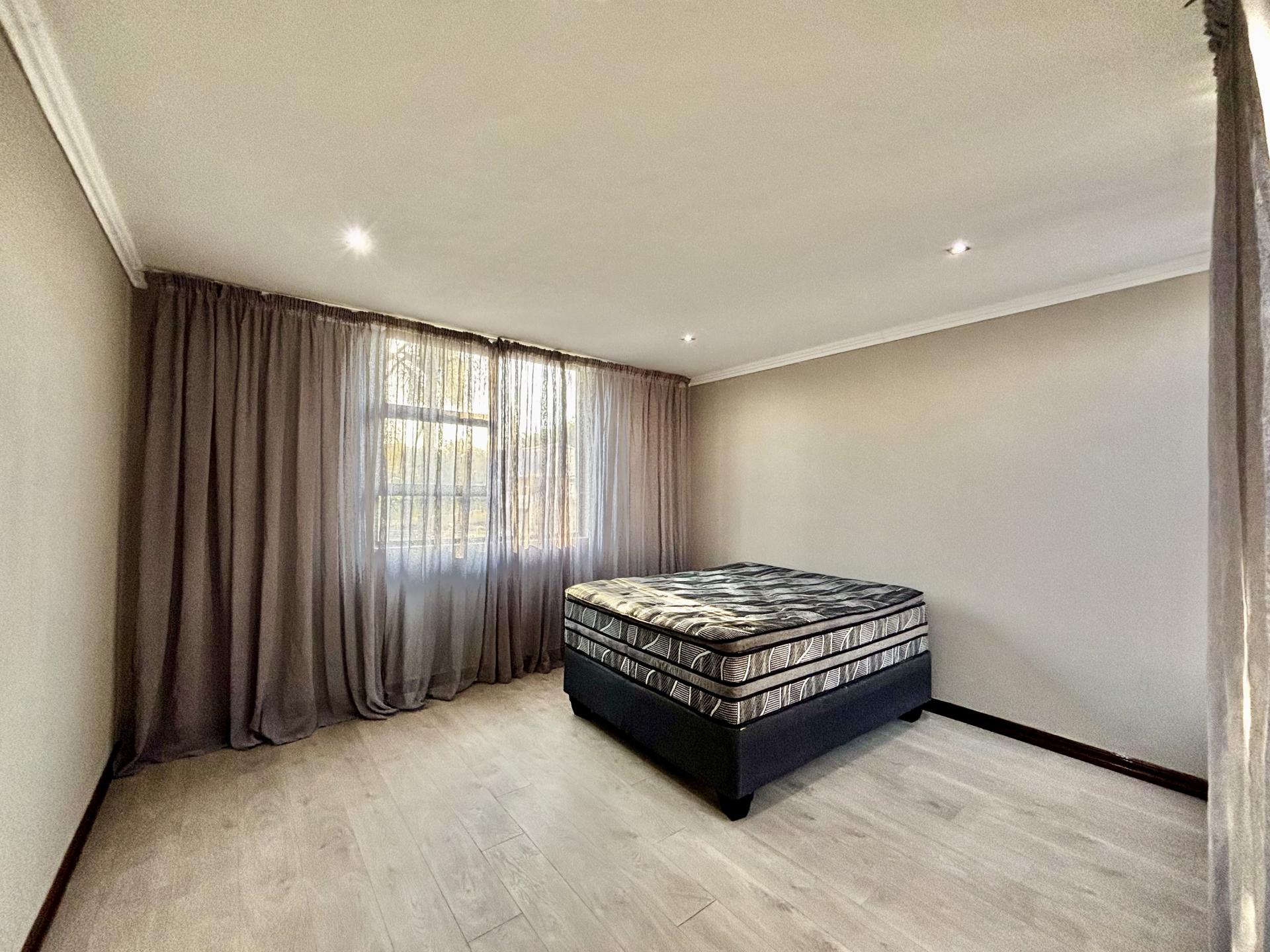 The sleek, ultra-modern kitchen is a chef’s dream, featuring premium appliances and seamless flow into a dining room built for grand gatherings. Upstairs, eight spacious bedrooms, each with its own luxurious en-suite bathroom, offer serene retreats. The upper-level rooms open onto a wide balcony, unveiling panoramic views of Waterkloof Ridge’s scenic beauty.