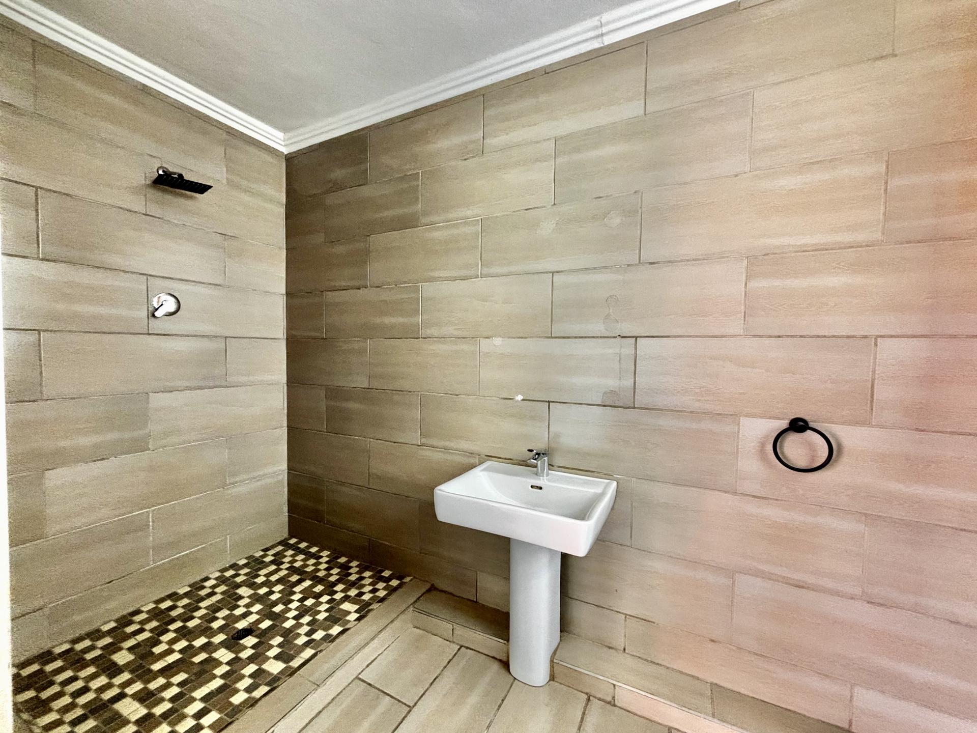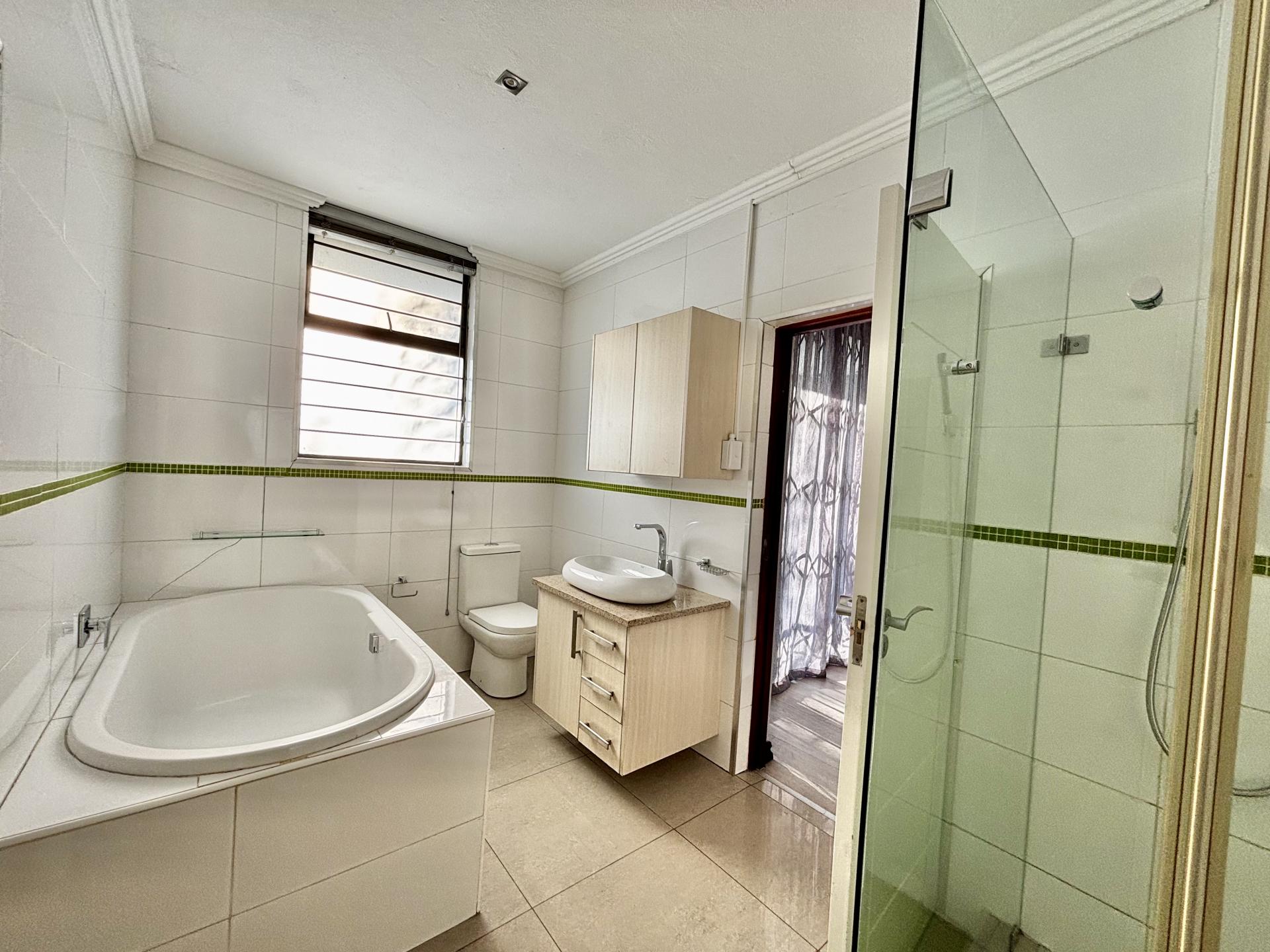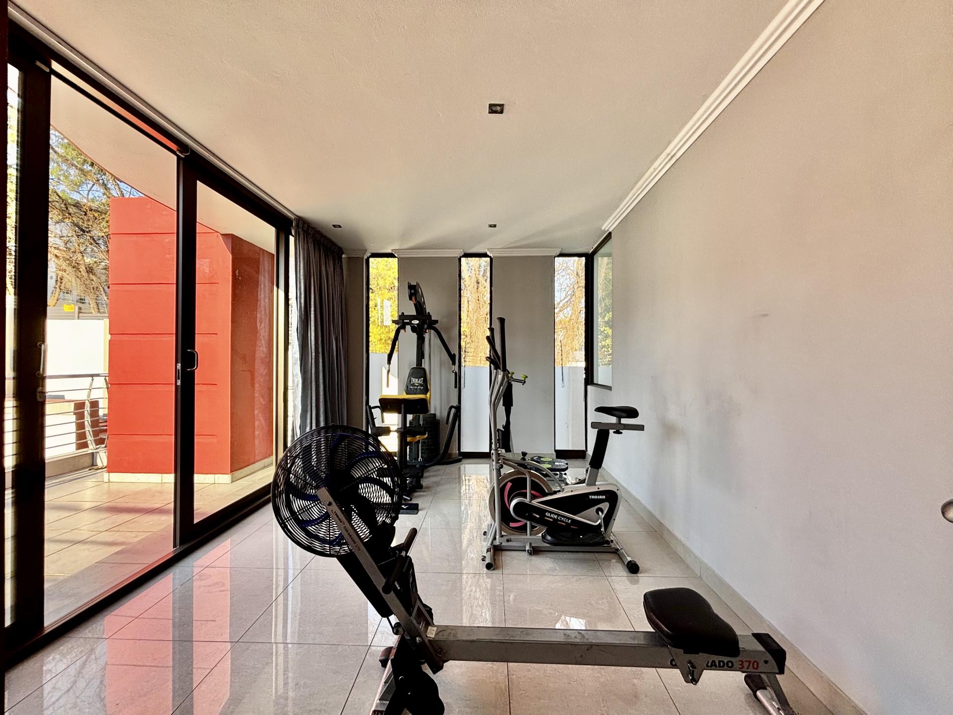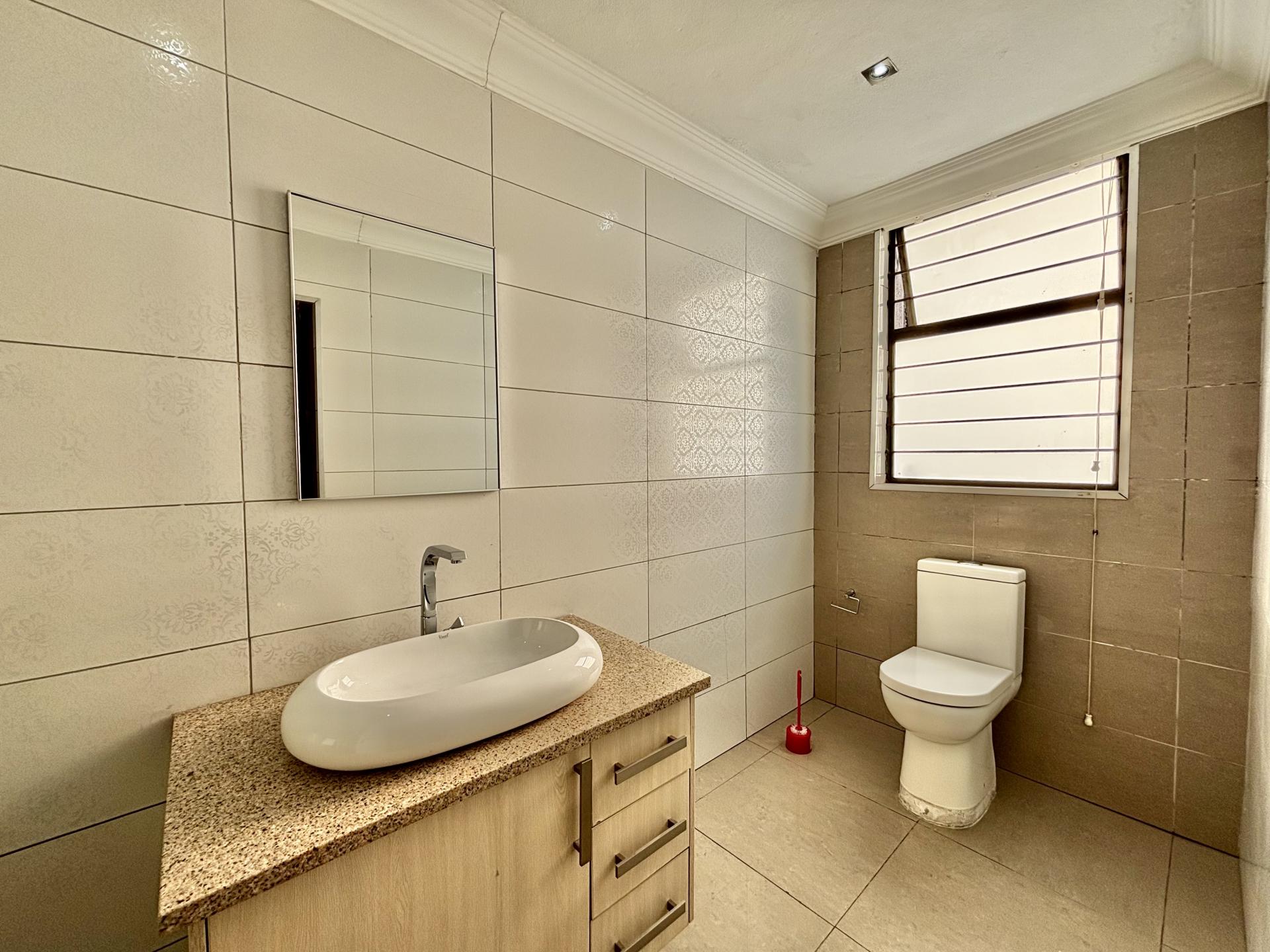 The sleek, ultra-modern kitchen is a chef’s dream, featuring premium appliances and seamless flow into a dining room built for grand gatherings. Upstairs, eight spacious bedrooms, each with its own luxurious en-suite bathroom, offer serene retreats. The upper-level rooms open onto a wide balcony, unveiling panoramic views of Waterkloof Ridge’s scenic beauty.