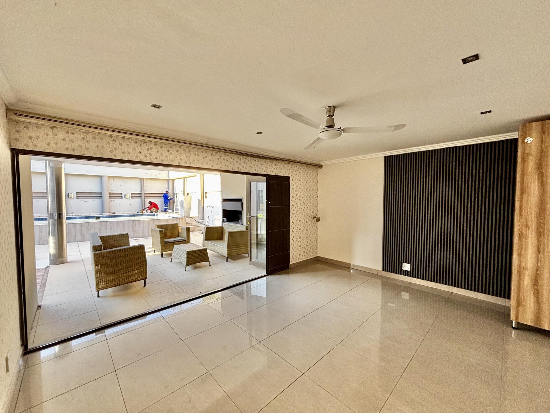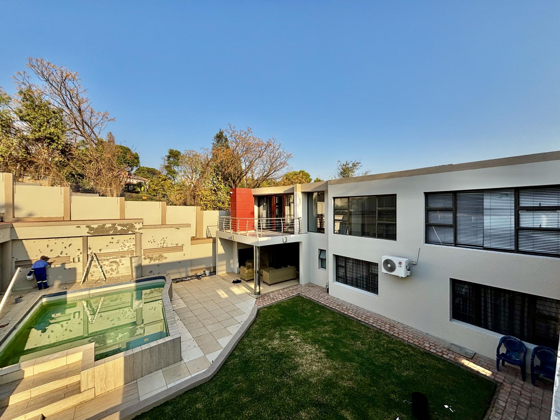Outside, a sprawling patio with a built-in braai overlooks a sparkling pool and lush private garden—an idyllic setting for hosting unforgettable events or savoring tranquil evenings. Security is uncompromising, with a guardhouse, high perimeter walls, electric fencing, CCTV, and armed response ensuring peace of mind. The property also features six automated garages, secure on-site parking, a backup generator, and two staff quarters for ultimate convenience.