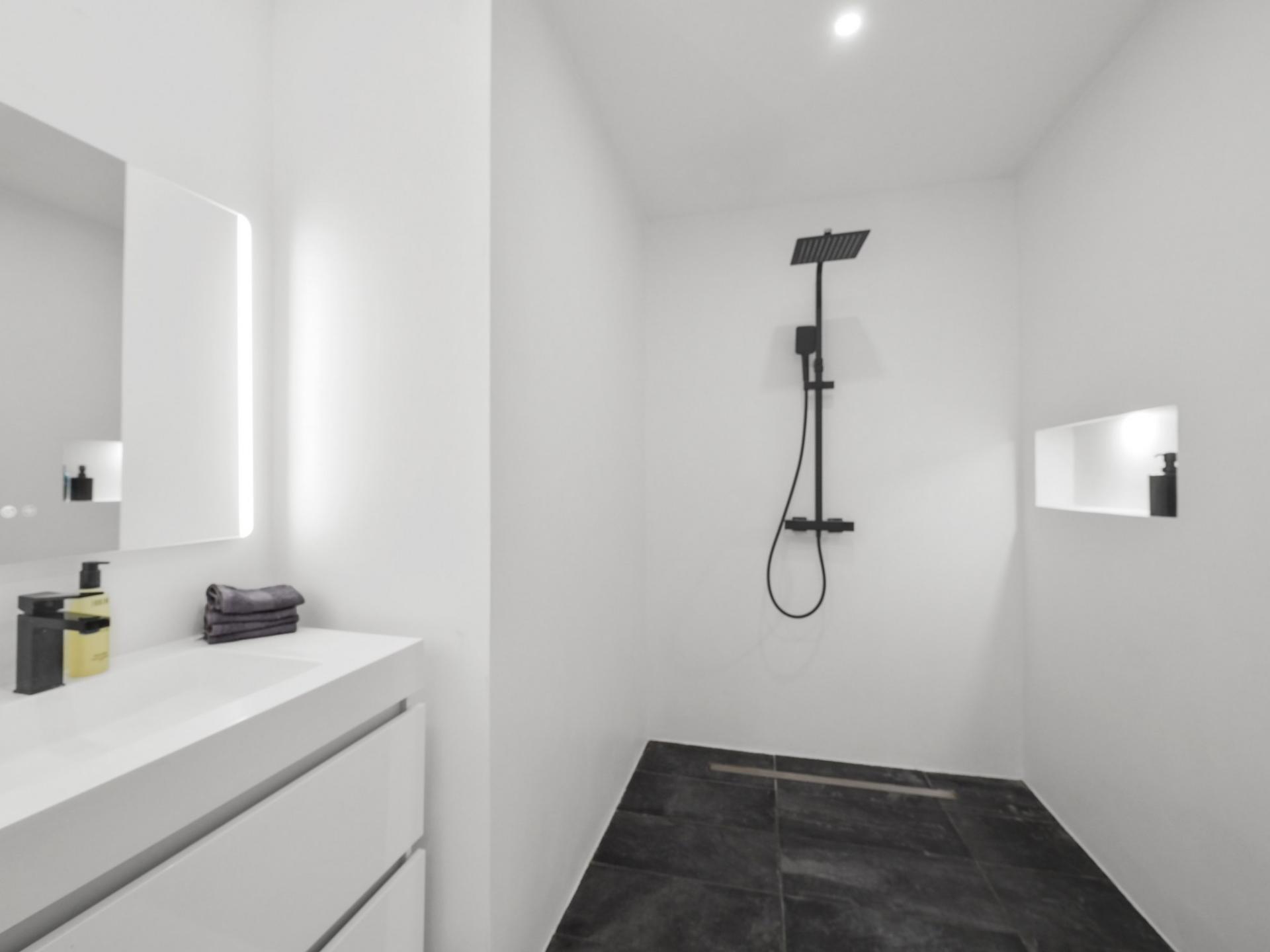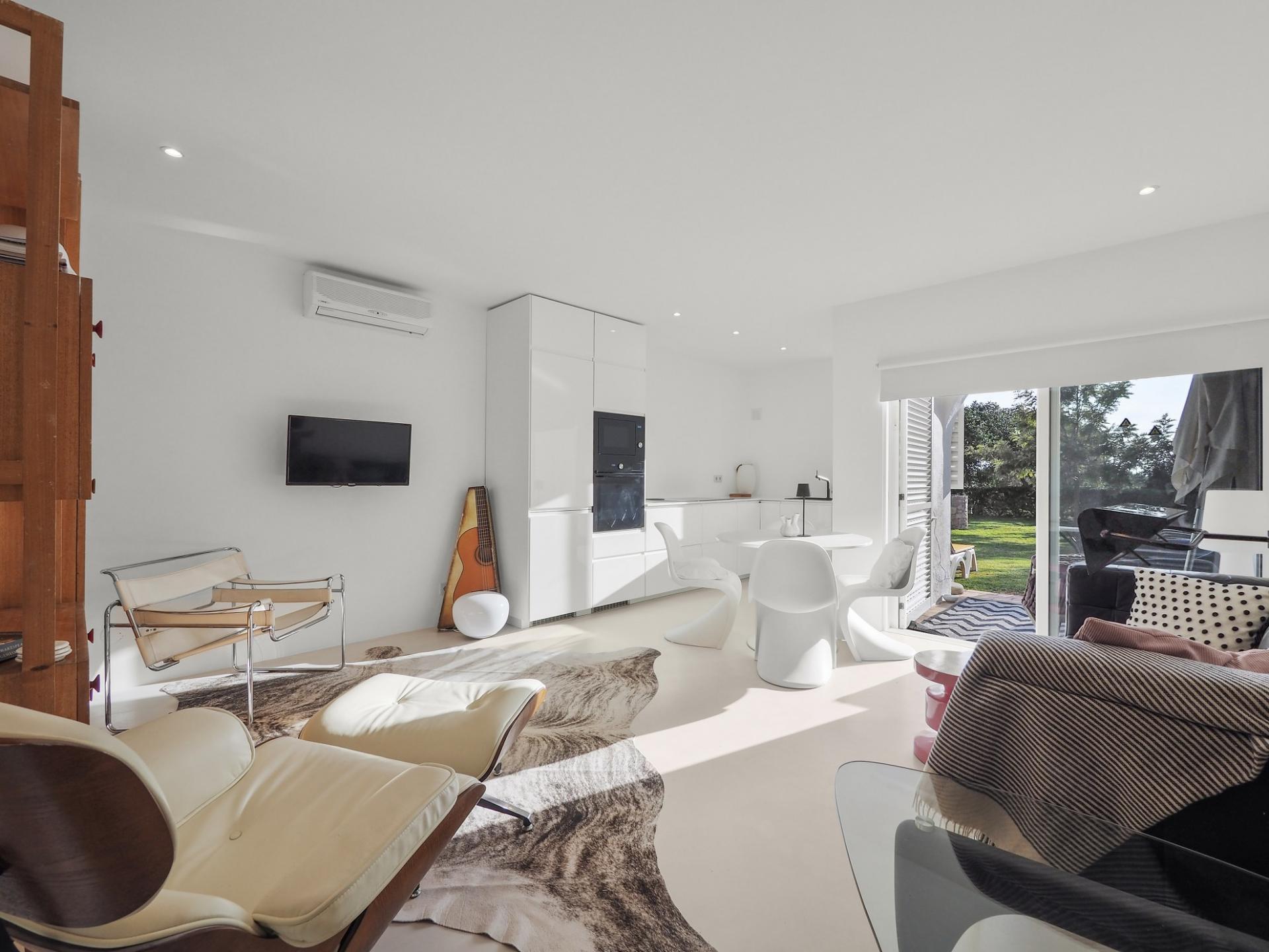The property features an open-plan kitchen, seamlessly connecting to the dining and living area, with patio doors opening onto a private terrace—perfect for alfresco dining.