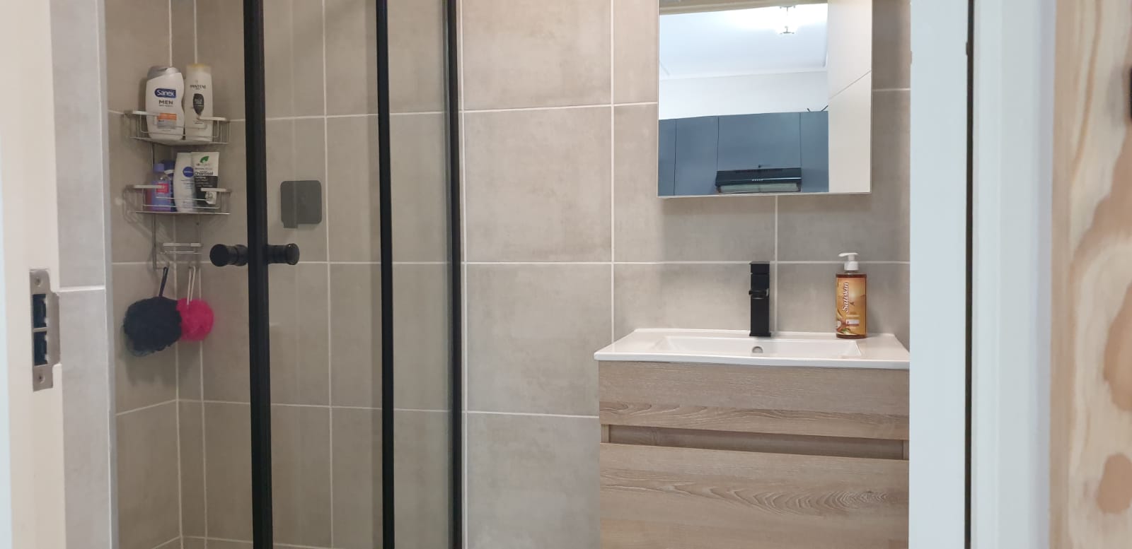 One bedroom with built in cupboards. Bathroom has a shower, basin and toilet.