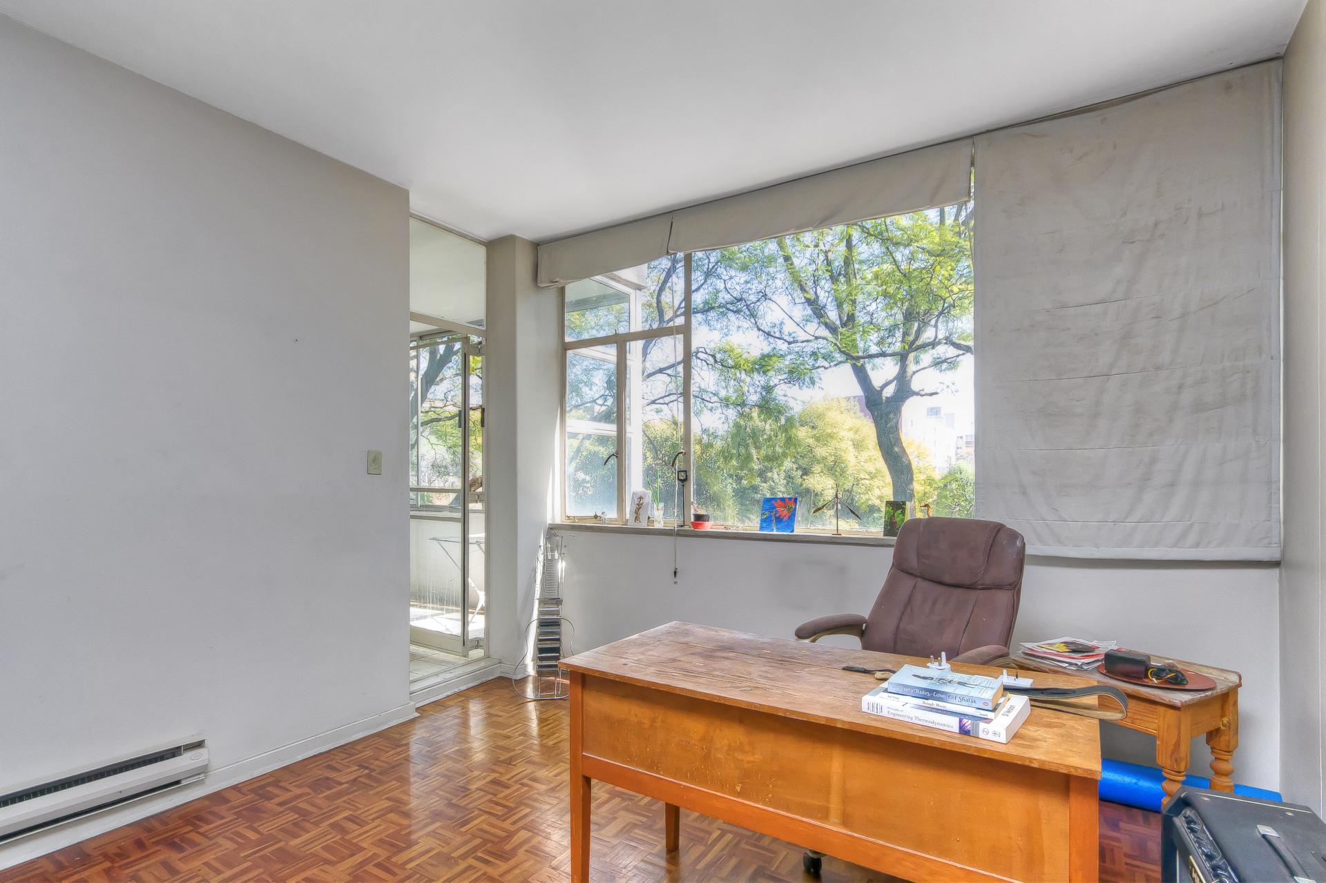 The apartment offers generous proportions, high ceilings, and timeless parquet flooring, with large windows flooding the space with natural light. The spacious bedroom, generous living area, and separate kitchen provide a comfortable retreat in a well-managed and very secure block.