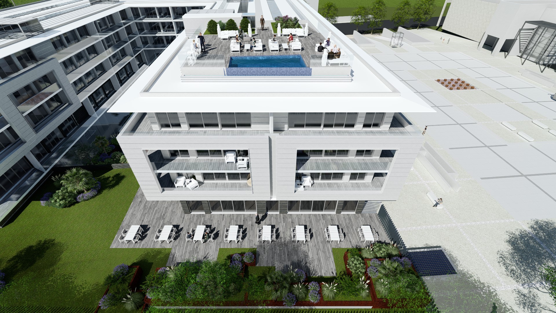 Com uma oferta diferenciada incluem o bar no terraço com vista panorâmica para o rio, restaurante de topo, ginásio com equipamentos última geração, lojas de luxo, salas de reunião e parque de estacionamento.