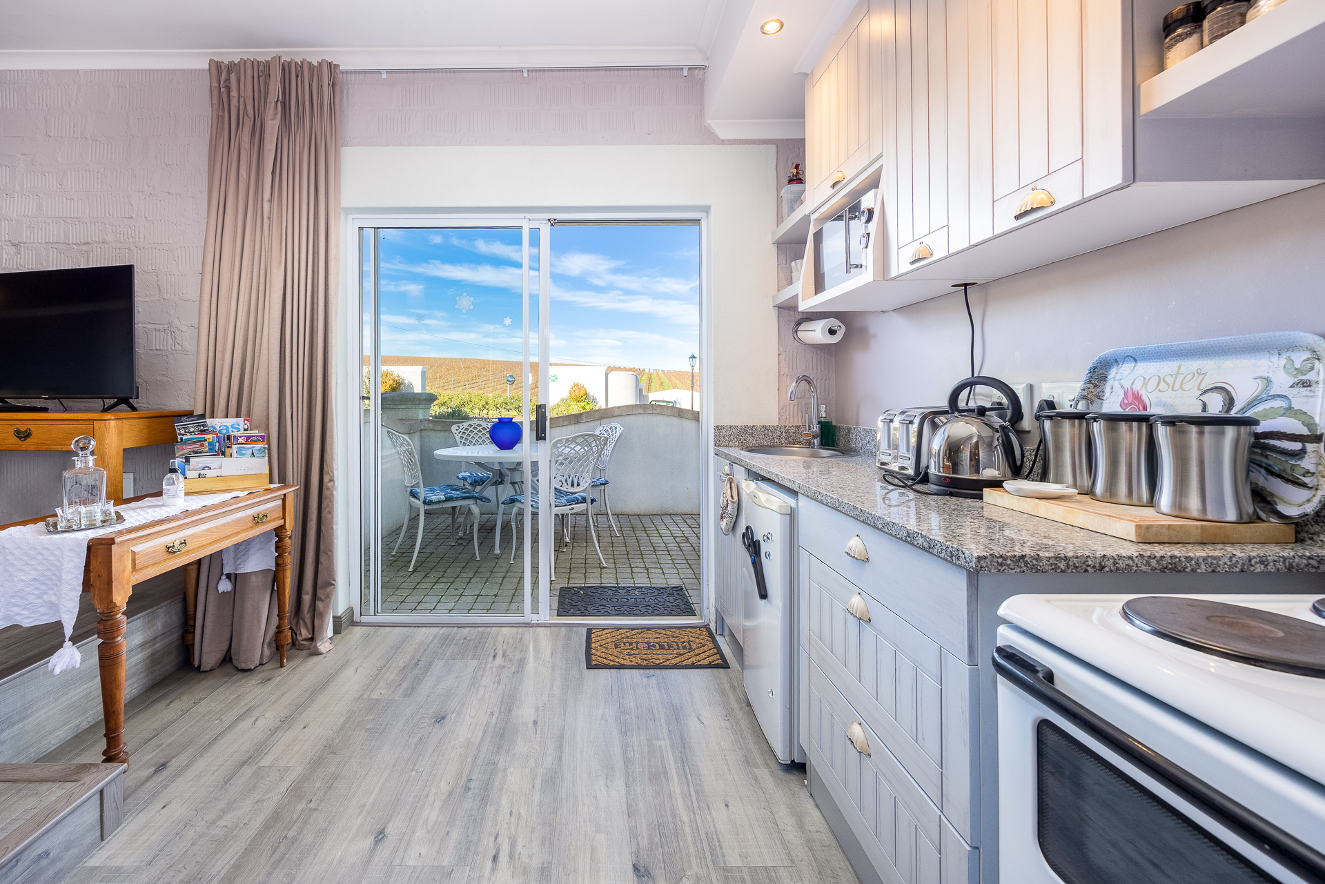 Sauvignon – The Elegant Unit, offers views over the vineyards with 2 en-suite bedrooms, bathrooms with showers, and a lounge with a kitchenette leading onto a patio and garden.