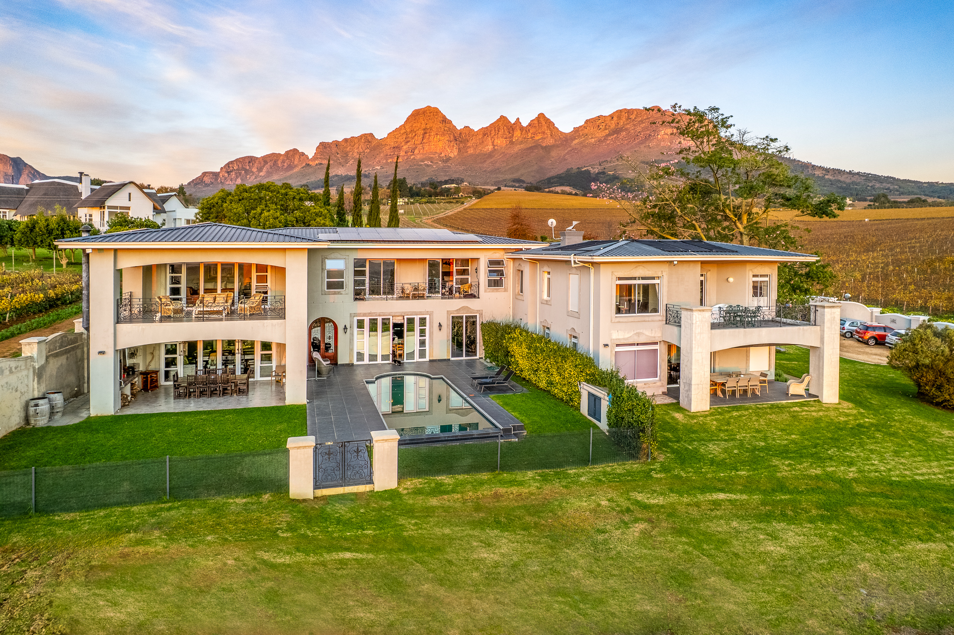 The prestigious Stellenbosch Winelands area is well known for its luxury lifestyle, fine dining, and the cultural landmarks of Stellenbosch and its renowned Wine Estates. With hiking and cycling trails nearby, serene beaches, and close connectivity to Cape Town Airport and its vibrant surroundings, this Estate offers an ideal blend of serene country living, and sophistication to buyers, looking for a luxurious, secure residence, or a guesthouse retreat in the Stellenbosch Winelands.