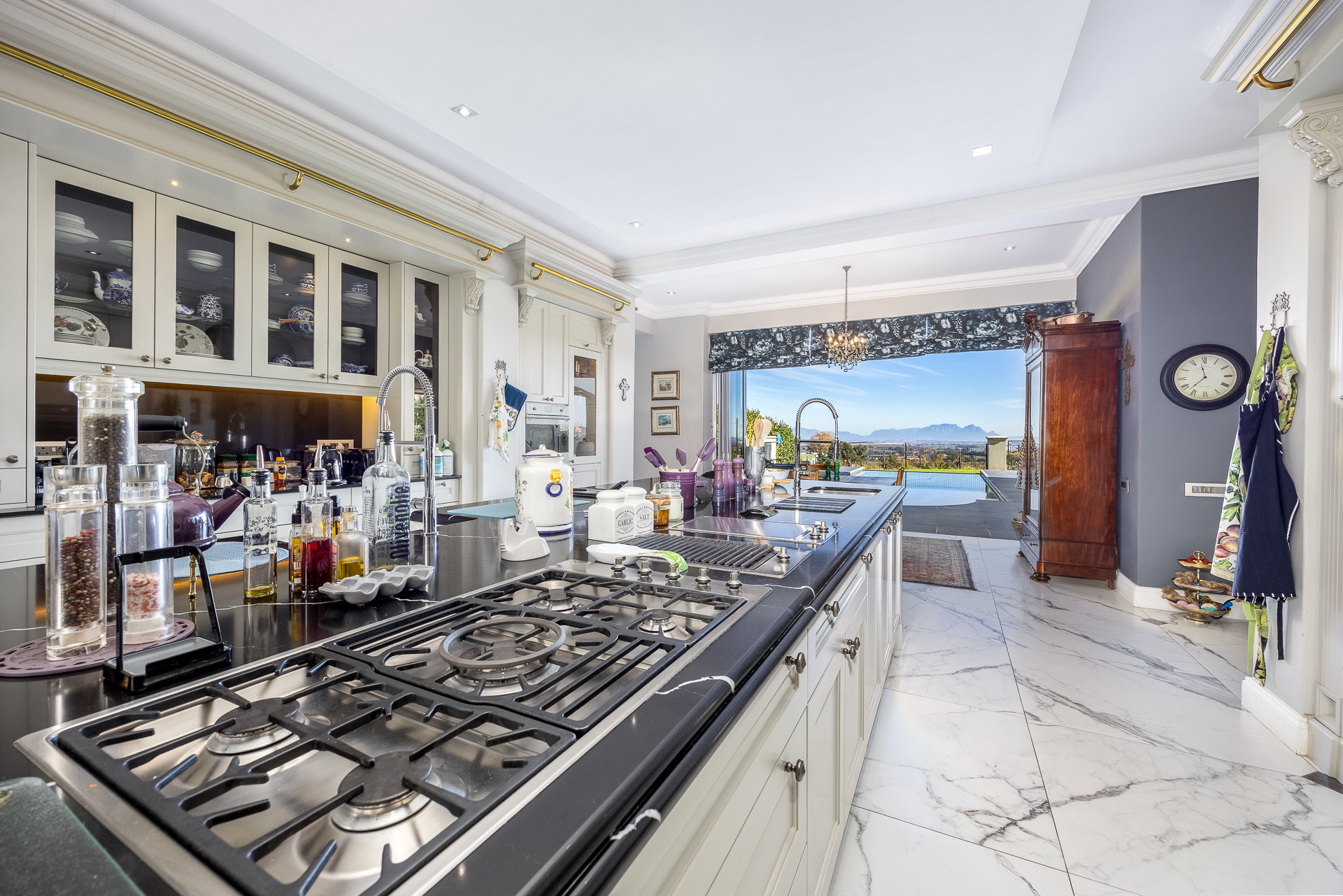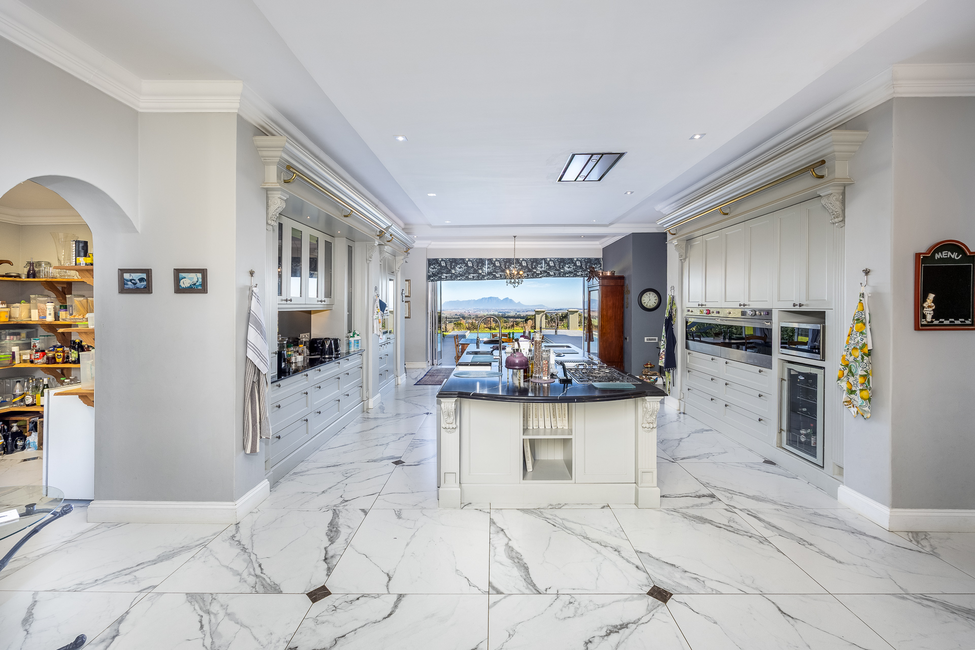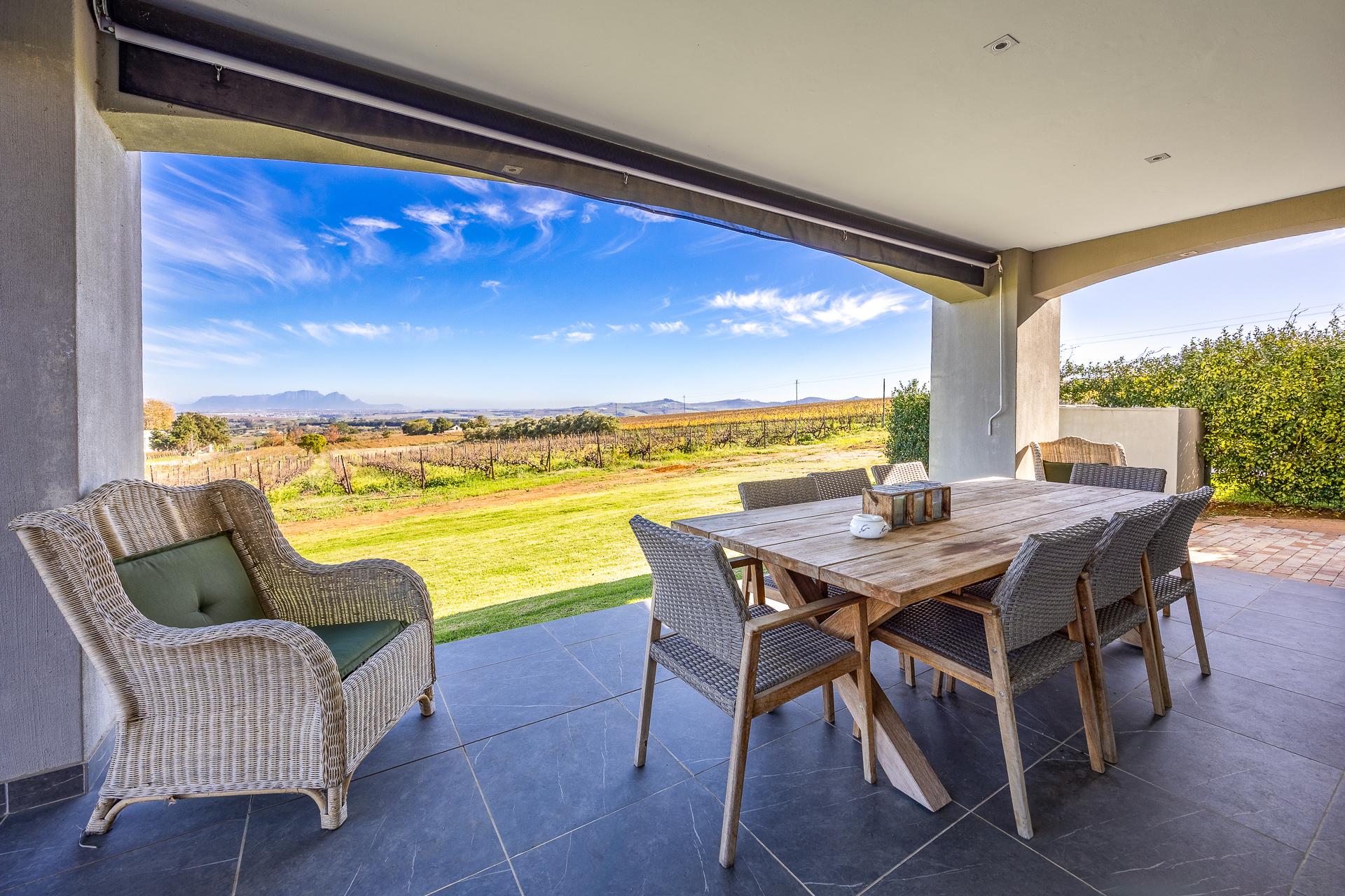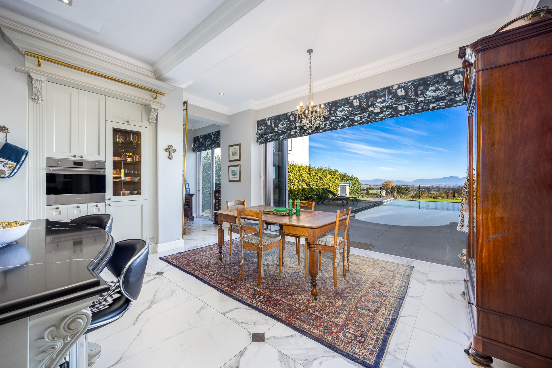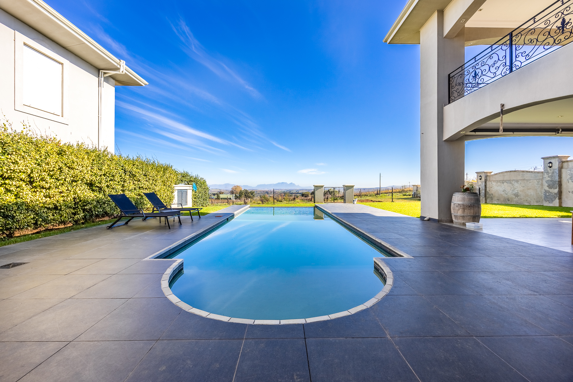 Set on 1,3755 ha, this property offers an ideal setting to enjoy outdoor living, featuring spacious terraces, a barbecue entertainment area, and a Solar-heated, rim-flow pool against the backdrop views of Table Mountain and vineyards.