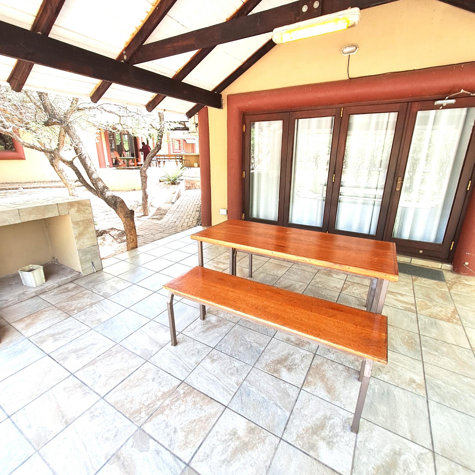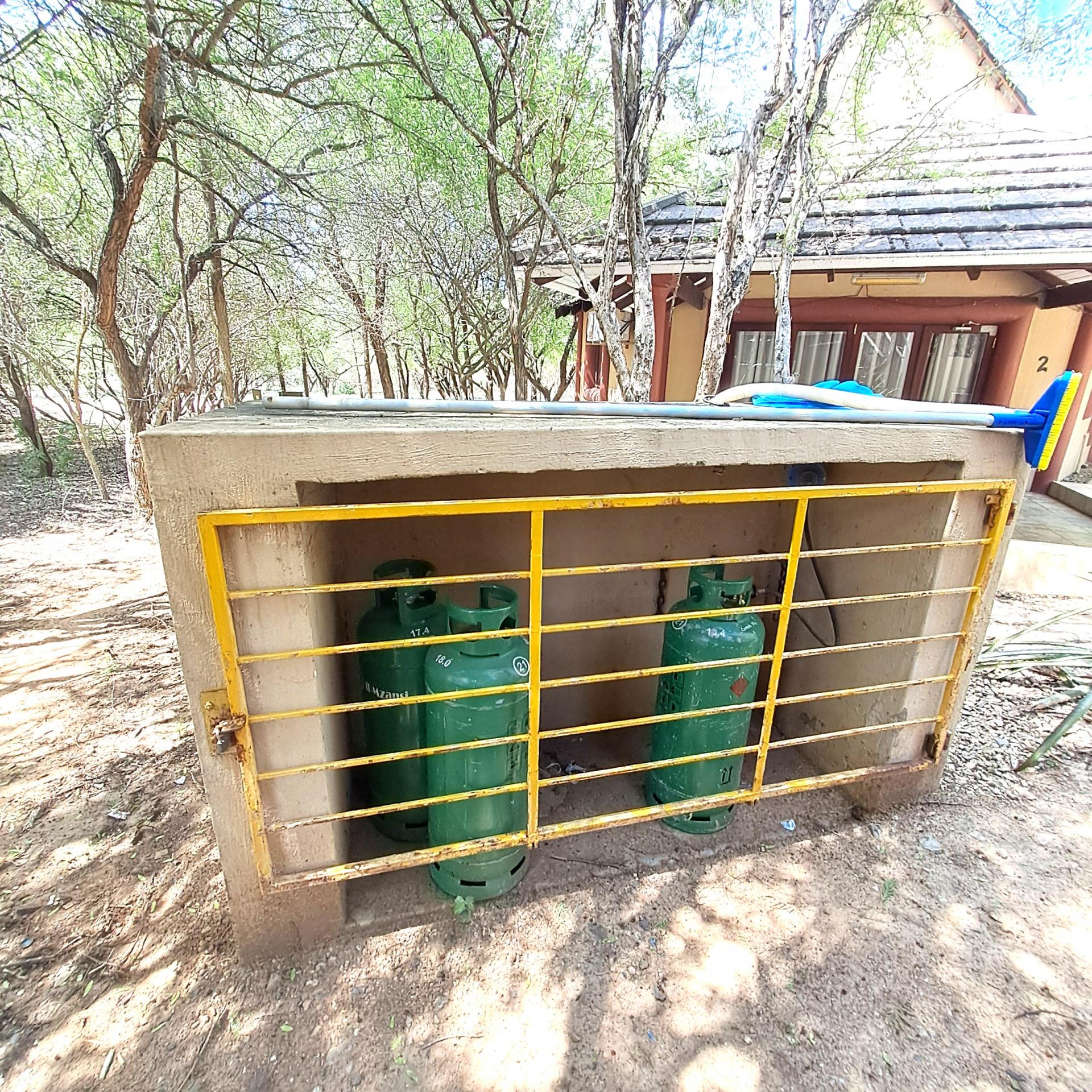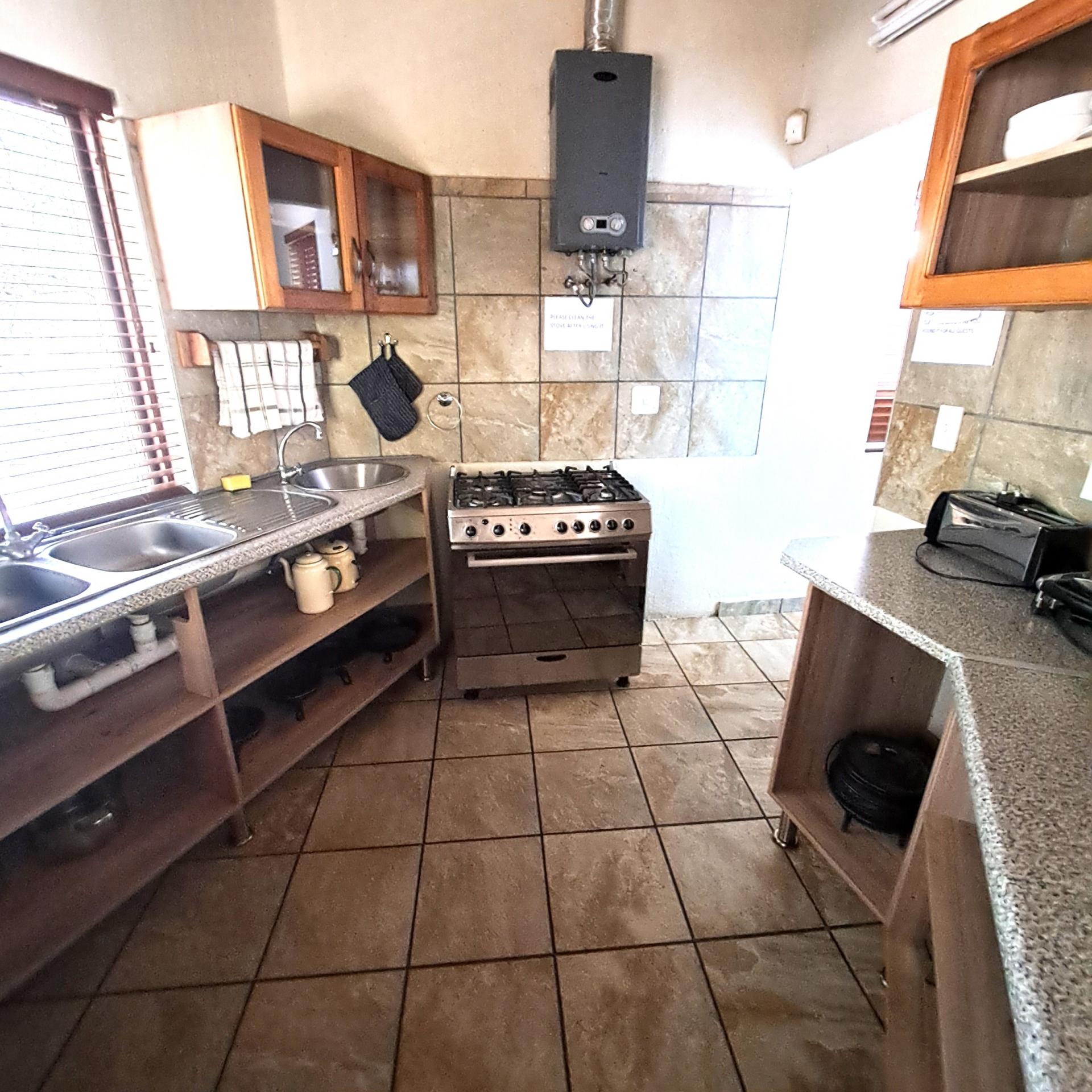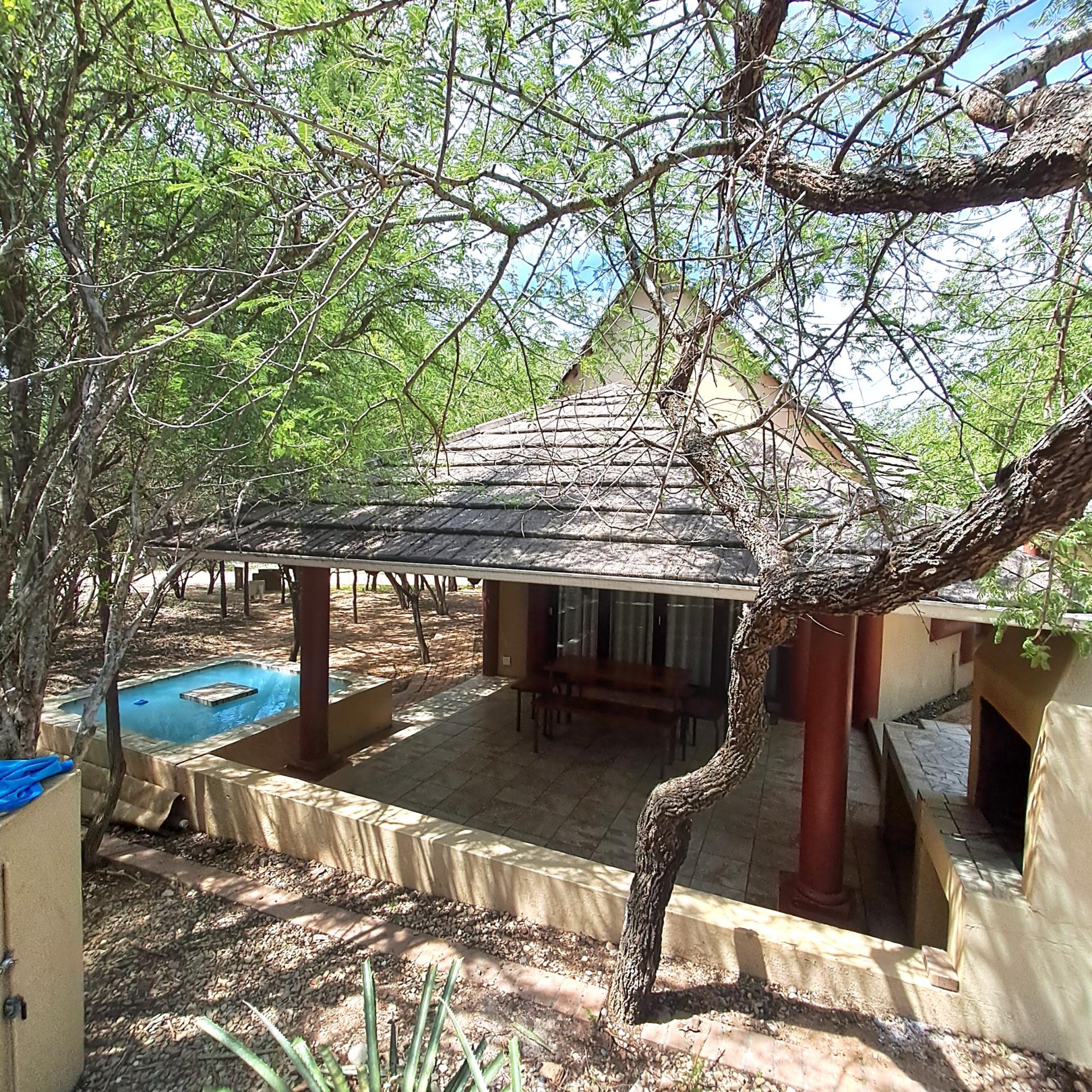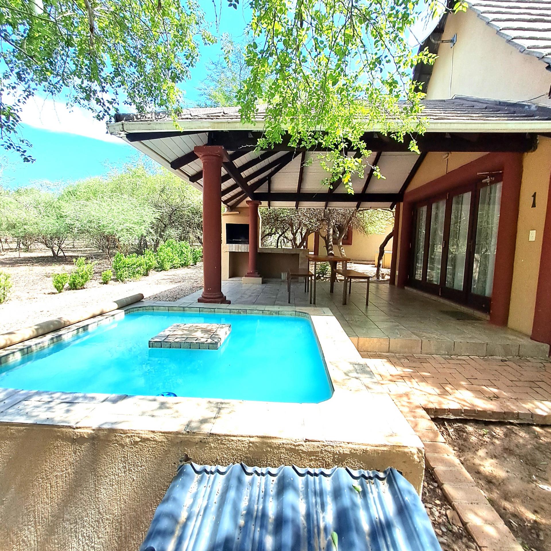 Lock stock and barrel, these 4 separate units are fully equipped, very neat, and a delight to the eye in Marloth Park. They can immediately be operated as a business. The 5th unit is a shared kitchen. Bookings are already confirmed untill October 2025 and will be included for the buyer. In total there are 20 beds, each unit has its own small cooling pool, a braai on the patio, and a small kitchenette with the essentials, as there is a large shared kitchen with excellent facilities, a dining area, and a covered patio and a stove for guests convenience to prepare delicious meals before eating in their own units. There is a large swimming pool and a braai for all guests to use, and many wild animals constantly pass through the area which can be viewed.from your patio. All the units have two air conditioners and lovely bathrooms each with showers. All outdoor areas have pathways for walking, each with its own splash pool and a braai a separate storage room for bedding, and a place to store gas bottles. The property includes a 5000-liter water tank, a borehole and outdoor lights that illuminate the entire area. The electricity supply is excellent, making this a true gem of a place in the bush. The kitchenetts consist of a toaster, kettle, microwave