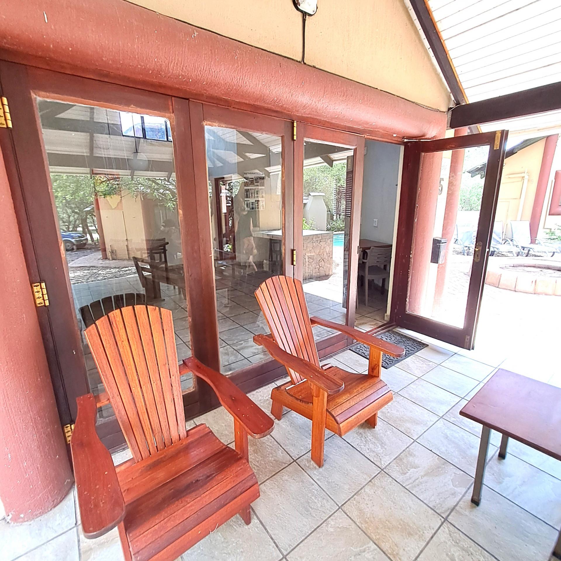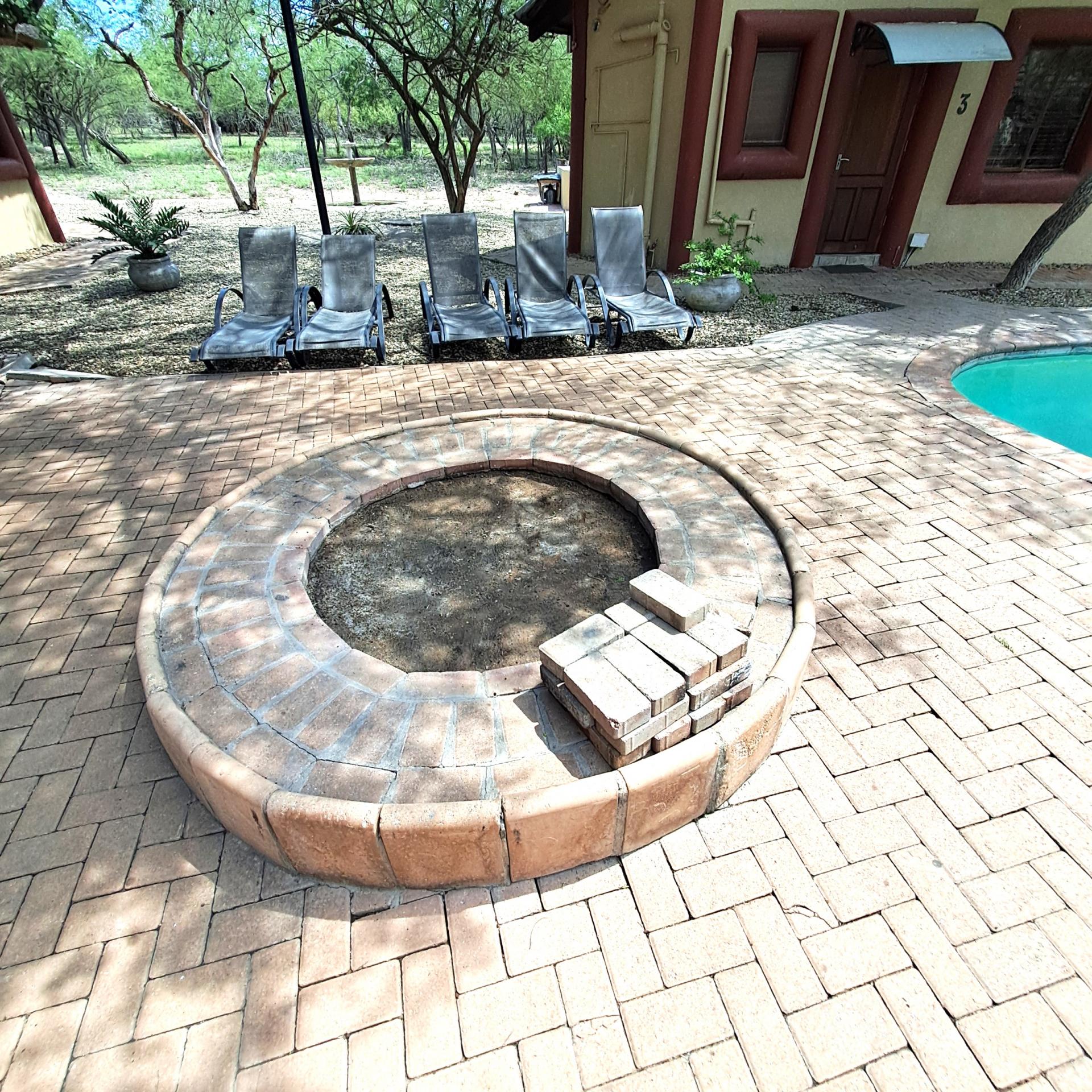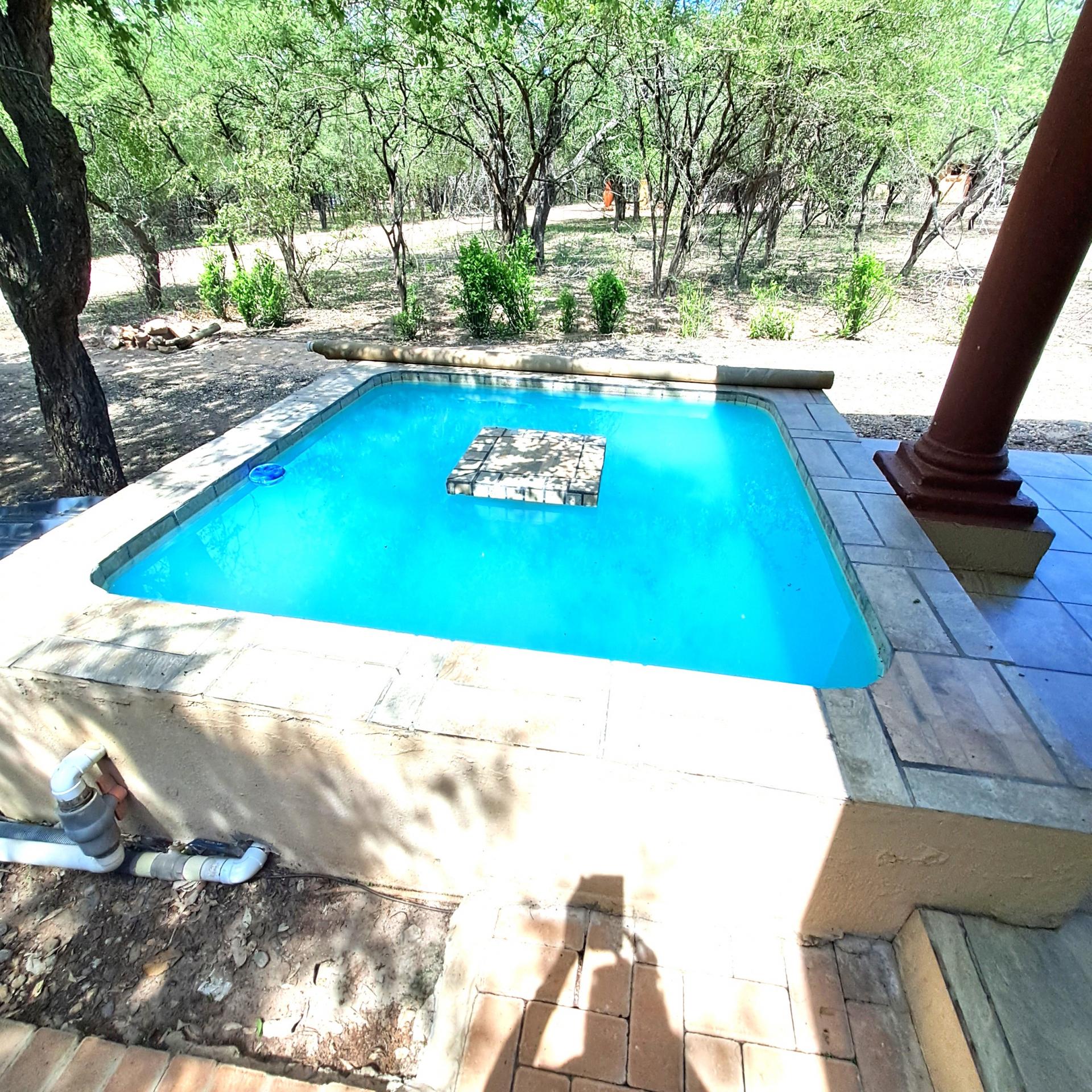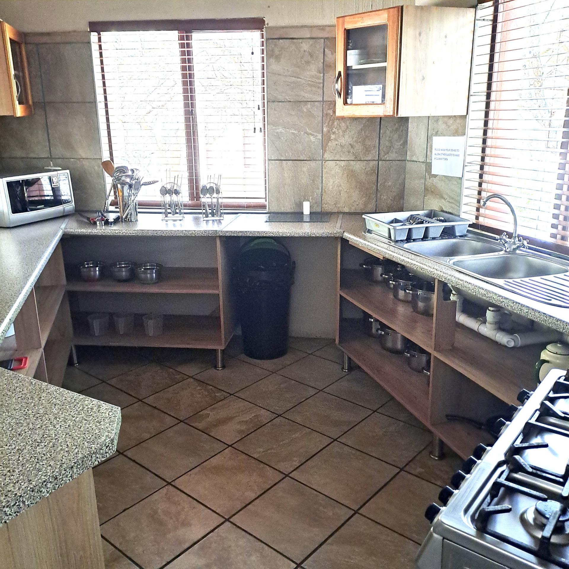 Lock stock and barrel, these 4 separate units are fully equipped, very neat, and a delight to the eye in Marloth Park. They can immediately be operated as a business. The 5th unit is a shared kitchen. Bookings are already confirmed untill October 2025 and will be included for the buyer. In total there are 20 beds, each unit has its own small cooling pool, a braai on the patio, and a small kitchenette with the essentials, as there is a large shared kitchen with excellent facilities, a dining area, and a covered patio and a stove for guests convenience to prepare delicious meals before eating in their own units. There is a large swimming pool and a braai for all guests to use, and many wild animals constantly pass through the area which can be viewed.from your patio. All the units have two air conditioners and lovely bathrooms each with showers. All outdoor areas have pathways for walking, each with its own splash pool and a braai a separate storage room for bedding, and a place to store gas bottles. The property includes a 5000-liter water tank, a borehole and outdoor lights that illuminate the entire area. The electricity supply is excellent, making this a true gem of a place in the bush. The kitchenetts consist of a toaster, kettle, microwave