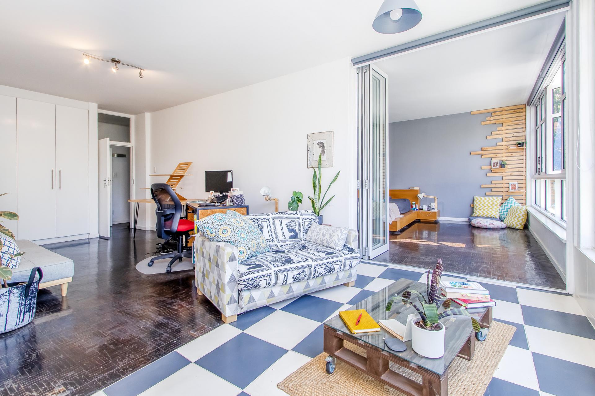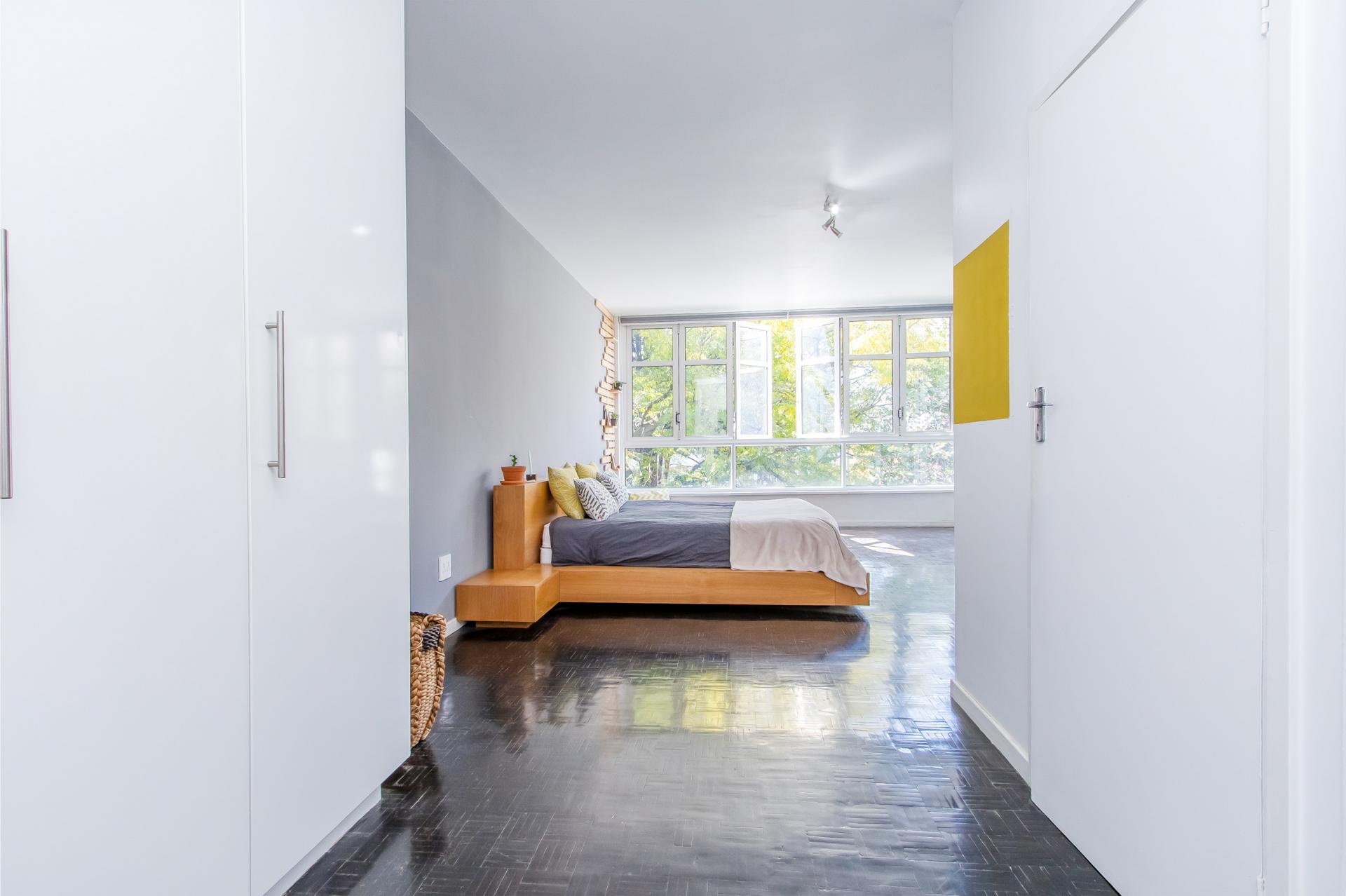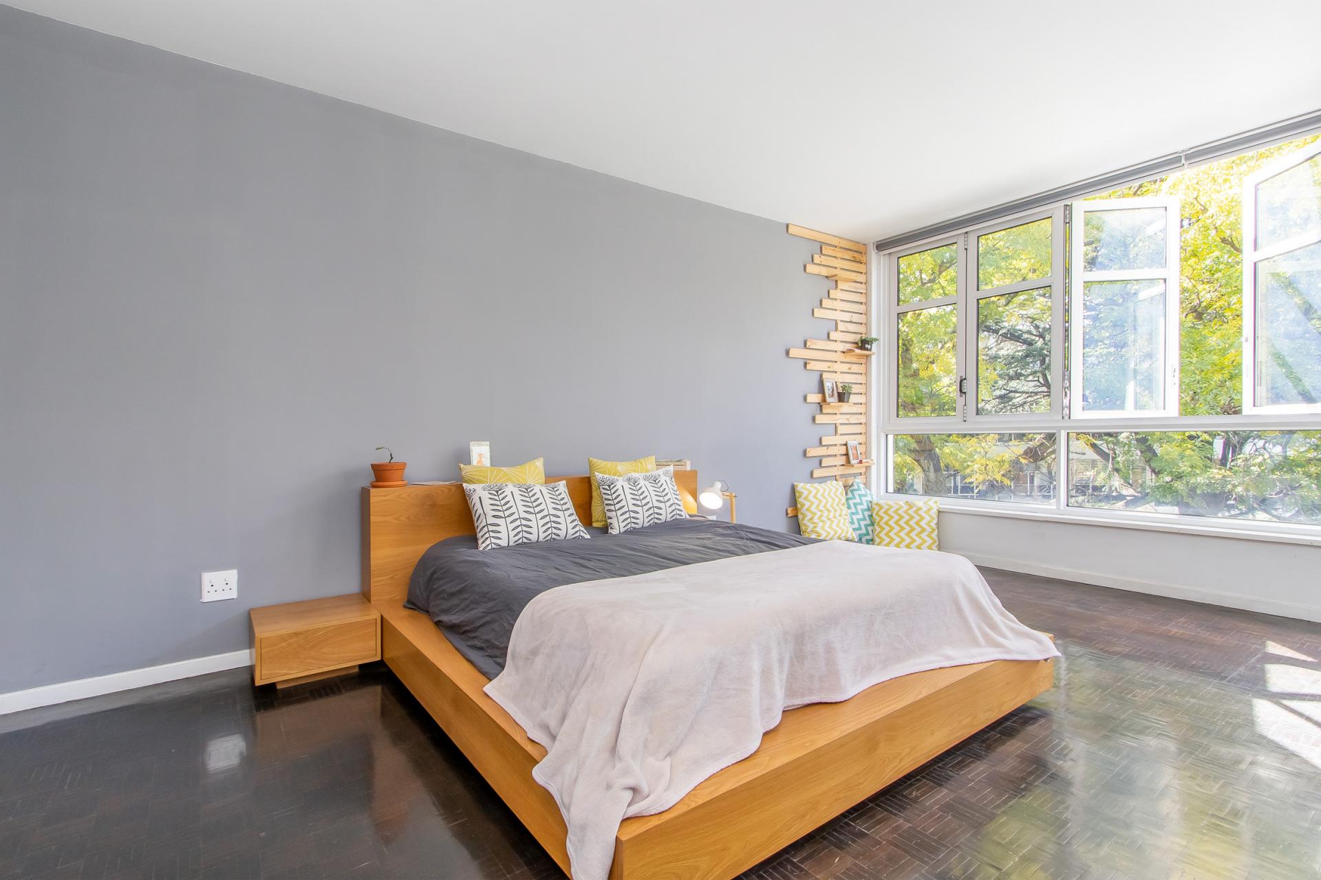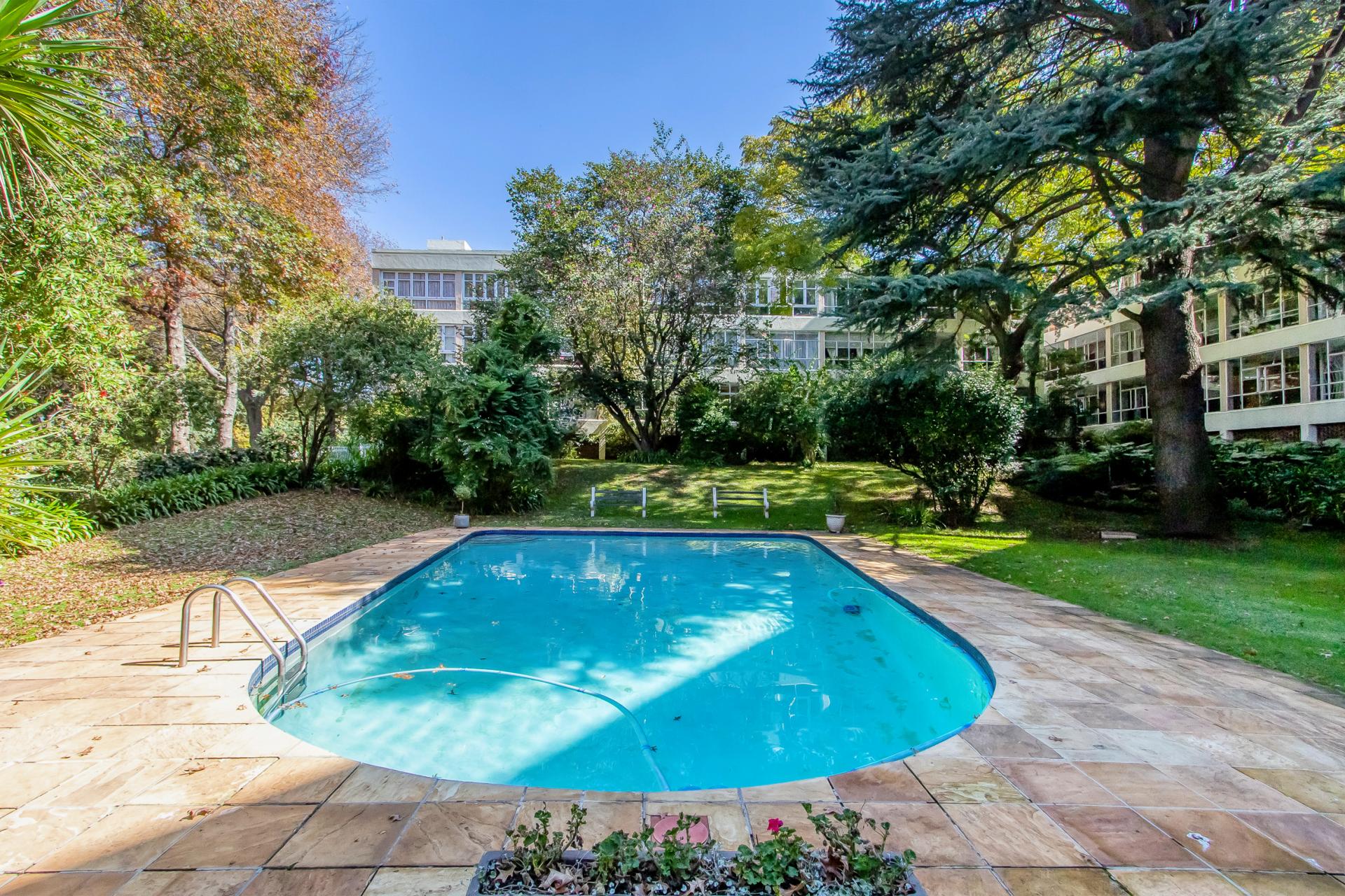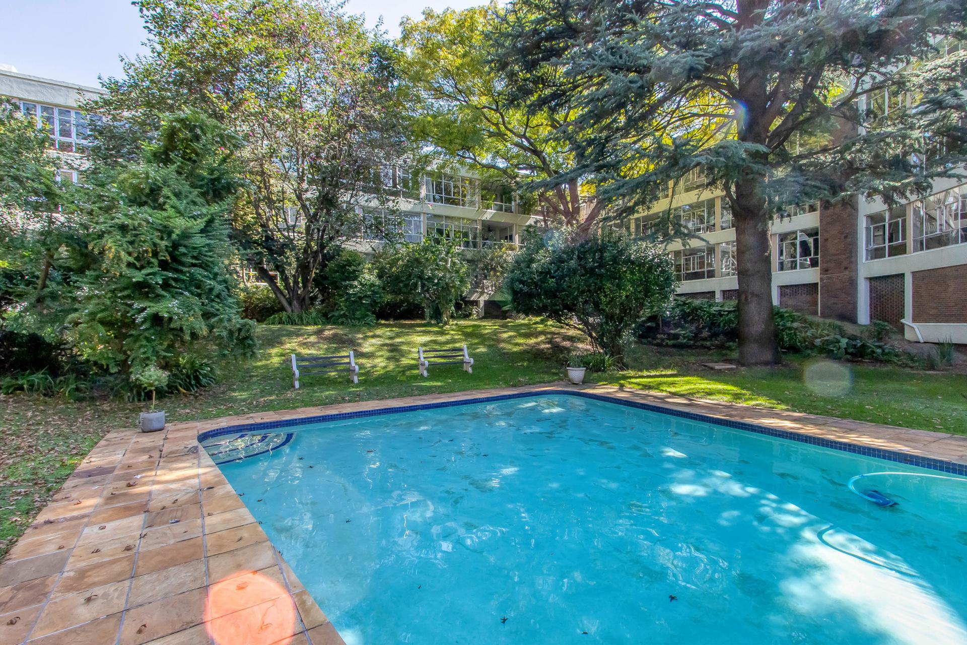 Positioned to overlook the old-school swimming pool in one of the beautiful gardens, the apartment provides a tranquil retreat that feels like a private nest high among the trees. This elevated perspective ensures both privacy and a sense of escape, making it the perfect sanctuary after a demanding day in the bustling city.