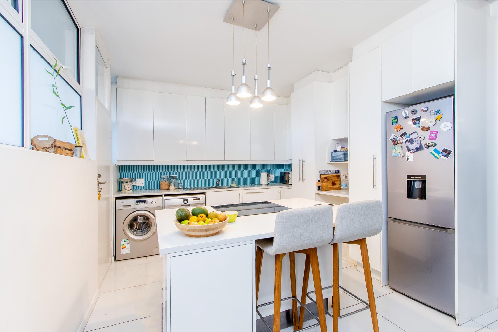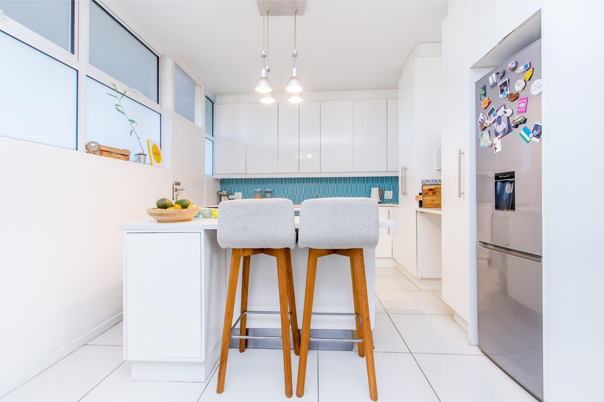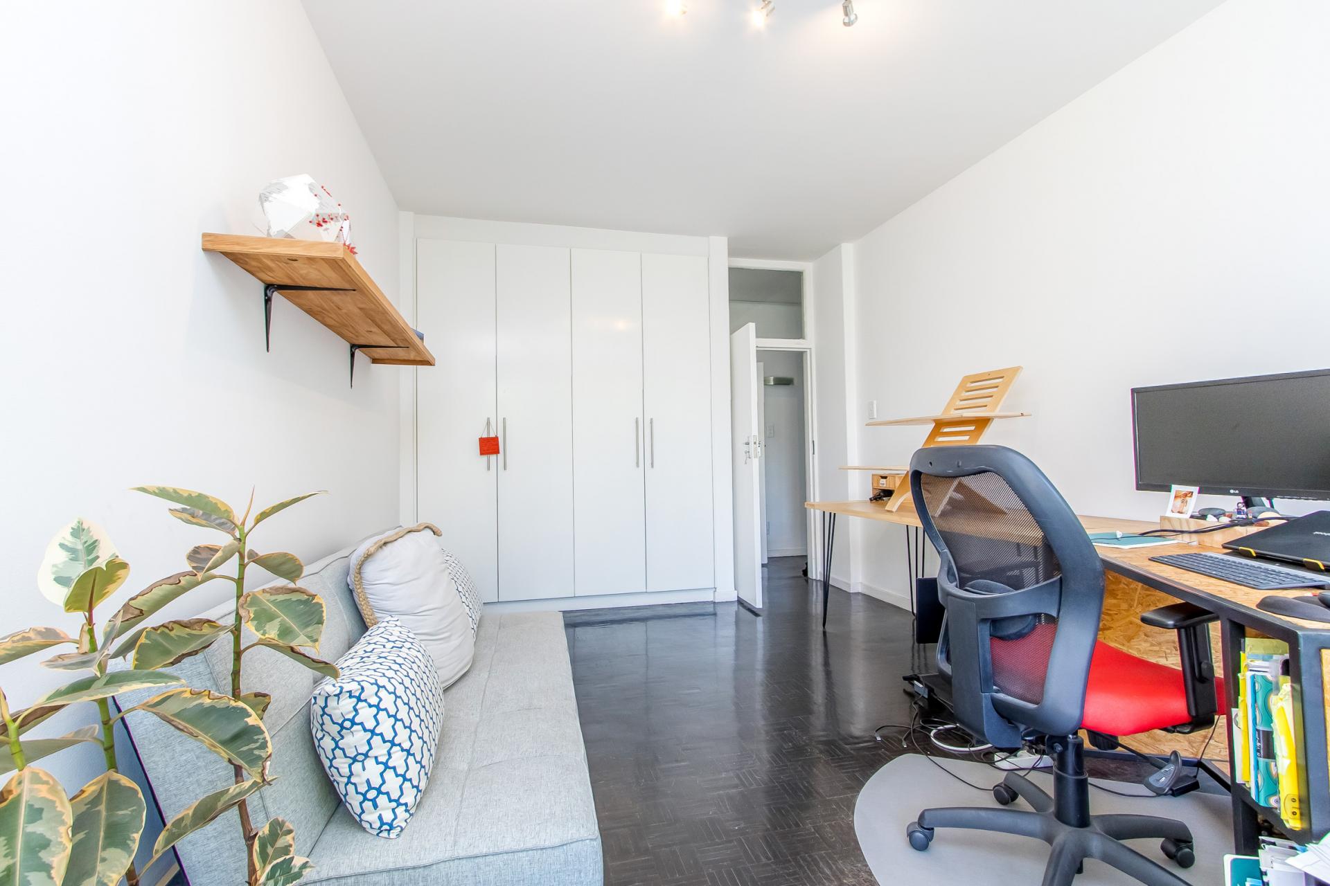 The apartment boasts a classically large layout, characterised by generous volume and an airy flow. Designed to cater to the needs of a couple or single professionals who work from home, the space adapts effortlessly to modern lifestyles. The second bedroom, currently utilised as a study, highlights the versatility of the property. The open-plan layout, bathed in natural light, creates a contemporary ambience that is both inviting and functional.