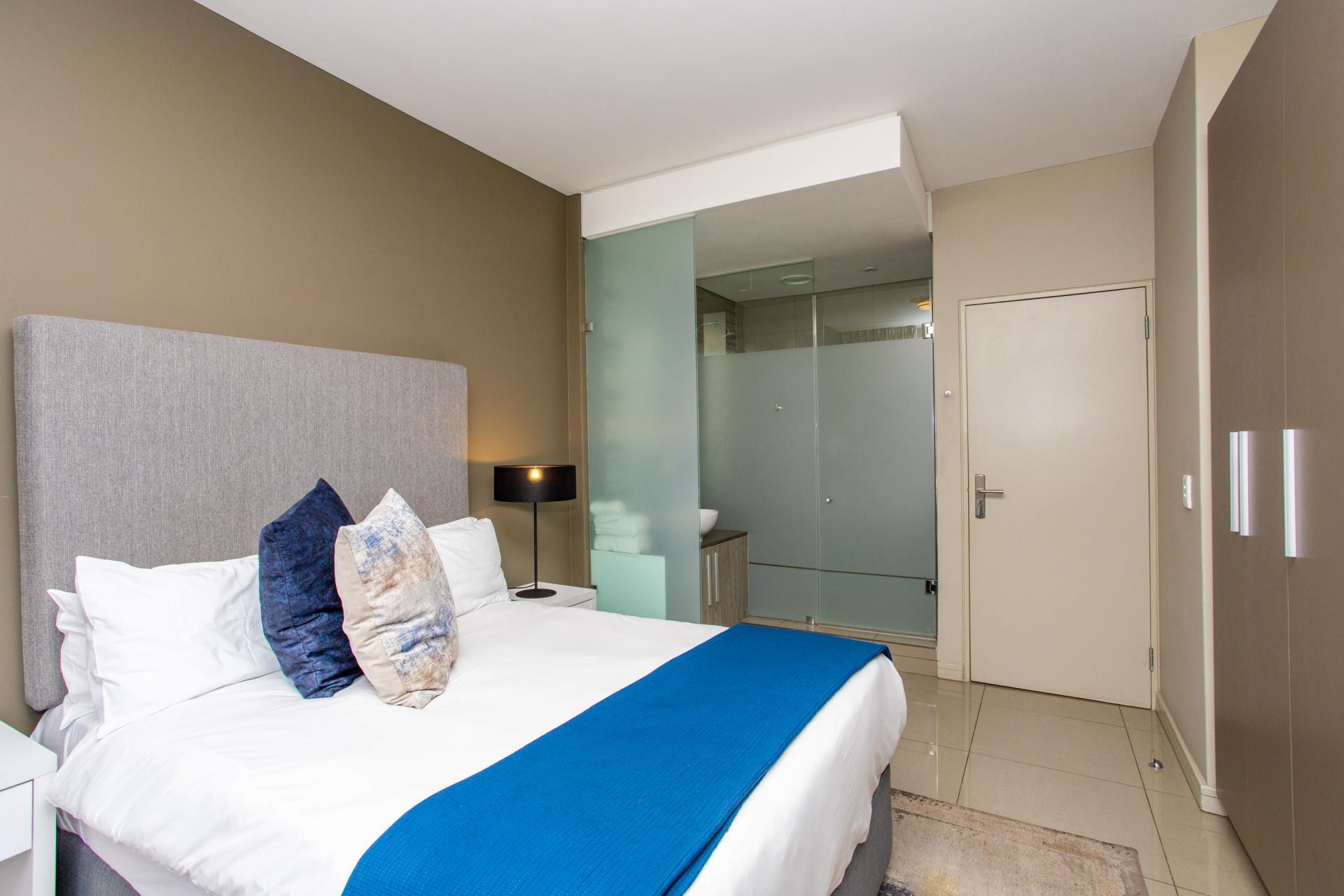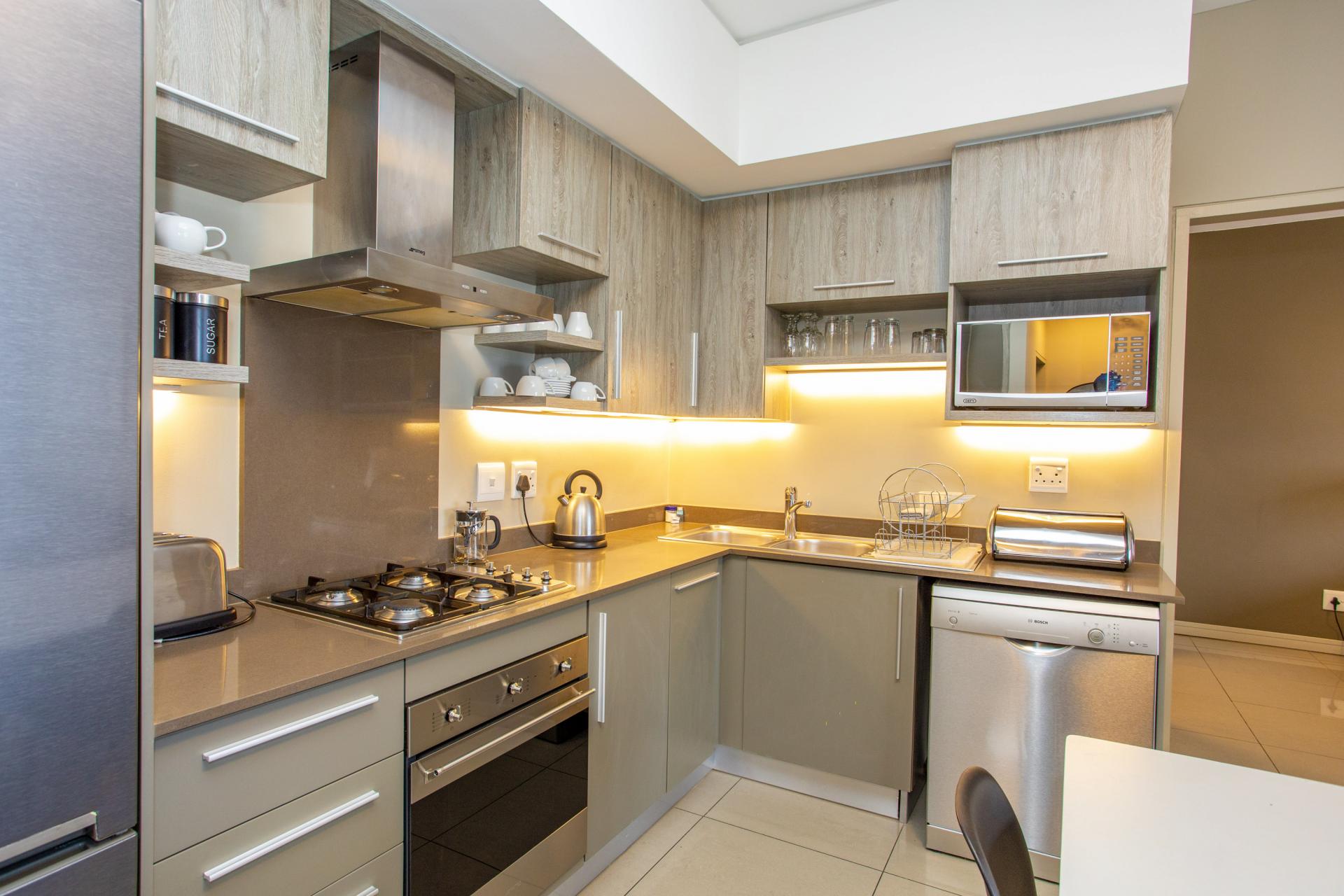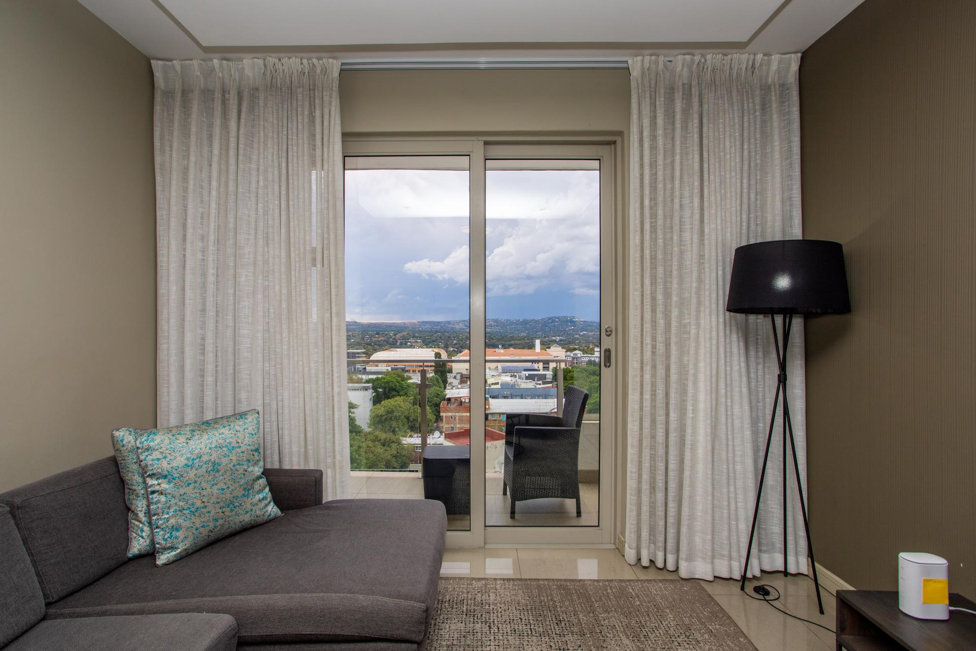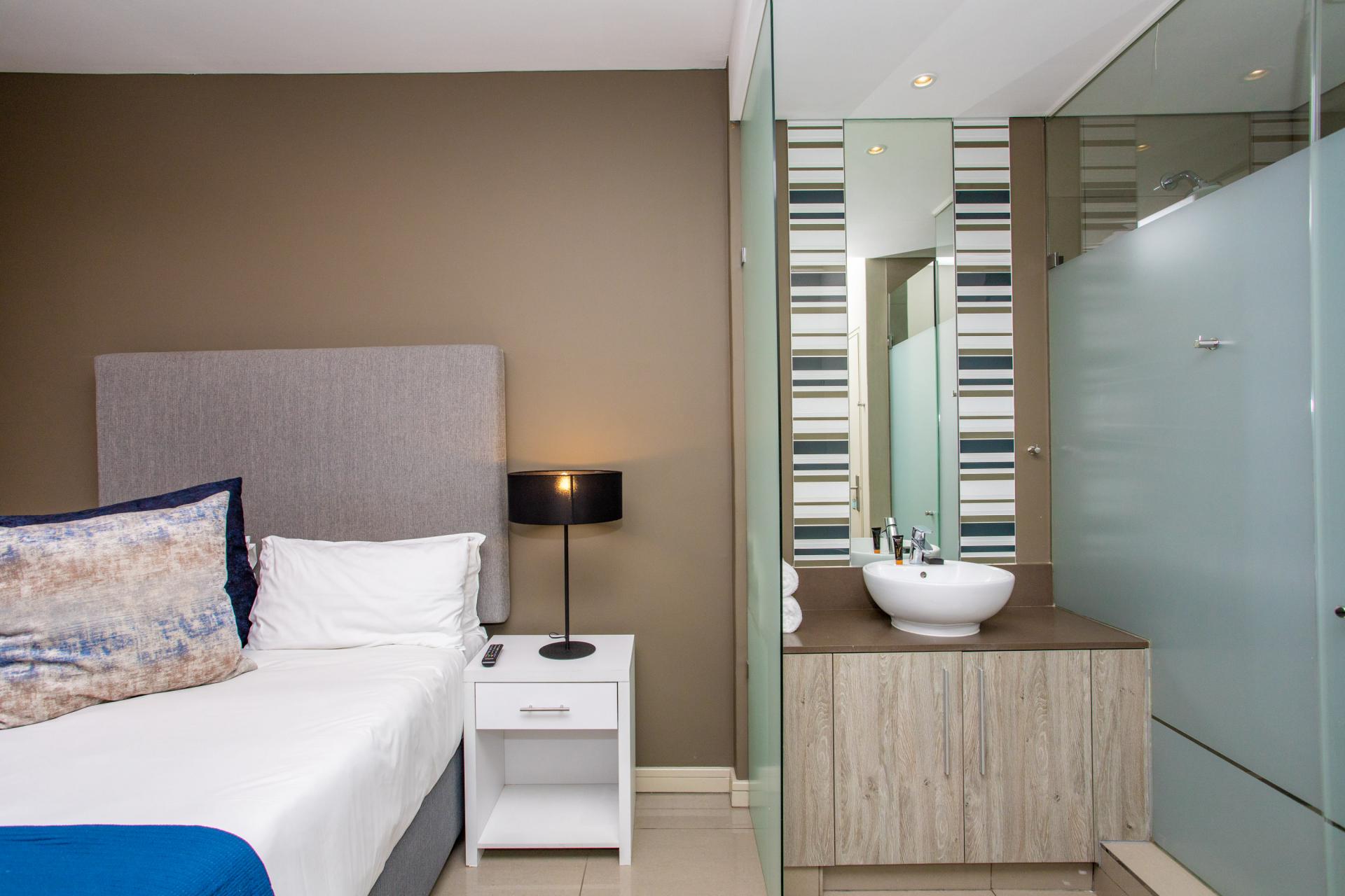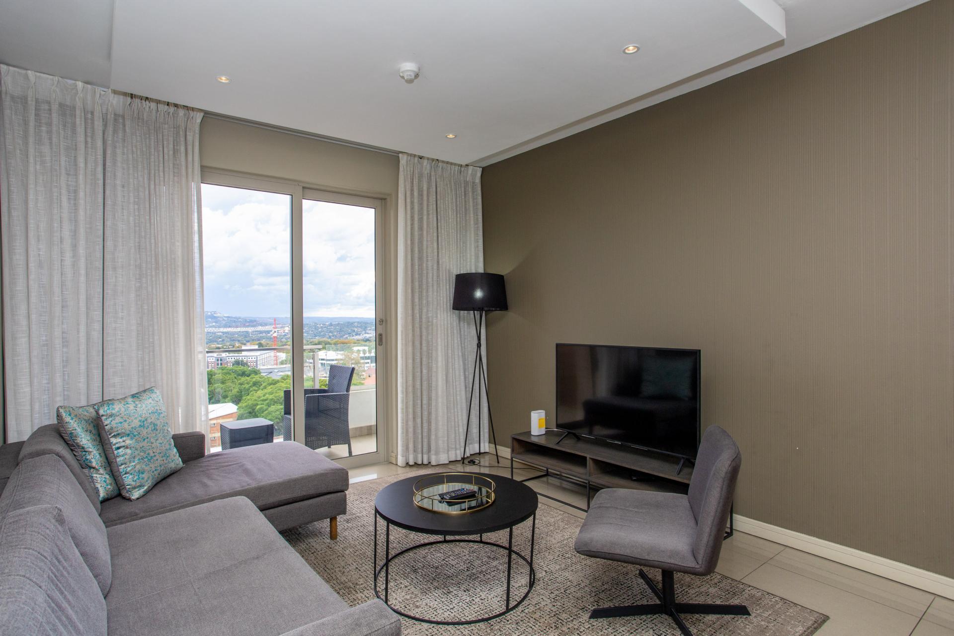 This fully furnished, extremely stylish, two bedroom two bathroom apartment offers exceptional views and a good size balcony. The apartment has been designed with top-of-the-range finishes and appliances throughout, including beautiful flooring, tiling and wall treatments. The kitchen optimises space and offers the benefit of contemporary lighting, a gas stove as well as allocation for two water appliances. The apartment has prepaid electricity, and is Fibre and DSTV ready. There are 2 basement parking bays included. The Tyrwhitt has been developed around luxurious communal areas ,a Restaurant on the ground floor of the building, a communal green area for all residents, 24 hr security/reception with patrols, as well as a backup generator which powers the elevators and passage lights throughout the building.