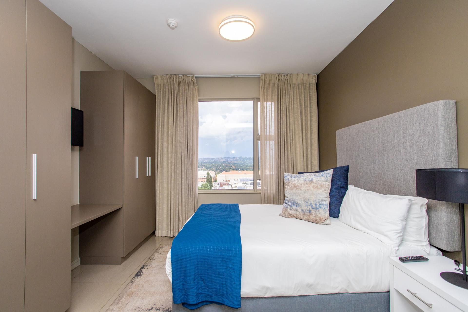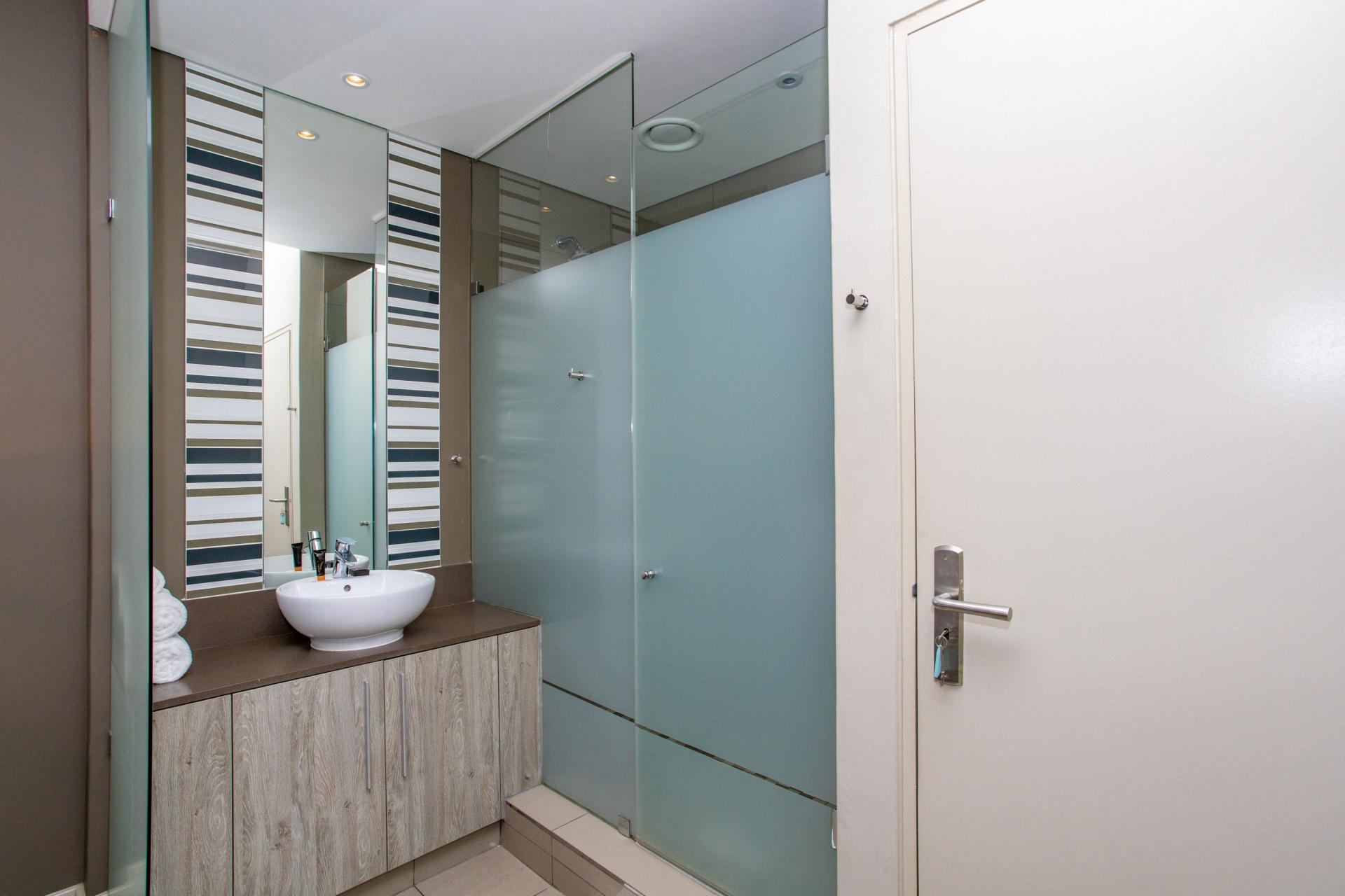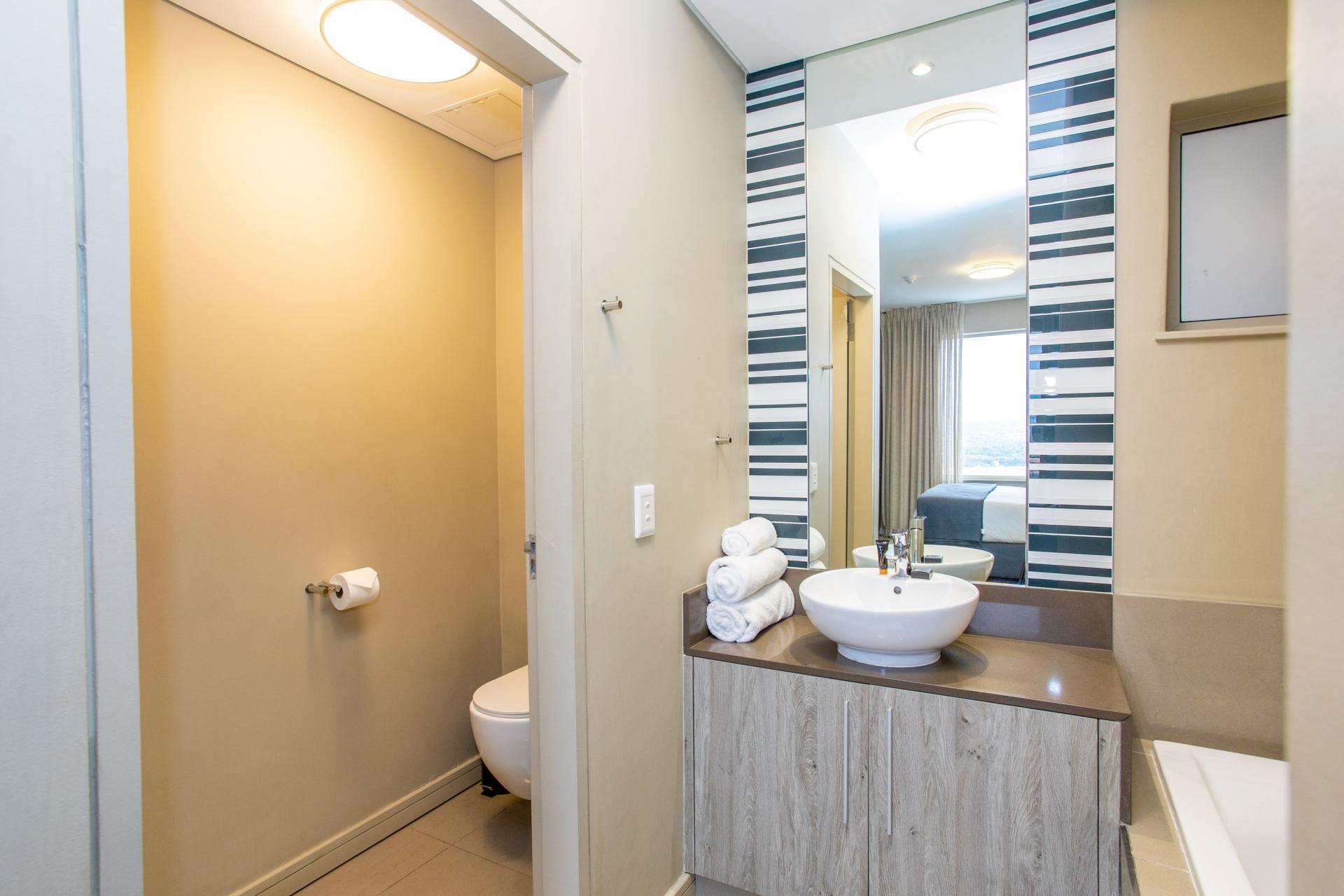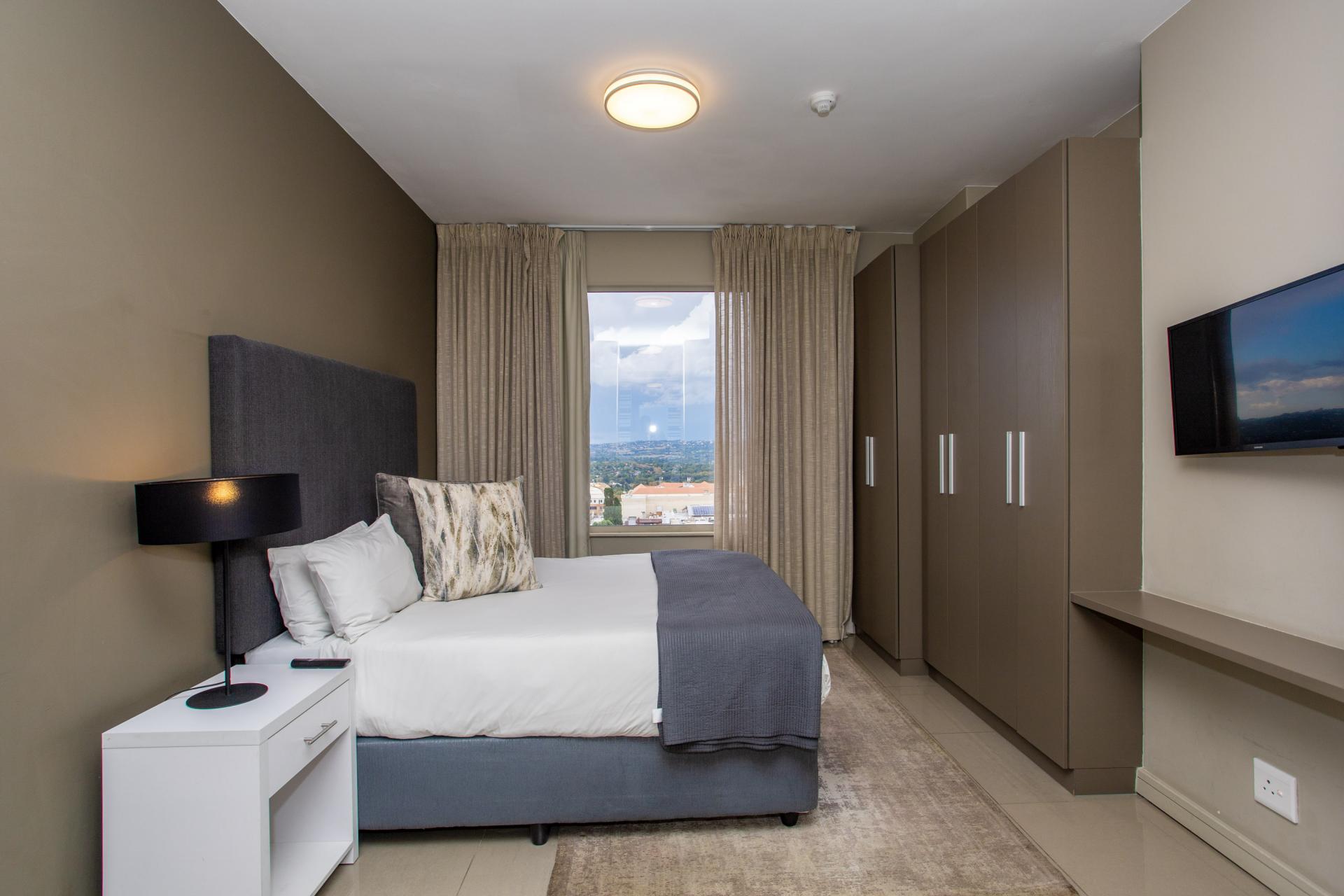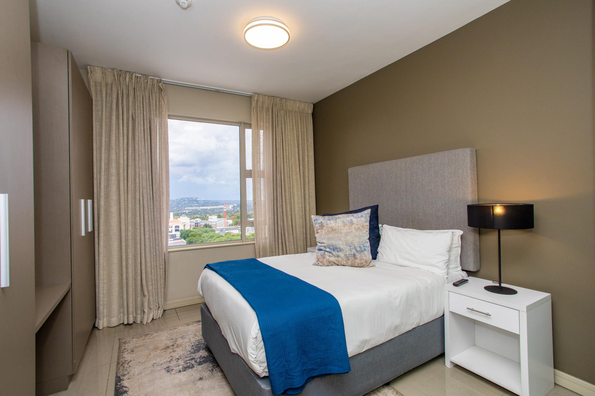 This fully furnished, extremely stylish, two bedroom two bathroom apartment offers exceptional views and a good size balcony. The apartment has been designed with top-of-the-range finishes and appliances throughout, including beautiful flooring, tiling and wall treatments. The kitchen optimises space and offers the benefit of contemporary lighting, a gas stove as well as allocation for two water appliances. The apartment has prepaid electricity, and is Fibre and DSTV ready. There are 2 basement parking bays included. The Tyrwhitt has been developed around luxurious communal areas ,a Restaurant on the ground floor of the building, a communal green area for all residents, 24 hr security/reception with patrols, as well as a backup generator which powers the elevators and passage lights throughout the building.