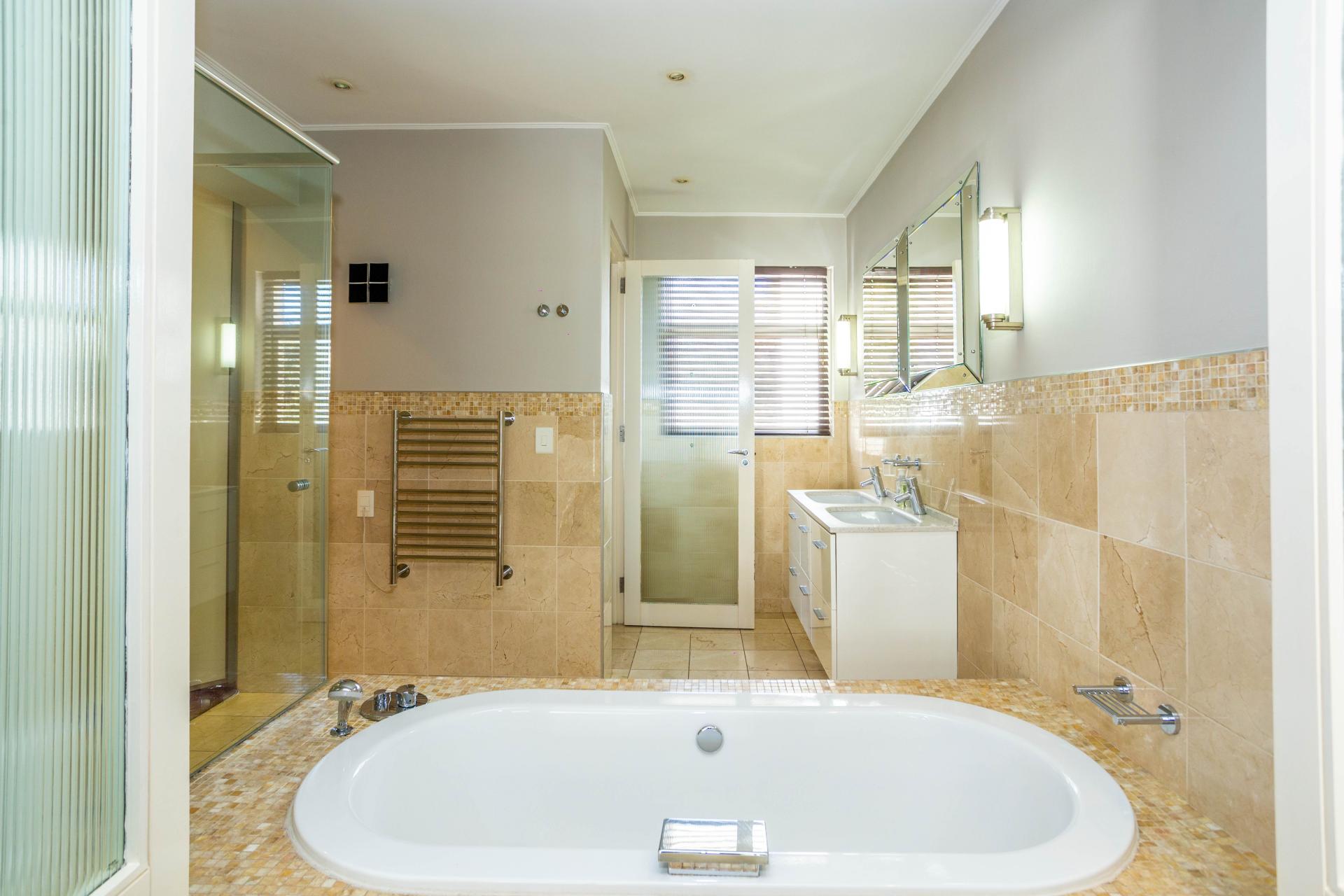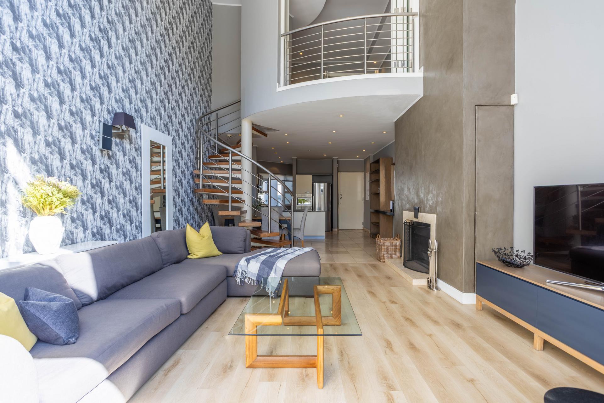This beautifully designed 2-bedroom, 2-bathroom residence is a rare find, offering expansive triple-volume living filled with natural light. The open-plan layout is enhanced by a striking wood-burning fireplace and flows seamlessly onto an entertainer’s patio with a Jacuzzi - the perfect setting for relaxed evenings or stylish gatherings. There is also a private back garden off the kitchen area, ideal for outdoor dining or family time. Situated in an exclusive, well-managed complex, the property combines modern convenience with thoughtful touches - including a generator, back-up solar power, and back-up water, as well as pet-friendly living. Residents also enjoy access to a pool, gym, and communal gardens, adding to the lifestyle appeal. With 2 secure parking bays, 1 lock-up garage, a versatile storeroom and staff accommodation, this home balances sophistication with functionality.