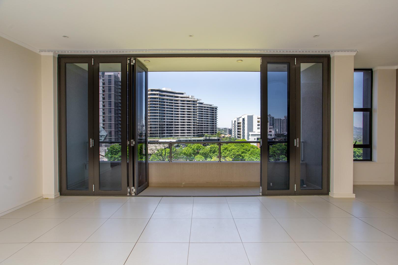 Step from the living room onto the balcony, where panoramic vistas of Johannesburg unfold before you.