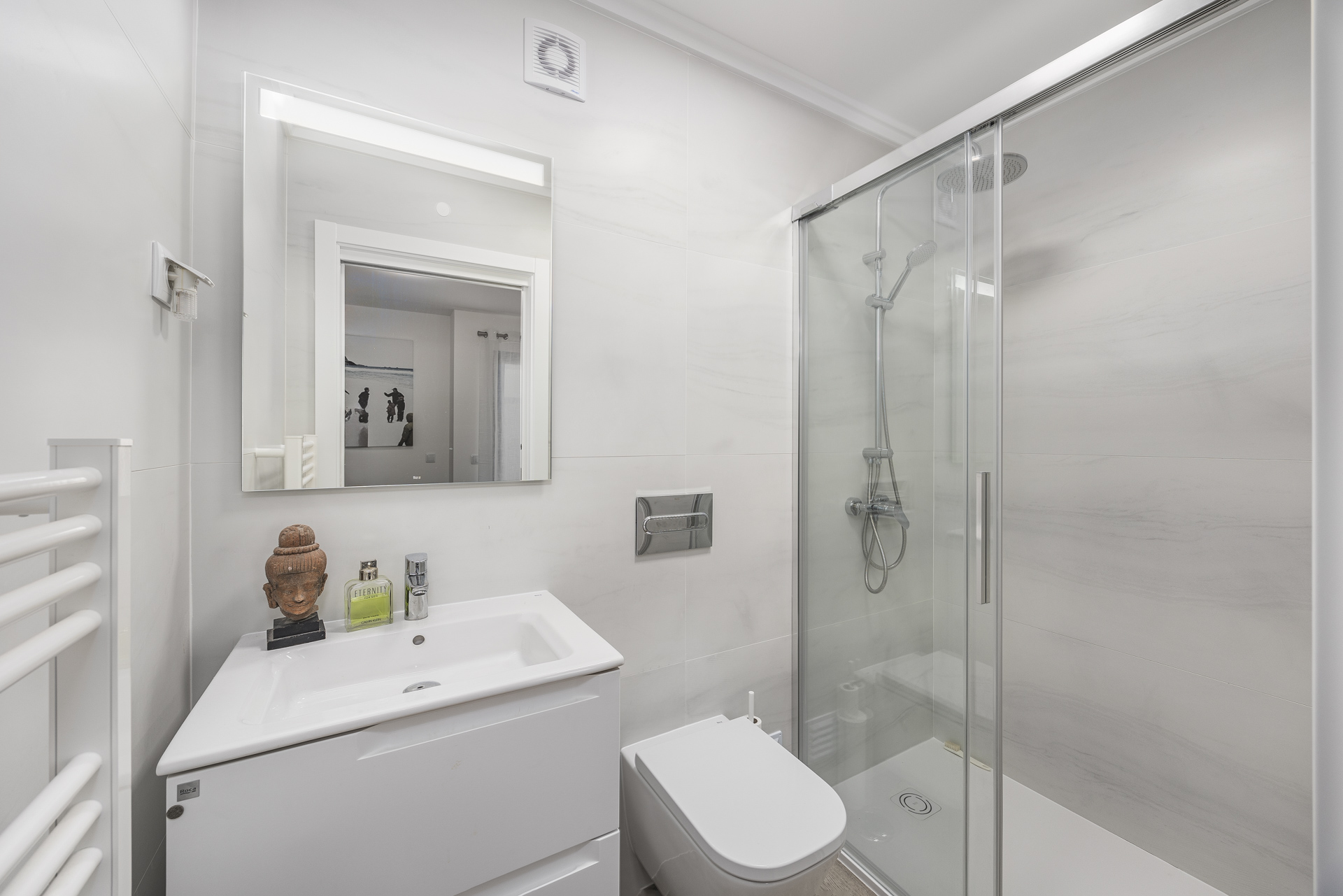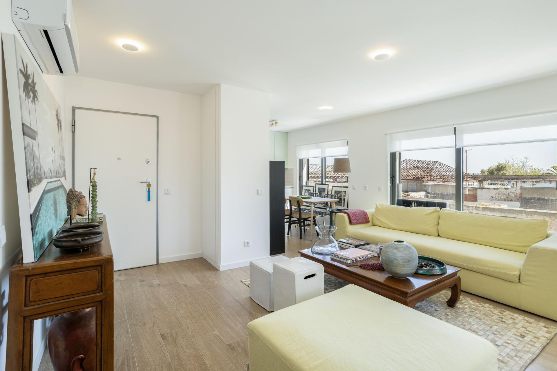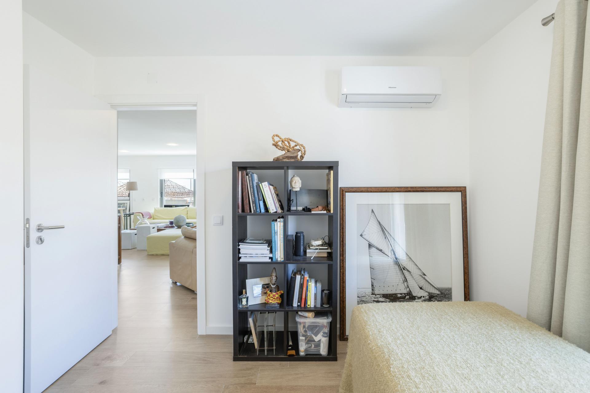 O apartamento dispõe de uma ampla sala de estar e jantar em open space, com grandes portas de correr que dão acesso a um terraço coberto deslumbrante, criando uma experiência perfeita de vivência interior-exterior. A cozinha totalmente equipada inclui máquina de lavar loiça, máquina de lavar roupa, micro-ondas, frigorífico-combinado e ar condicionado Hisense em todas as divisões. Com garagem, elevador e acesso seguro ao edifício recém-construído (Certificado Energético: A), este apartamento de fácil manutenção é perfeito para quem procura conforto e praticidade.