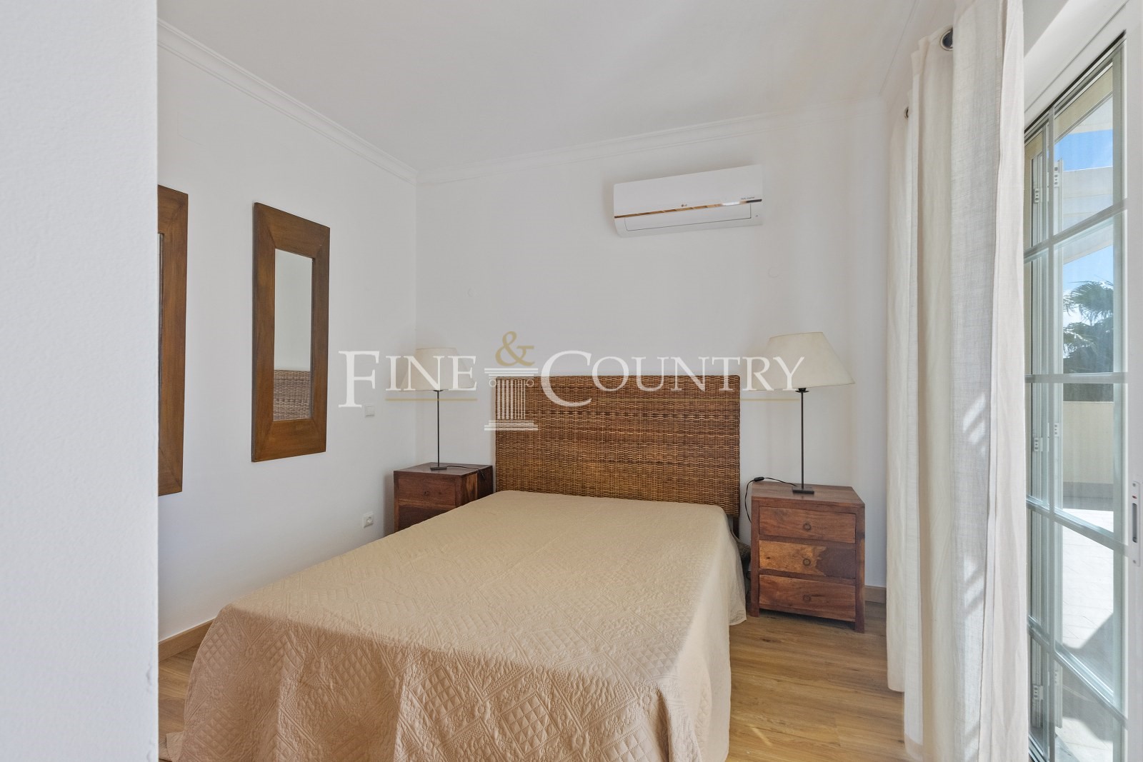 This elegant 2+1 bedroom apartment, situated on the second floor within a tranquil and exclusive condominium of just 18 units in Vilamoura, boasts a total built area of 139,40 m2 that exemplifies spacious living. Nestled in a serene setting, the condominium is a stone's throw away from the vibrant heart of the resort. Here, one can indulge in an array of amenities such as pristine beaches, diverse golf courses, a bustling marina, a tennis club, an equestrian centre, a casino, and an extensive selection of bars and restaurants. Moreover, Faro Airport is conveniently accessible within a mere 25-minute drive.