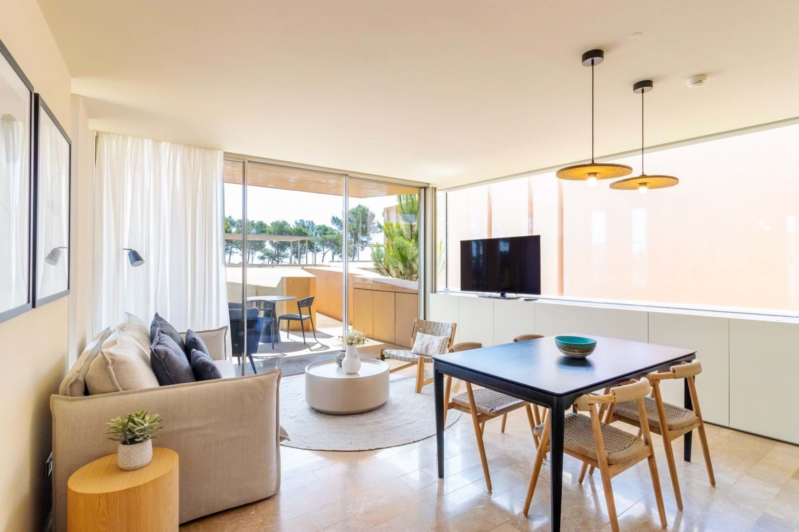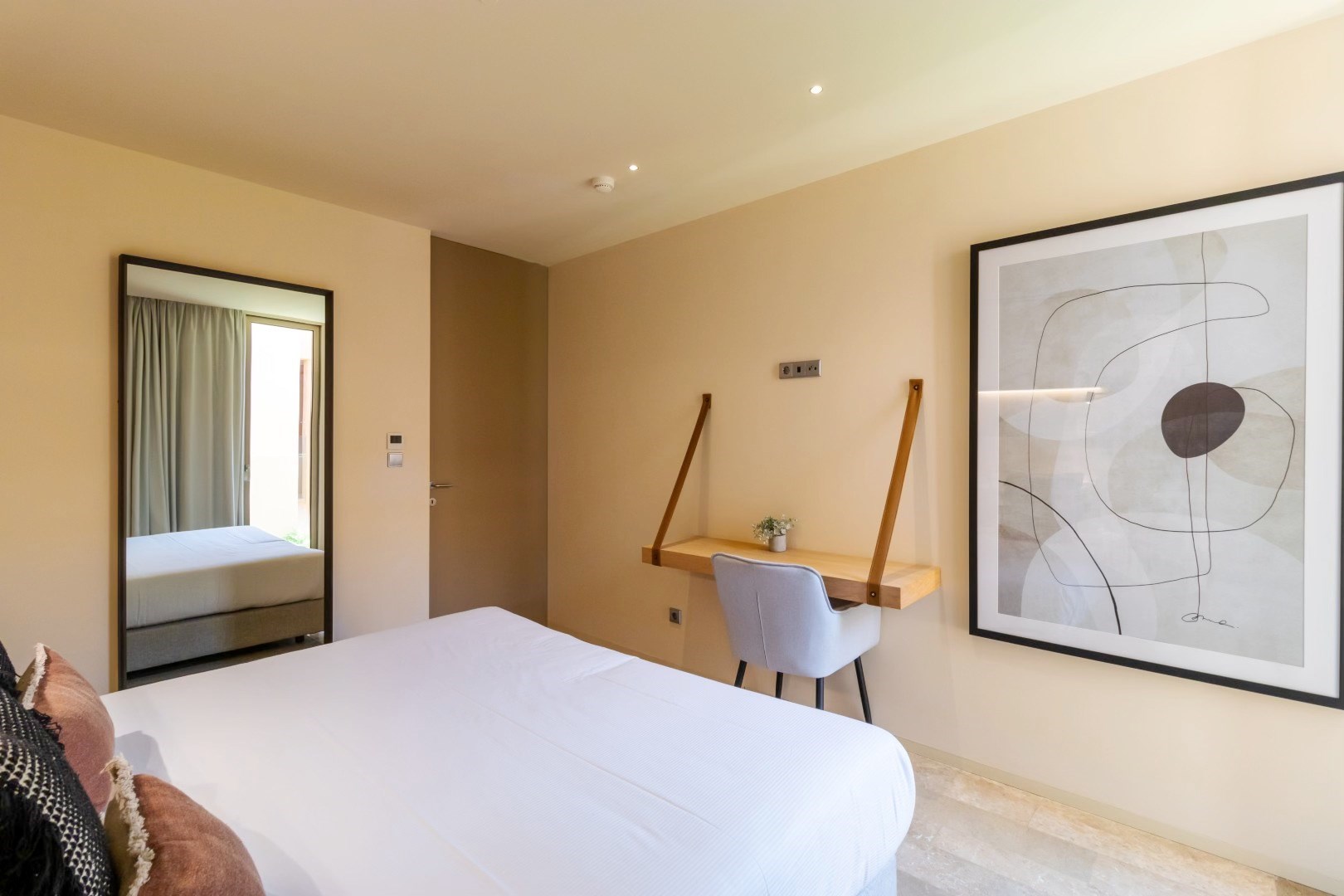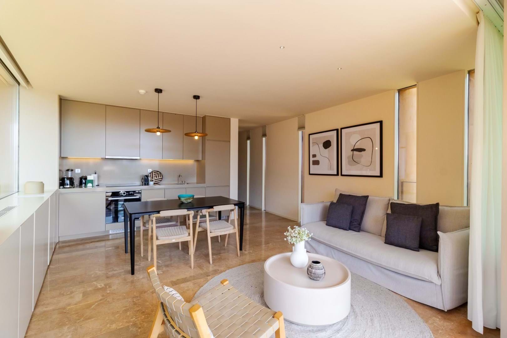 Designed with meticulous attention to detail, the apartment features high-end finishes, including elegant natural stone floors in soft shades of pink and refined décor throughout. Fully furnished, it also has built-in appliances in the kitchen, combining comfort and practicality.