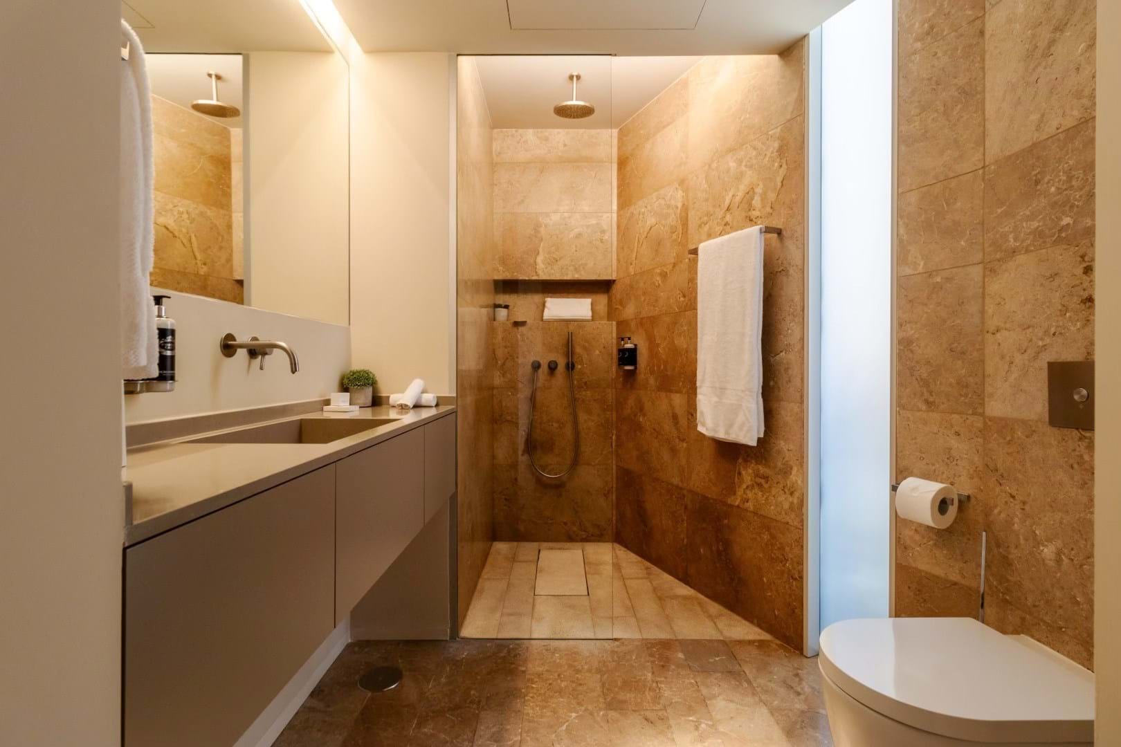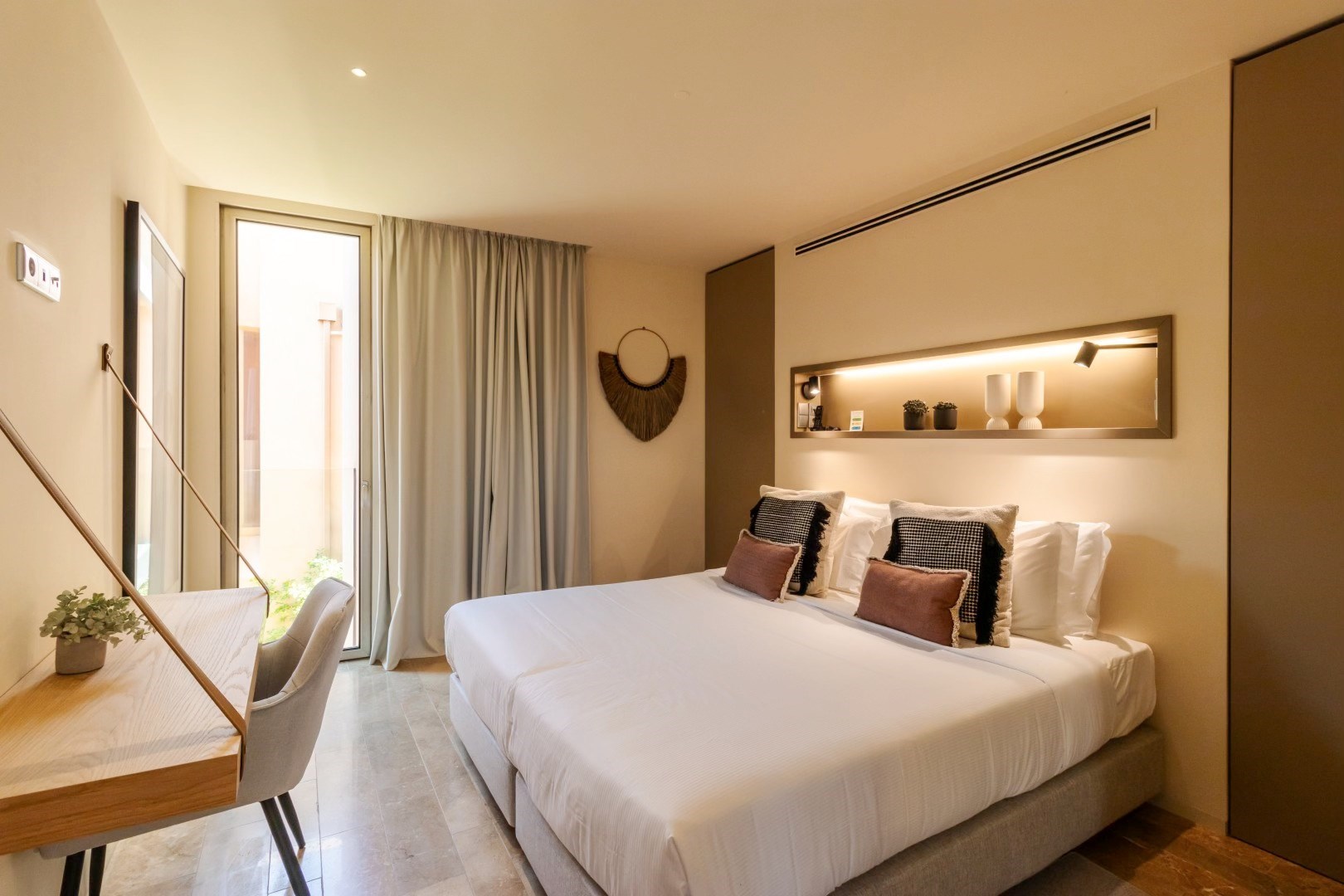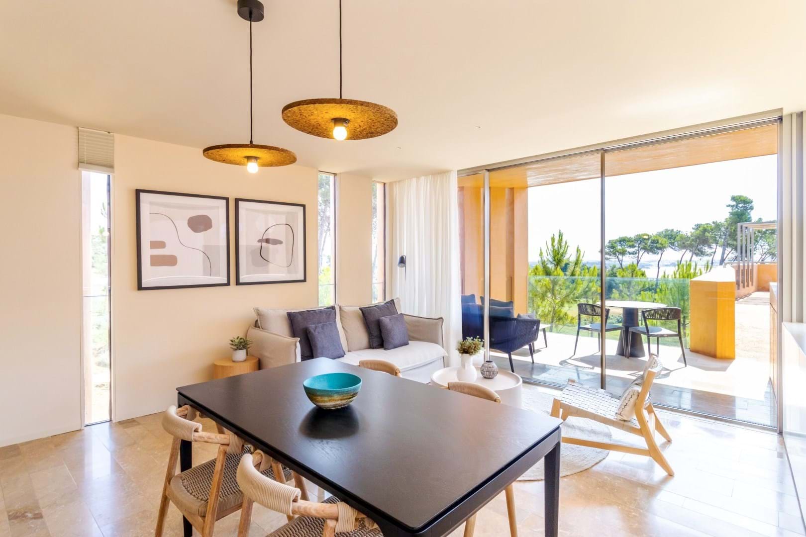 Designed with meticulous attention to detail, the apartment features high-end finishes, including elegant natural stone floors in soft shades of pink and refined décor throughout. Fully furnished, it also has built-in appliances in the kitchen, combining comfort and practicality.