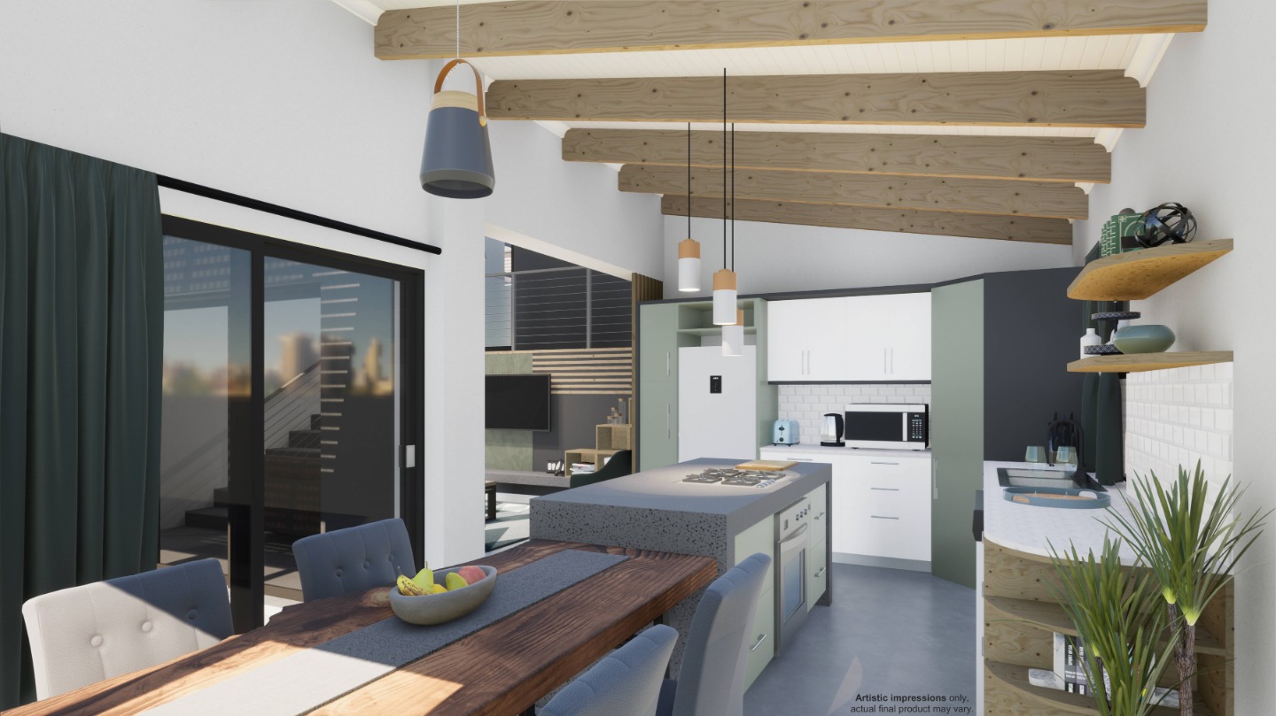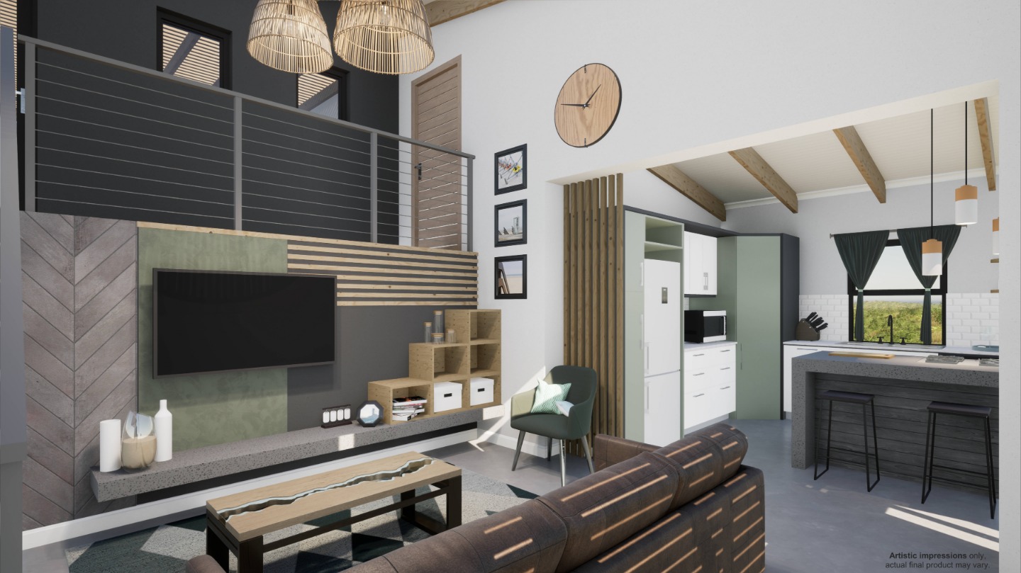 • The kitchen is modern and spacious with granite counter tops and open plan which allows for uninterrupted interaction with dining/lounge area. SMEG 900mm free standing unit included.