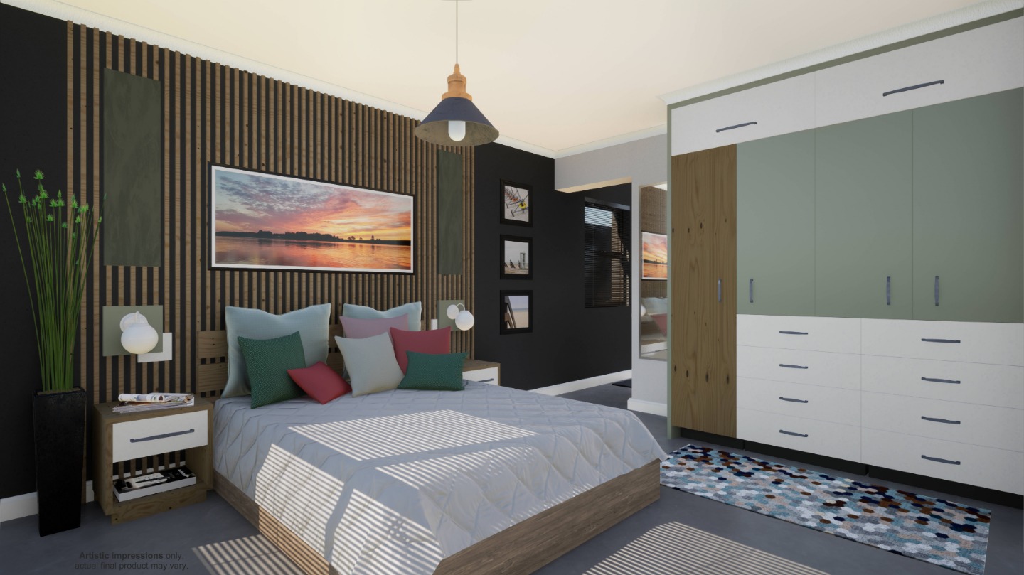 • Master bedroom with built-in cupboards and en-suite bathroom.