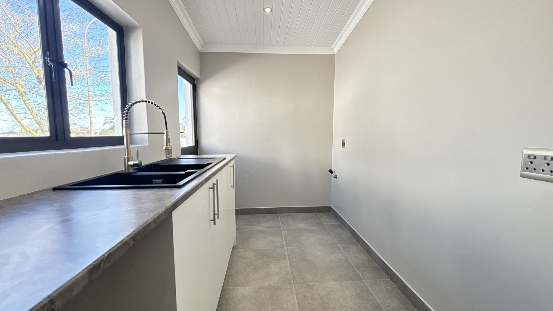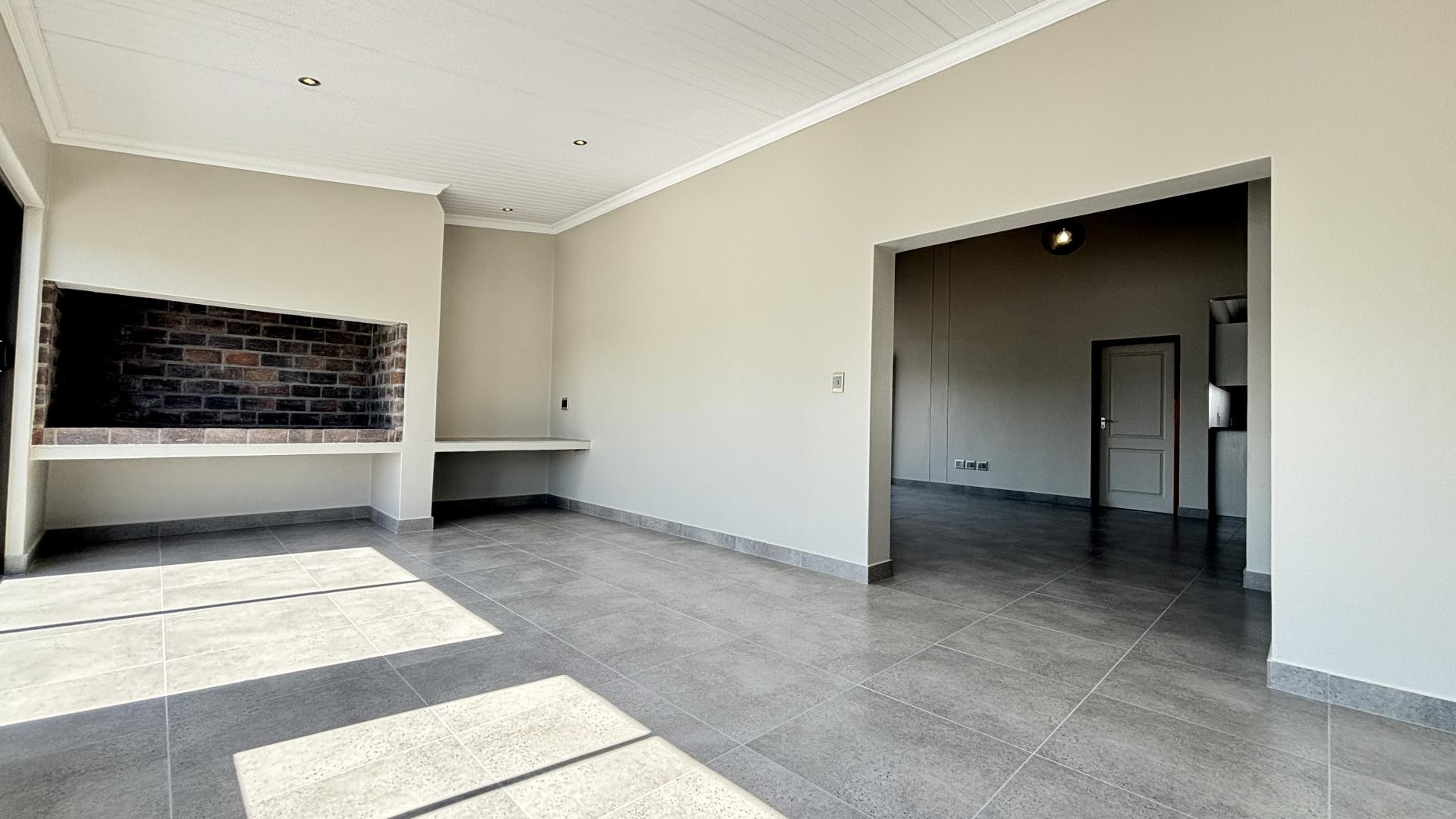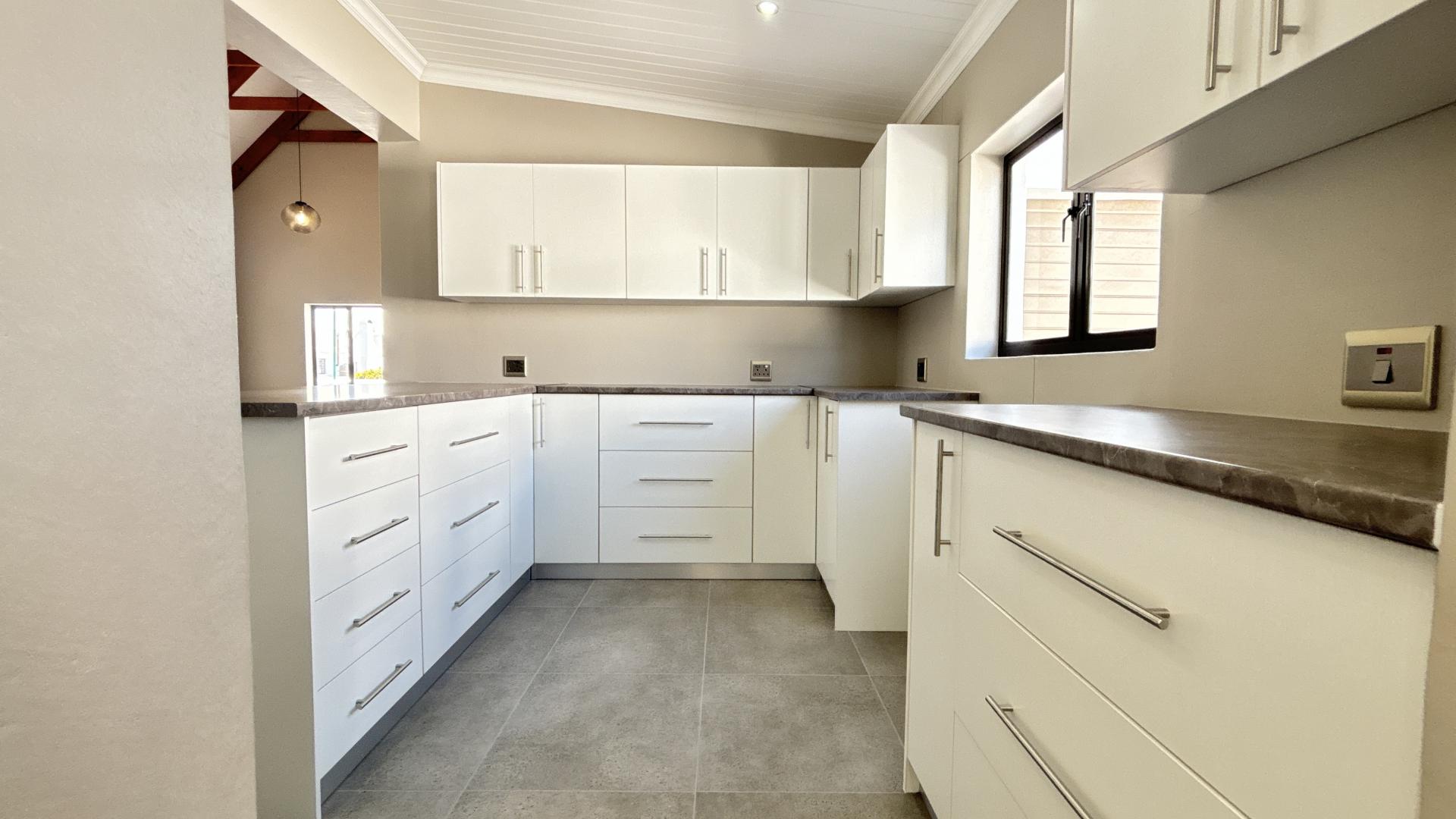 The kitchen offers sleek cabinetry with ample storage and a practical layout that flows effortlessly into the living space. A built-in indoor braai ensures year-round entertainment, ideal for hosting family and friends.