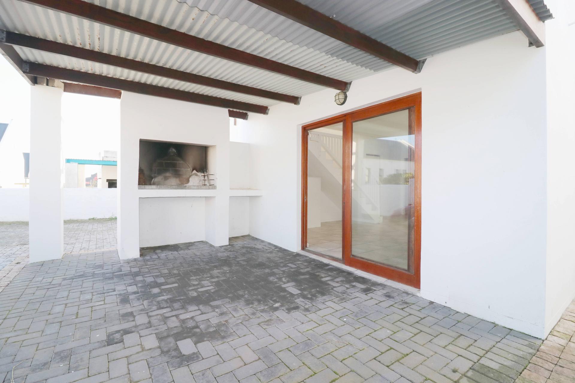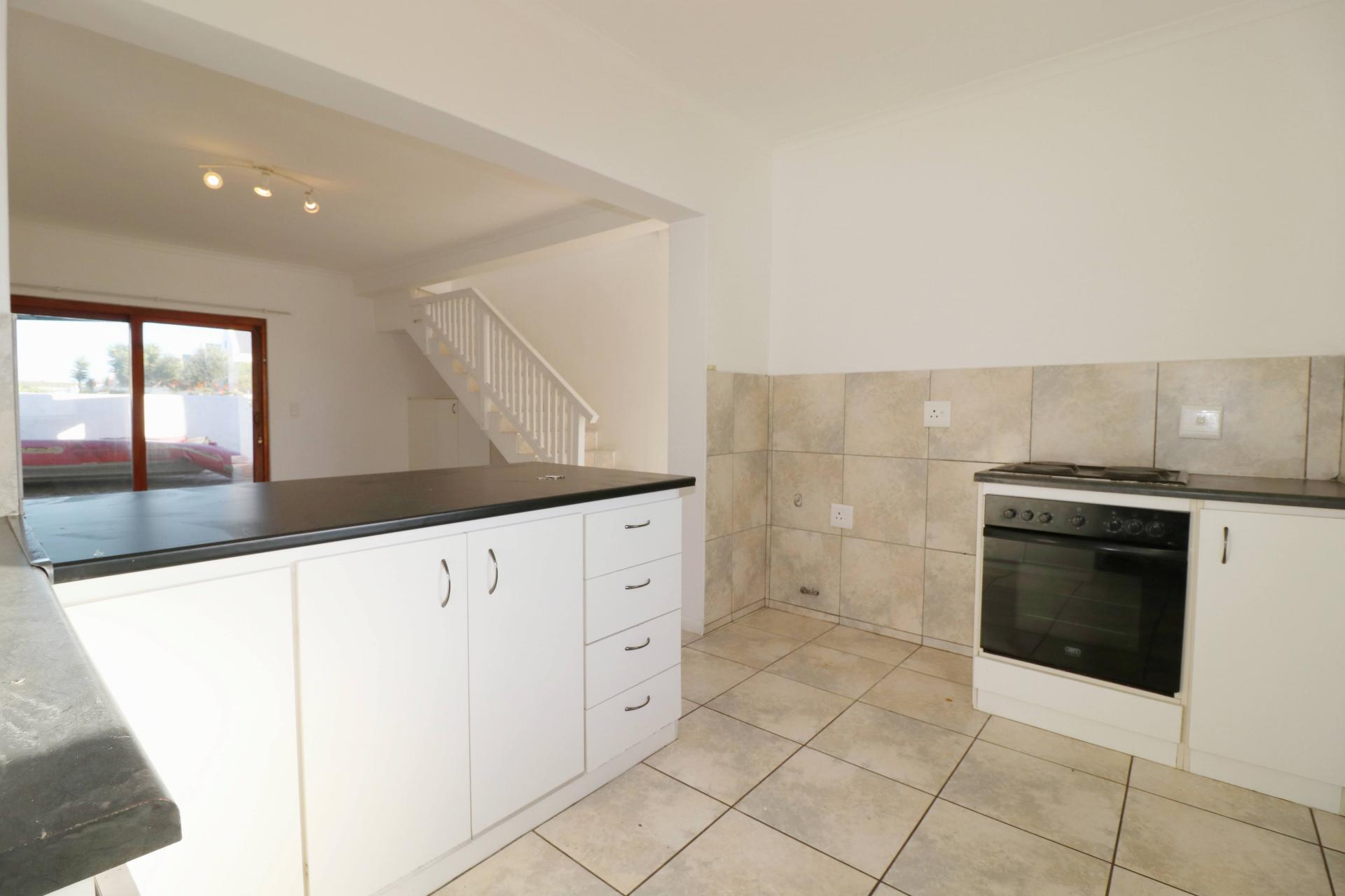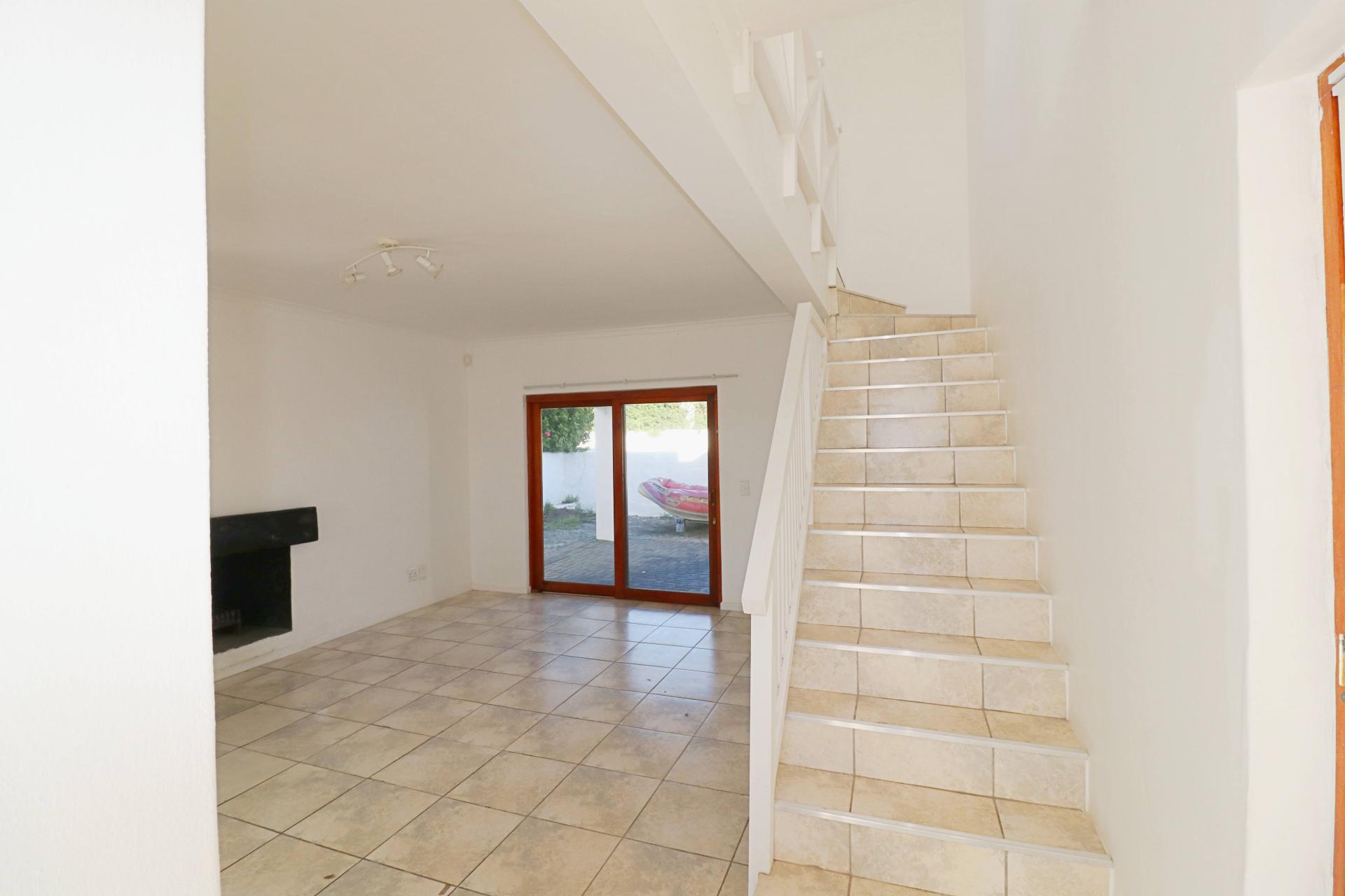 The single garage has been cleverly converted into a versatile third bedroom, but could just as easily serve as a private home office or studio. Upstairs, you’ll find two generously sized bedrooms with built-in cupboards and a full bathroom. A door leads out onto an open balcony, which offers lovely views and could easily be enclosed to extend the upstairs living area. The property is fully walled, offering both privacy and security, with low levies making it an affordable choice for a holiday home, permanent residence, or lock-up-and-go option for those looking to scale down.