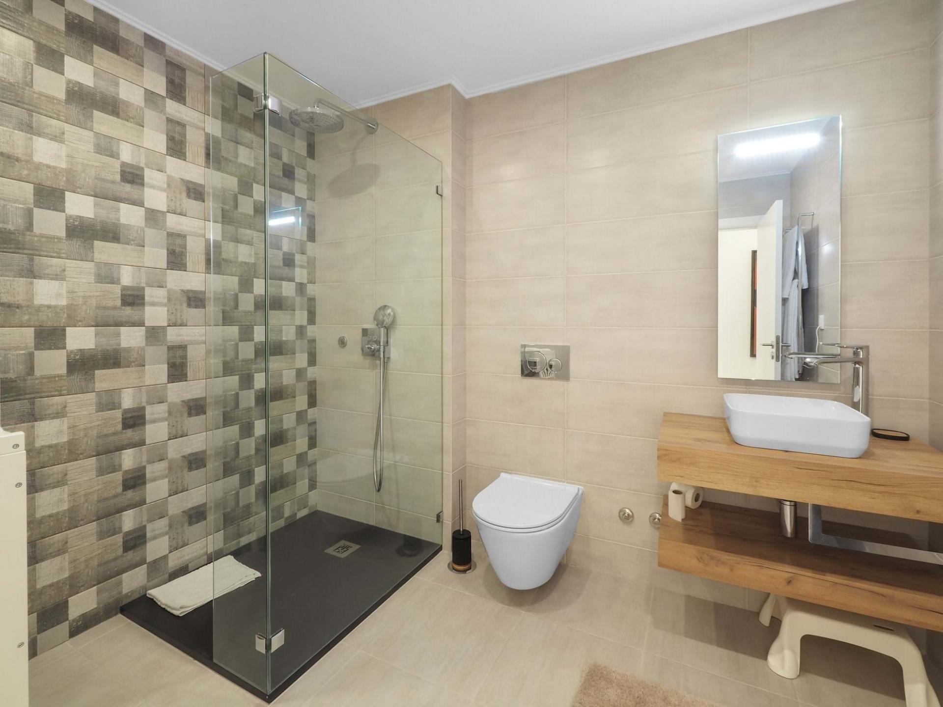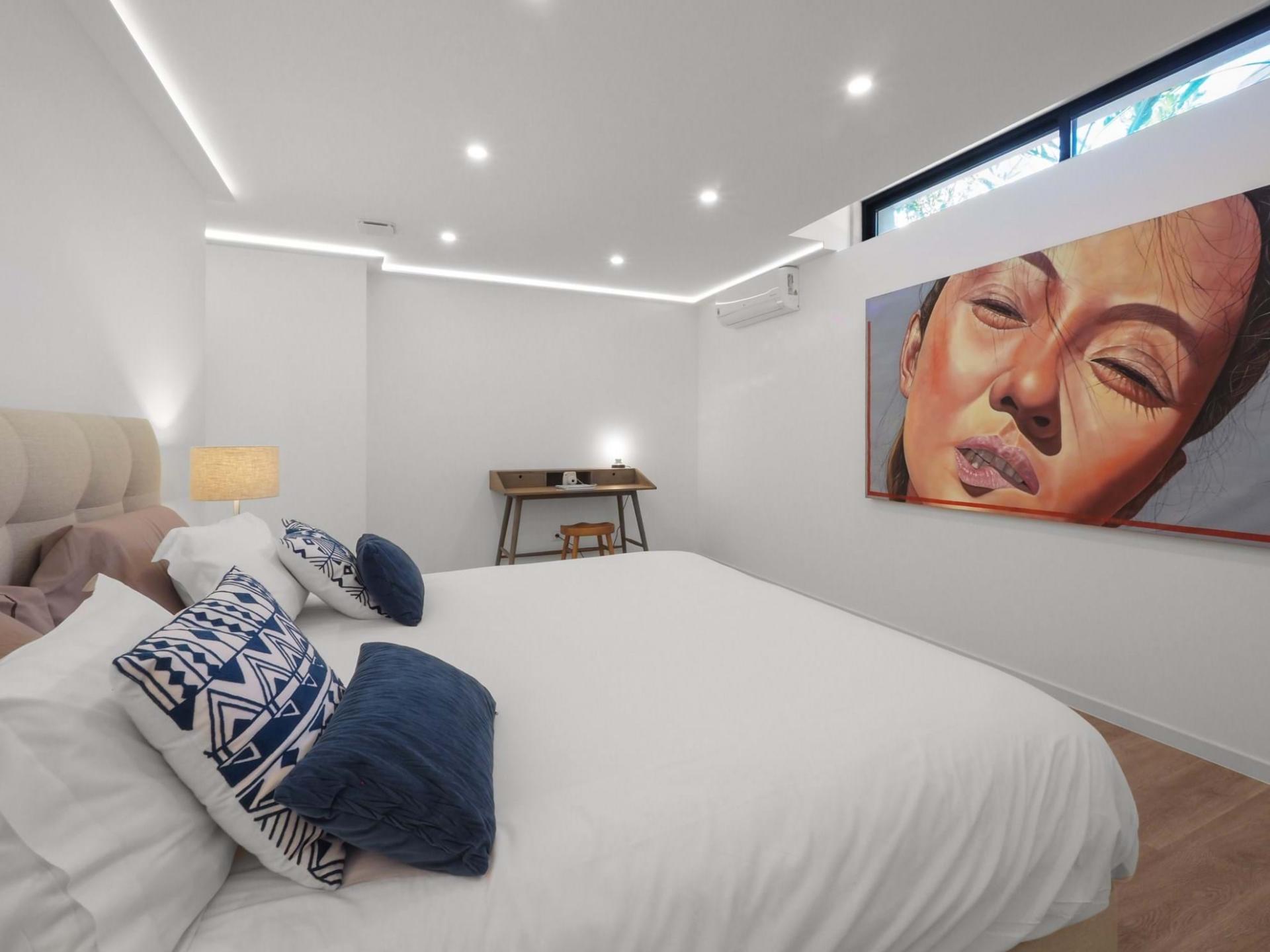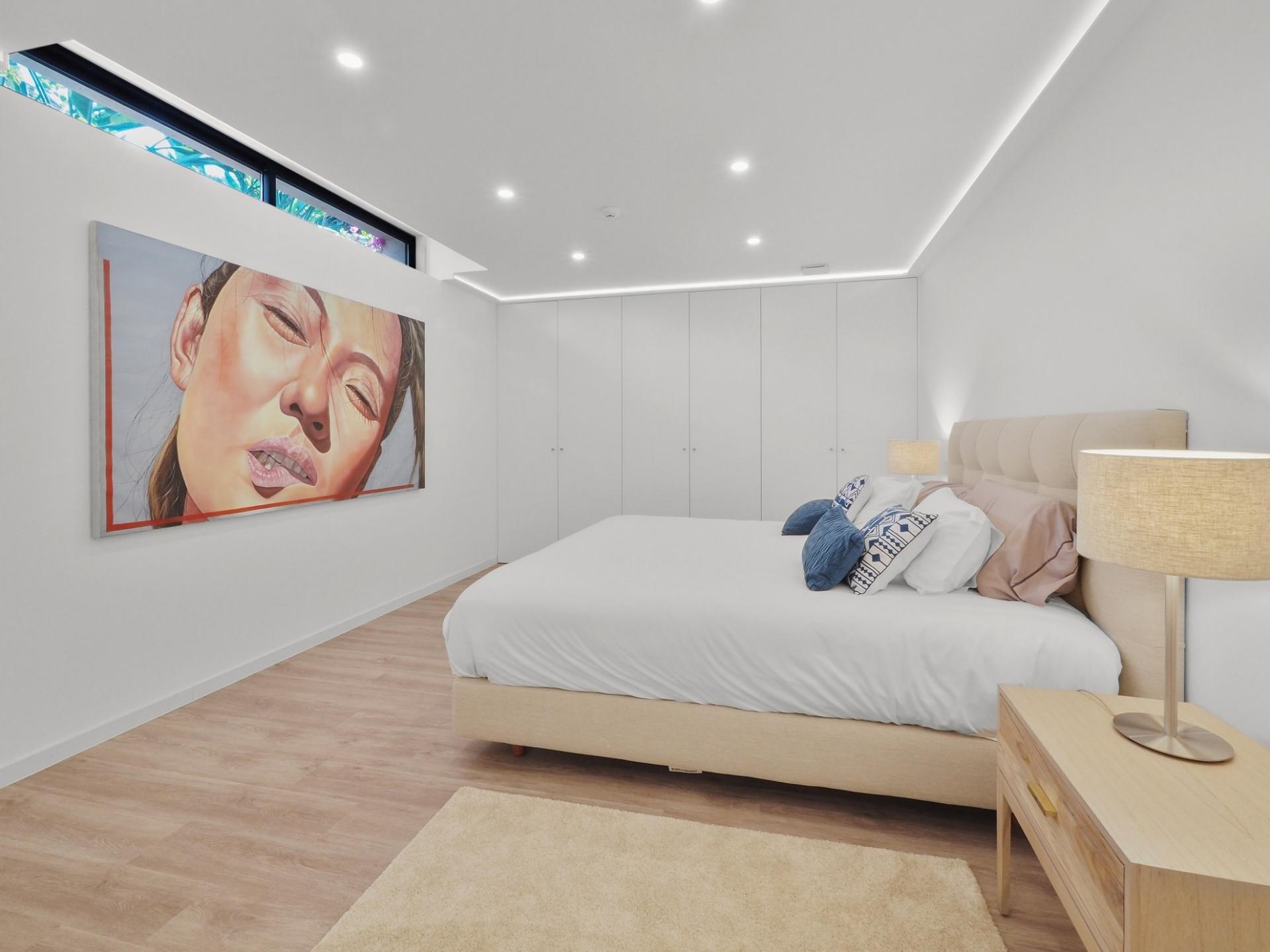 Upstairs, two en-suite bedrooms provide privacy and comfort. The principal suite opens onto a generous terrace where sweeping sea views become part of everyday life.