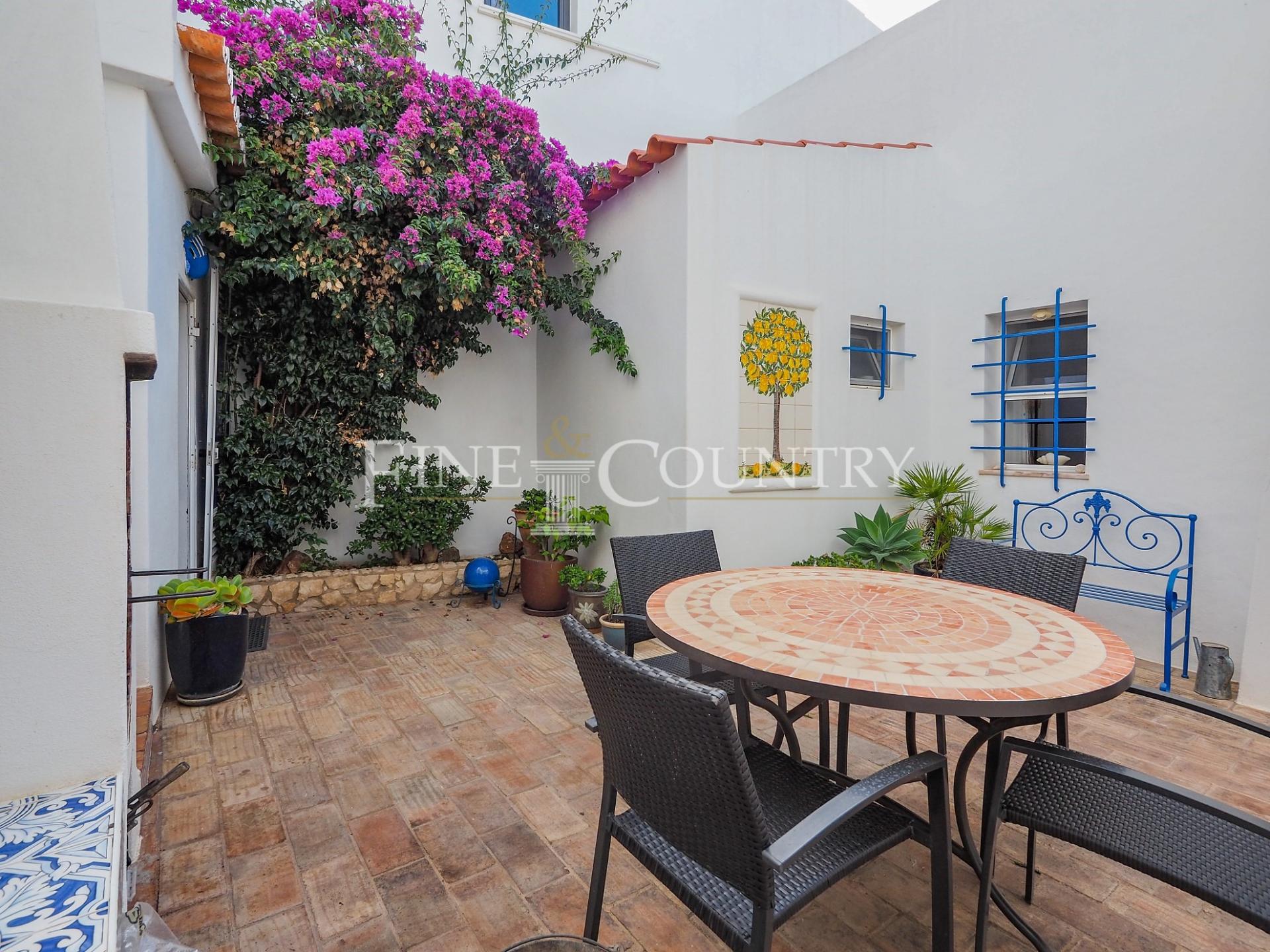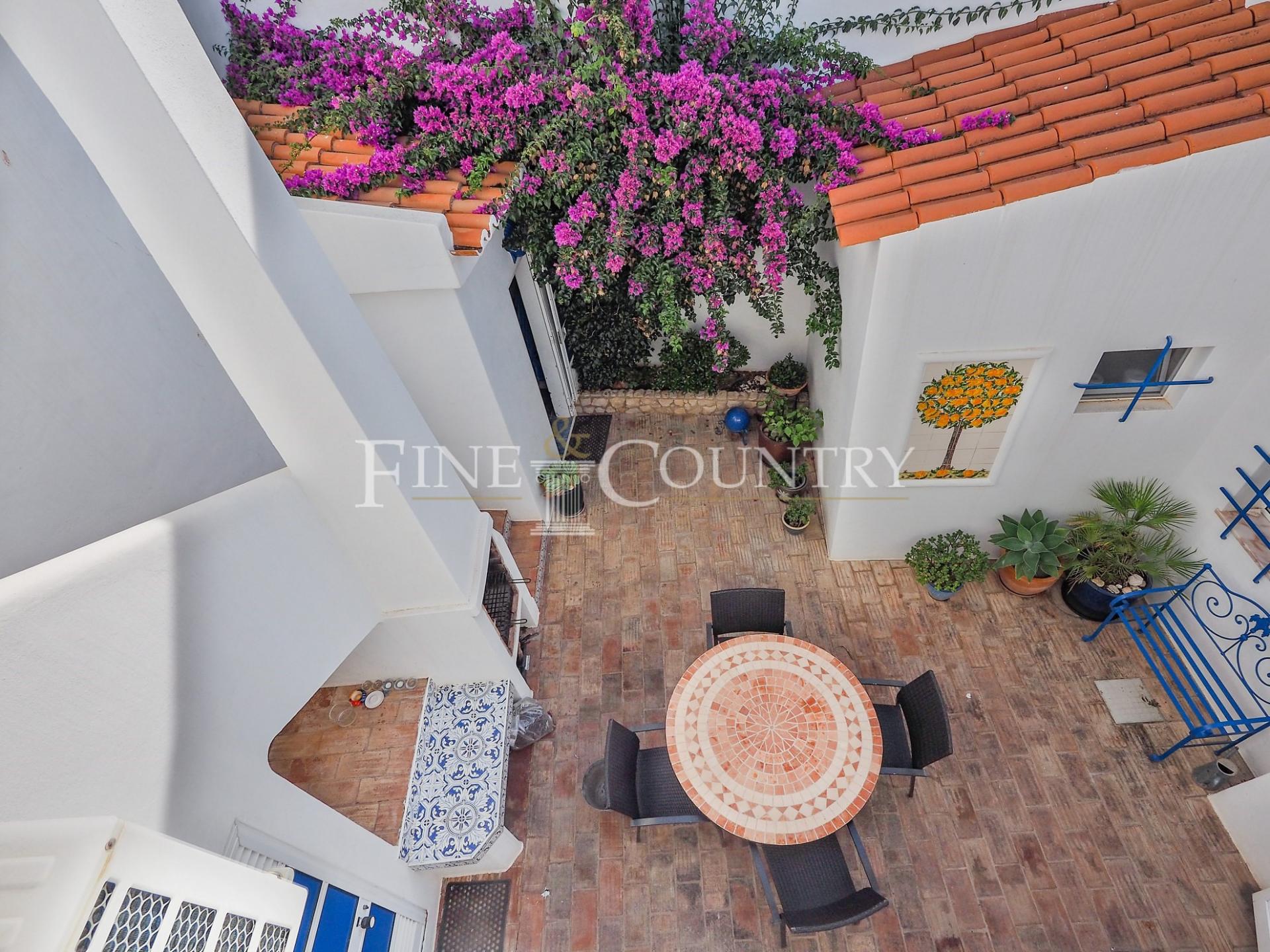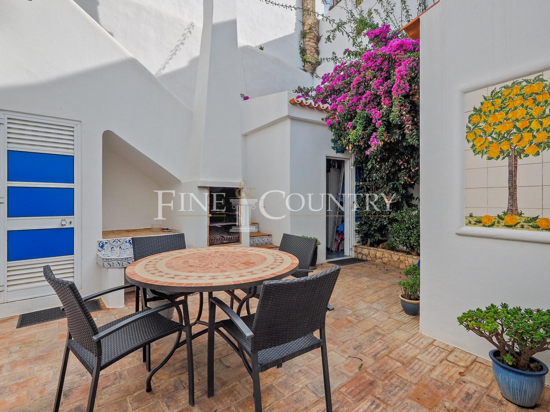 This charming single-story townhouse of approximately 105m² + 34m² living space with private courtyard and spacious roof terrace with sea view is conveniently situated in the heart of Carvoeiro. At only 200 metres from the beach and central square of Carvoeiro it is close to all amenities including a wide selection of restaurants and shops. There are beautiful beaches and golf courses within a 10-minute drive. Porches International Schools are reachable in just 15 minutes, and Faro airport is a mere 45-minute drive away.