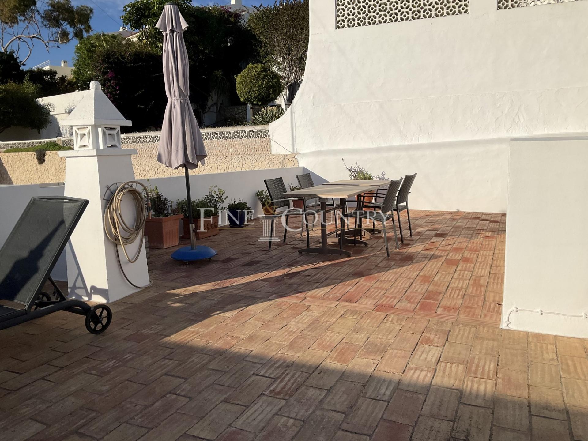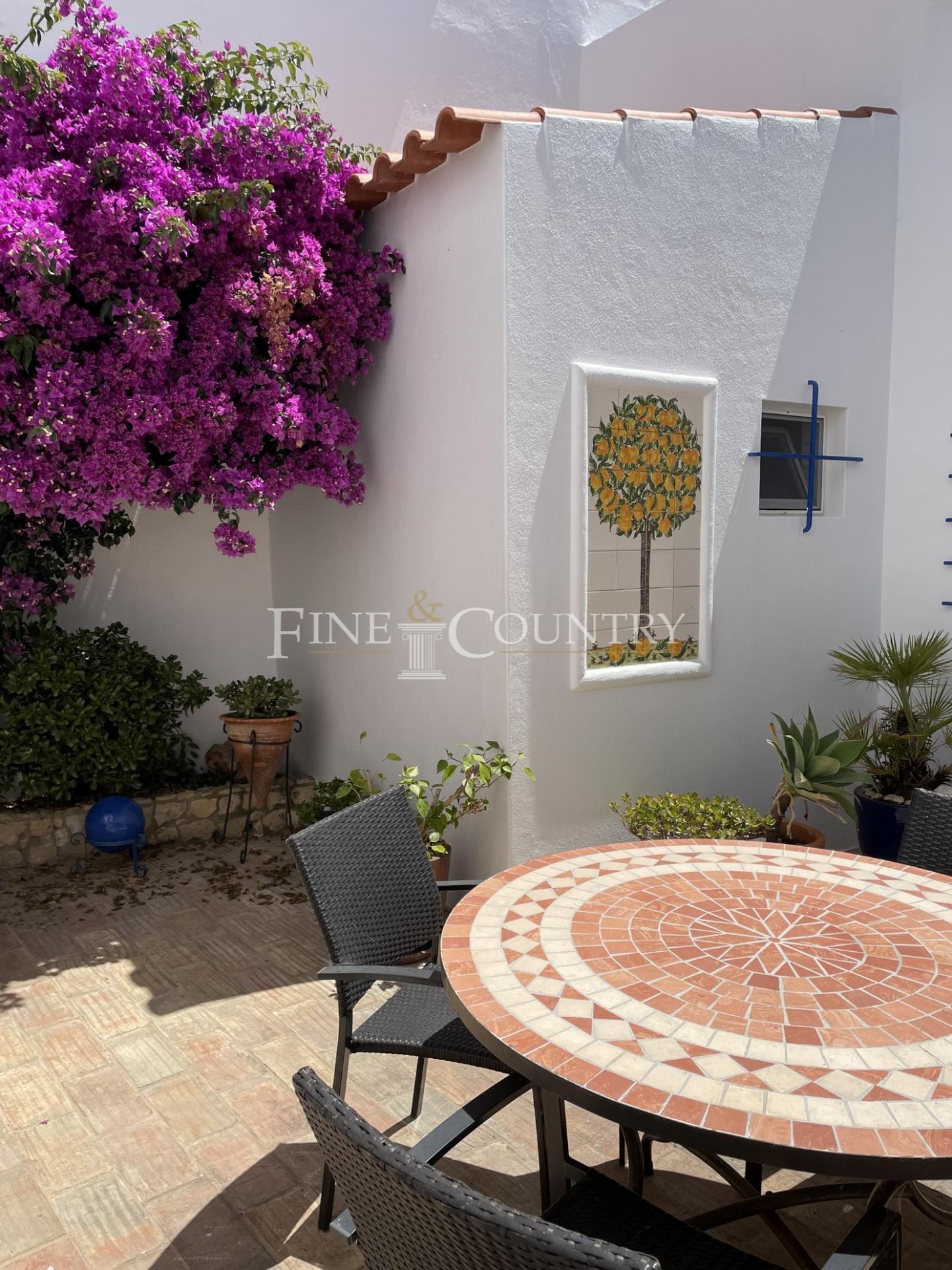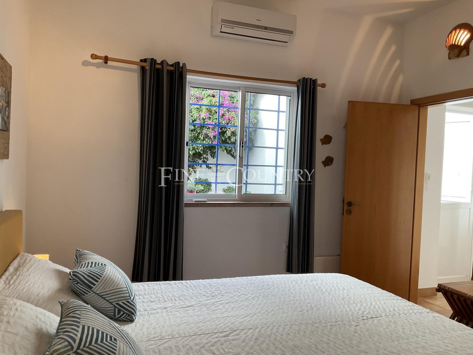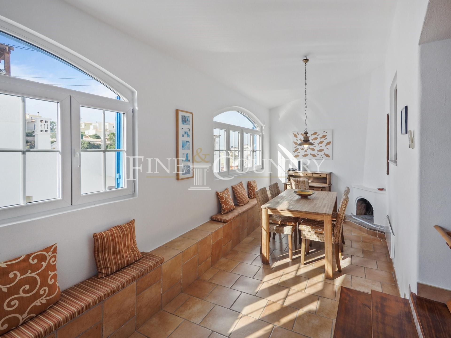This charming single-story townhouse of approximately 105m² + 34m² living space with private courtyard and spacious roof terrace with sea view is conveniently situated in the heart of Carvoeiro. At only 200 metres from the beach and central square of Carvoeiro it is close to all amenities including a wide selection of restaurants and shops. There are beautiful beaches and golf courses within a 10-minute drive. Porches International Schools are reachable in just 15 minutes, and Faro airport is a mere 45-minute drive away.