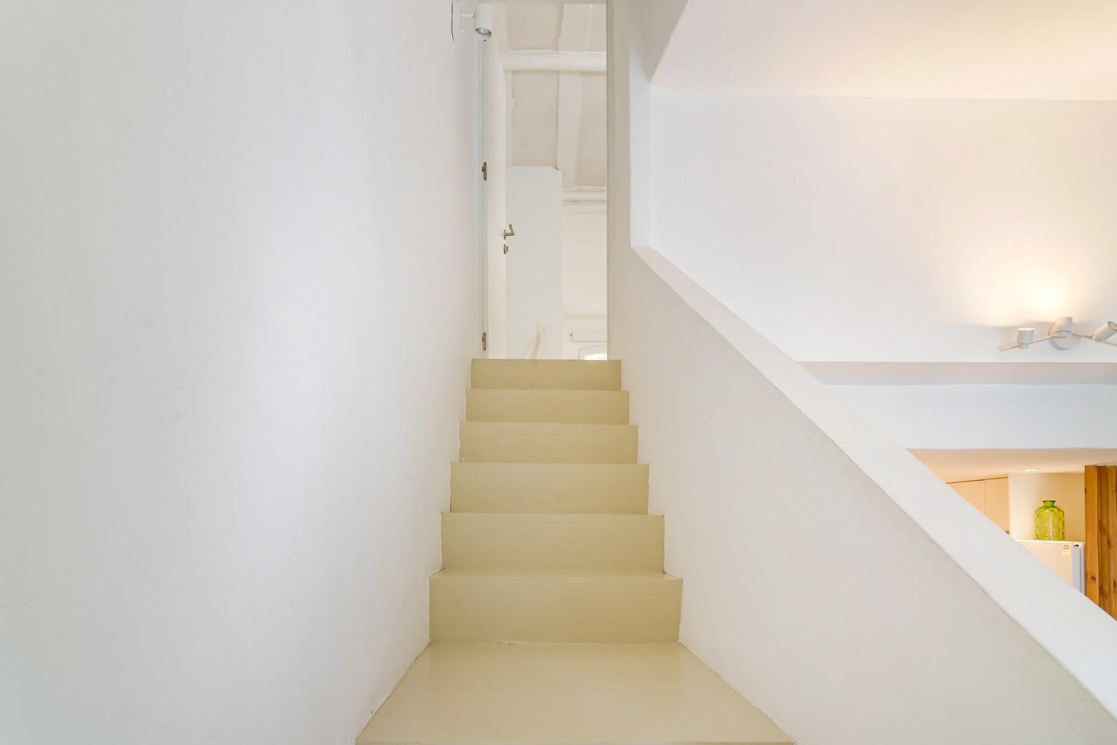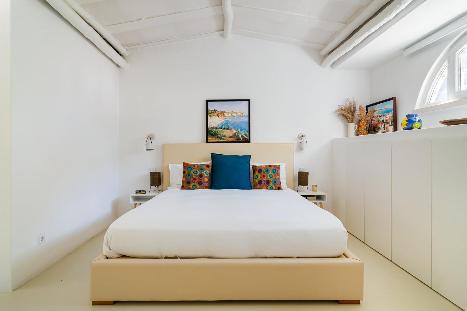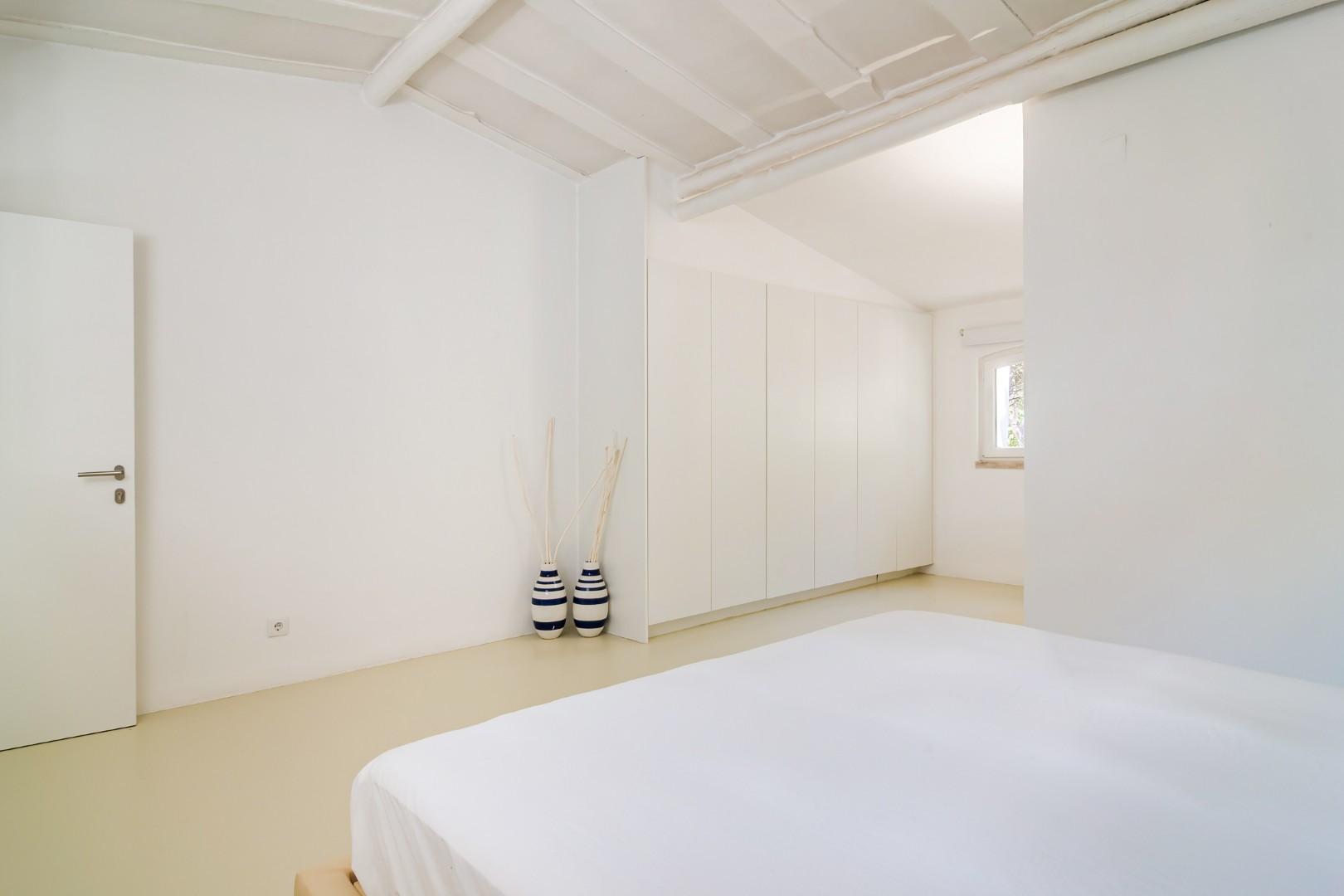 No andar de cima, a propriedade oferece uma espaçosa suíte master com roupeiros embutidos e casa de banho privativa, também com chuveiro, luz natural e bancadas em Corian.