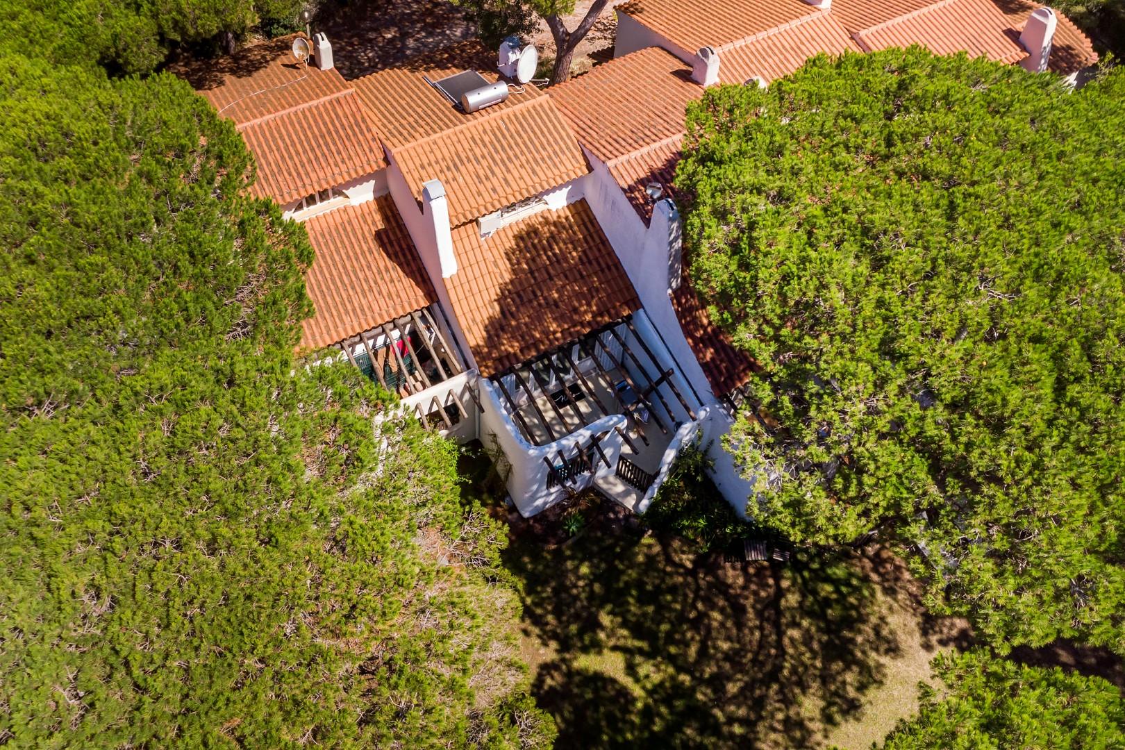 No rés-do-chão, a casa dispõe de um acolhedor quarto de hóspedes com roupeiro e luz natural, juntamente com uma casa de banho completa com duche, janela e elegante bancada em Corian. A cozinha em plano aberto está totalmente equipada com eletrodomésticos de alta qualidade, incluindo um frigorífico de tamanho normal, máquina de lavar roupa, placa de indução Bora, forno, micro-ondas e todos os utensílios, talheres e louça necessários. A cozinha está ligada a uma elegante área de jantar com um banco personalizado que oferece um amplo espaço de arrumação embutido e a uma sala de estar luminosa que se abre para um pátio privado com vista para o jardim comum e o campo de golfe.